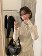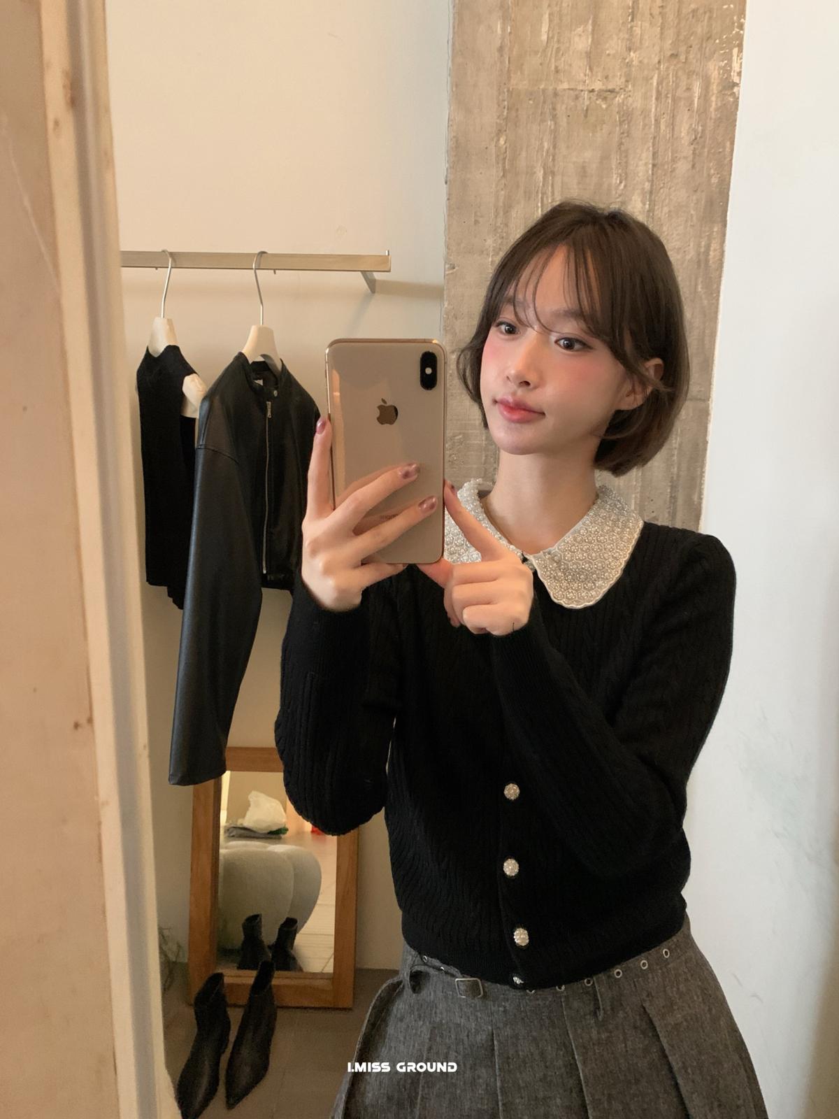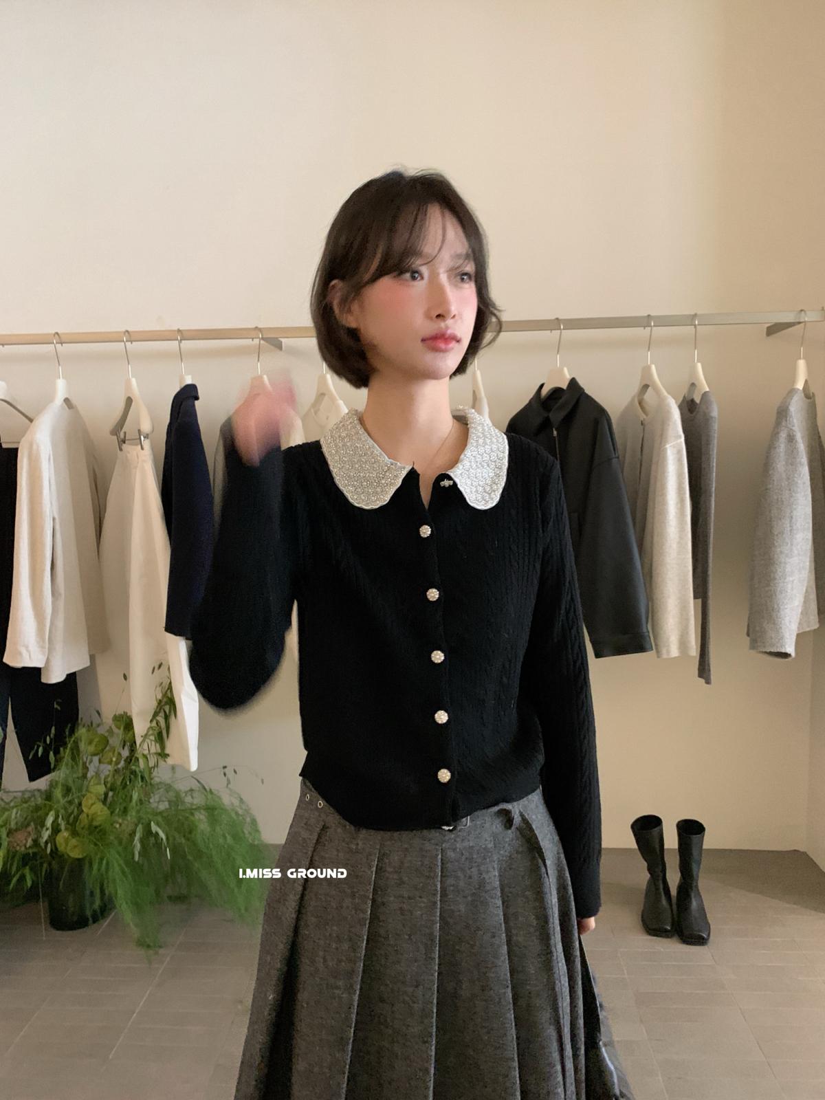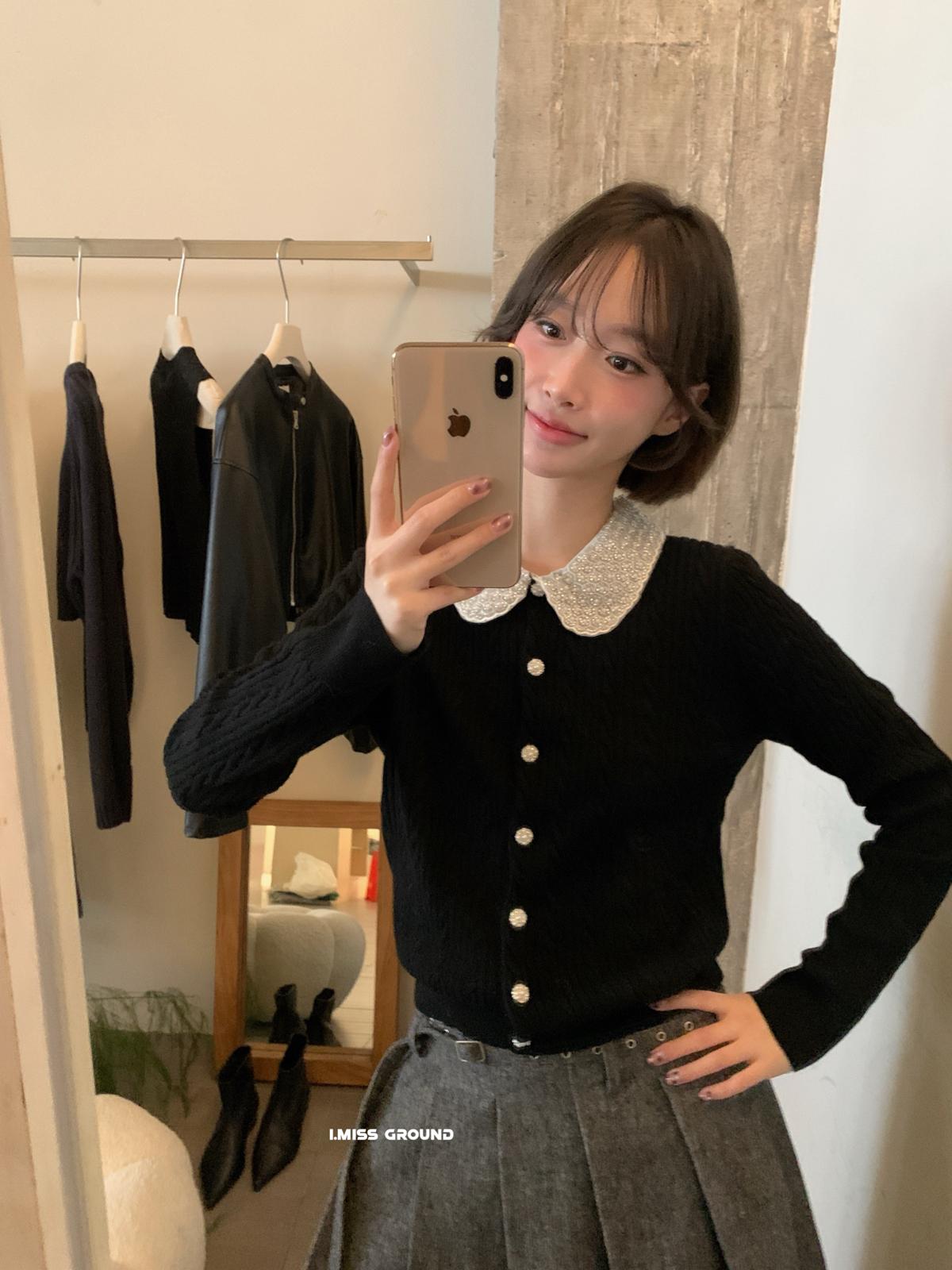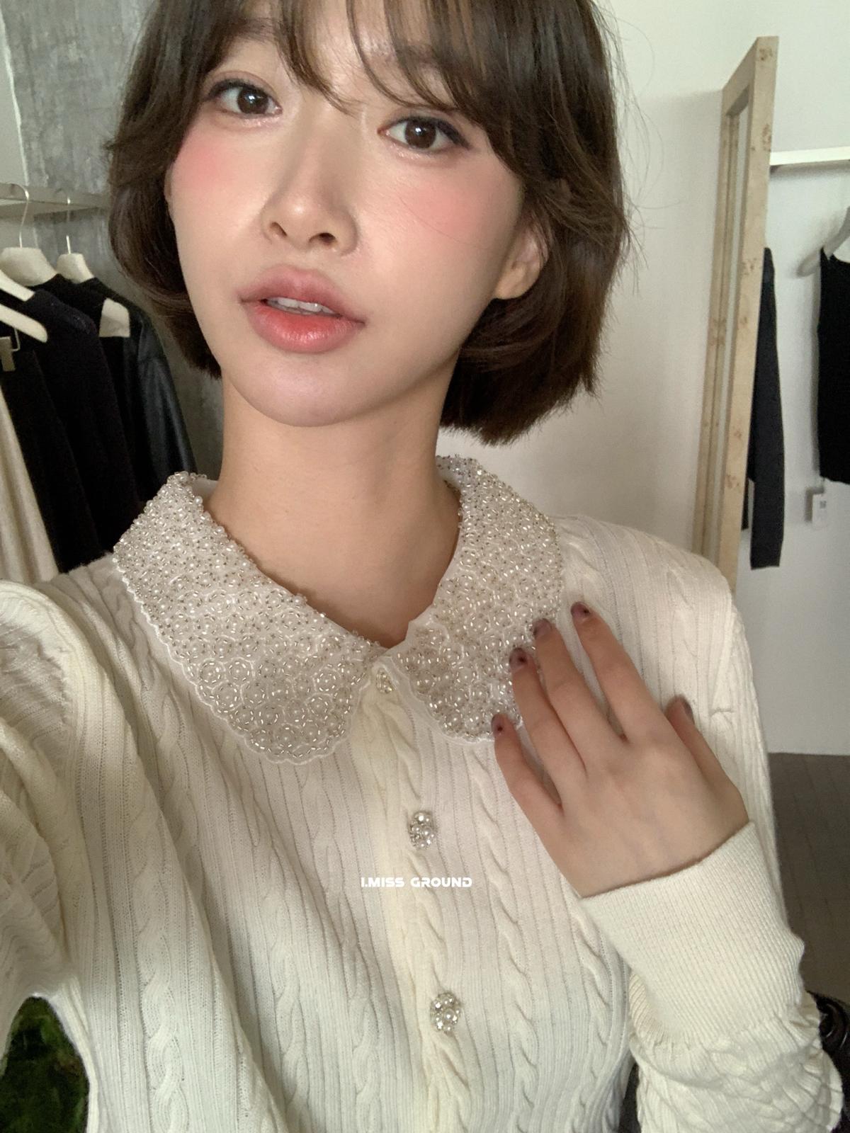 【C8107】絕美!重工珍珠領麻花羊毛針織開衫(含33%羊毛)
