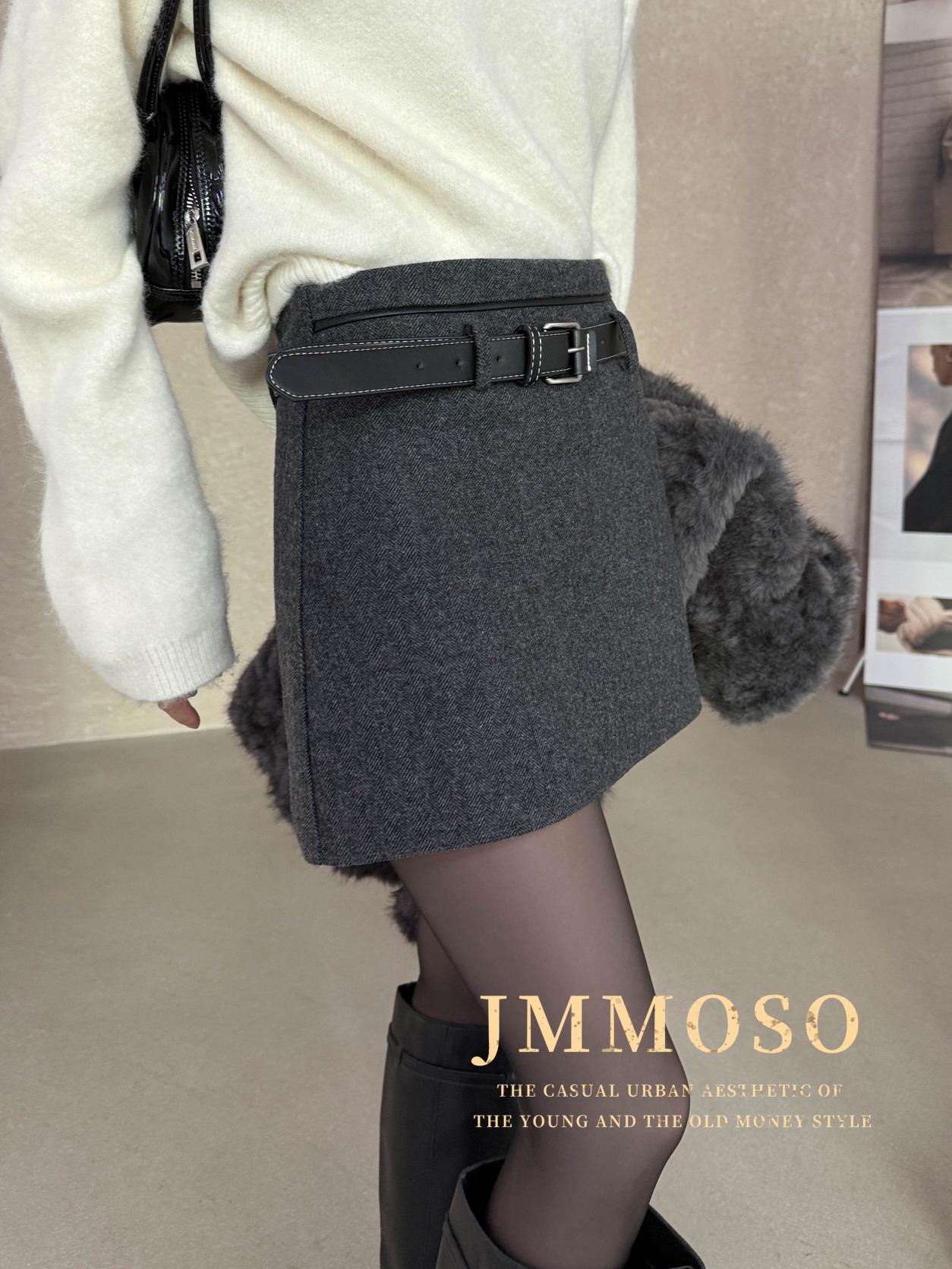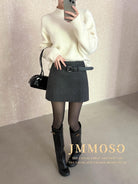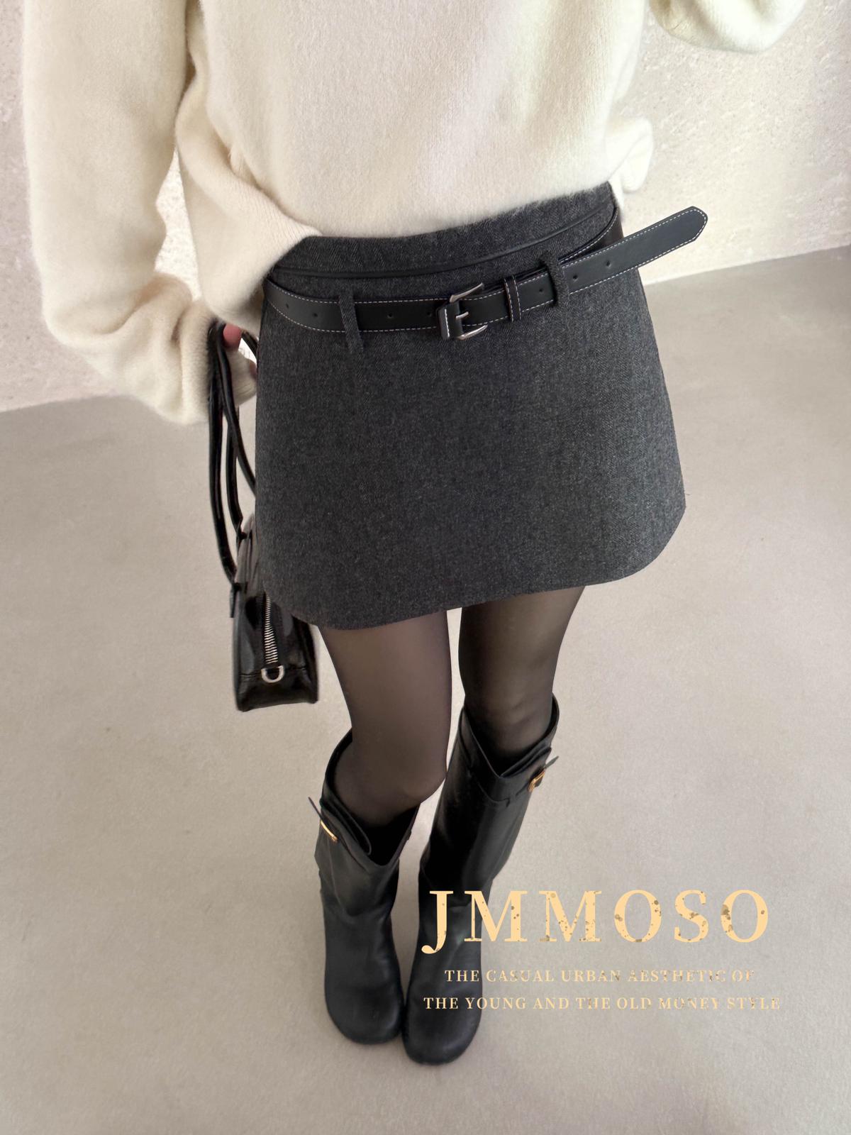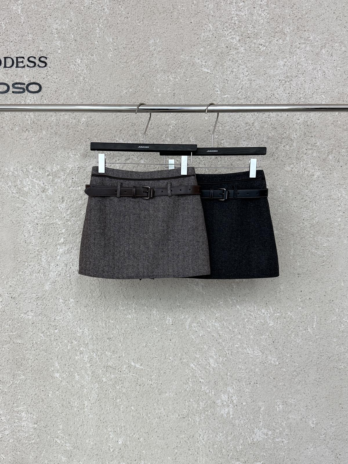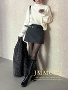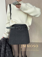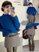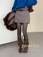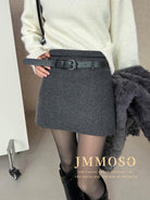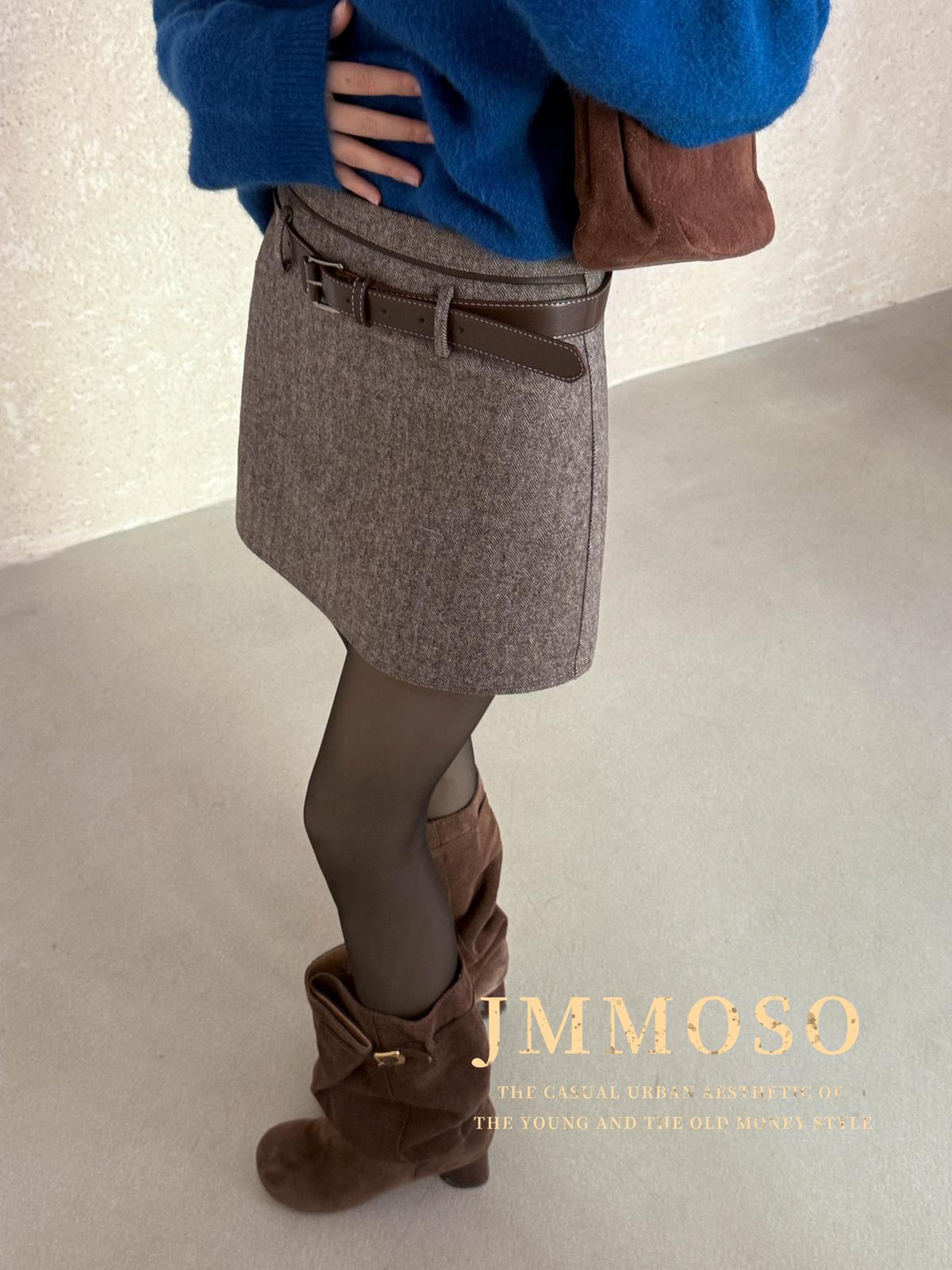 3. 【C8110】韓版高腰簡約人字紋羊毛呢子保暖日常通勤短裙半身裙(配腰帶)(含50%羊毛)(加絨裏褲)