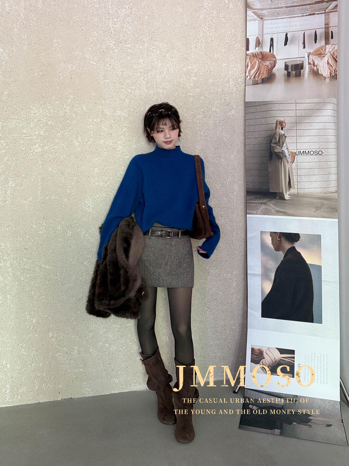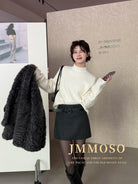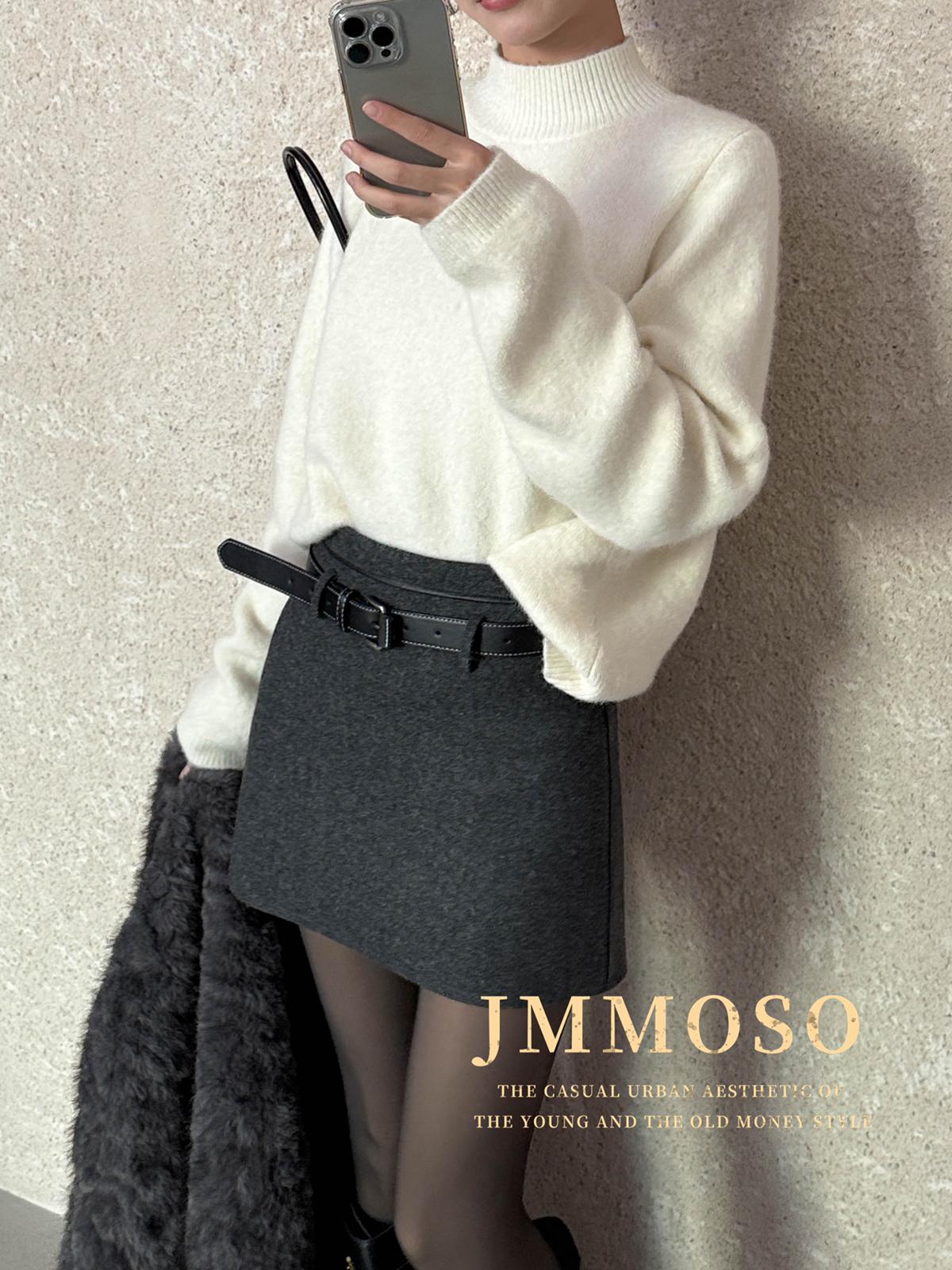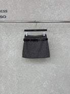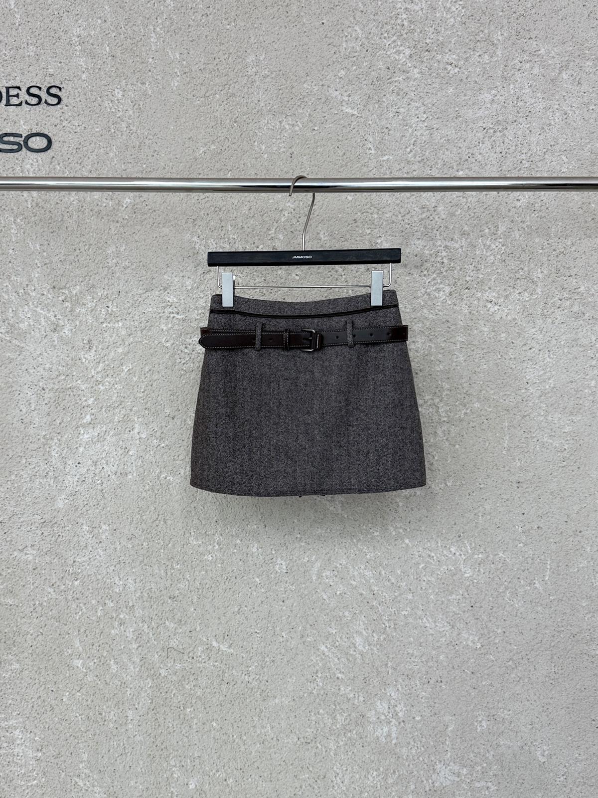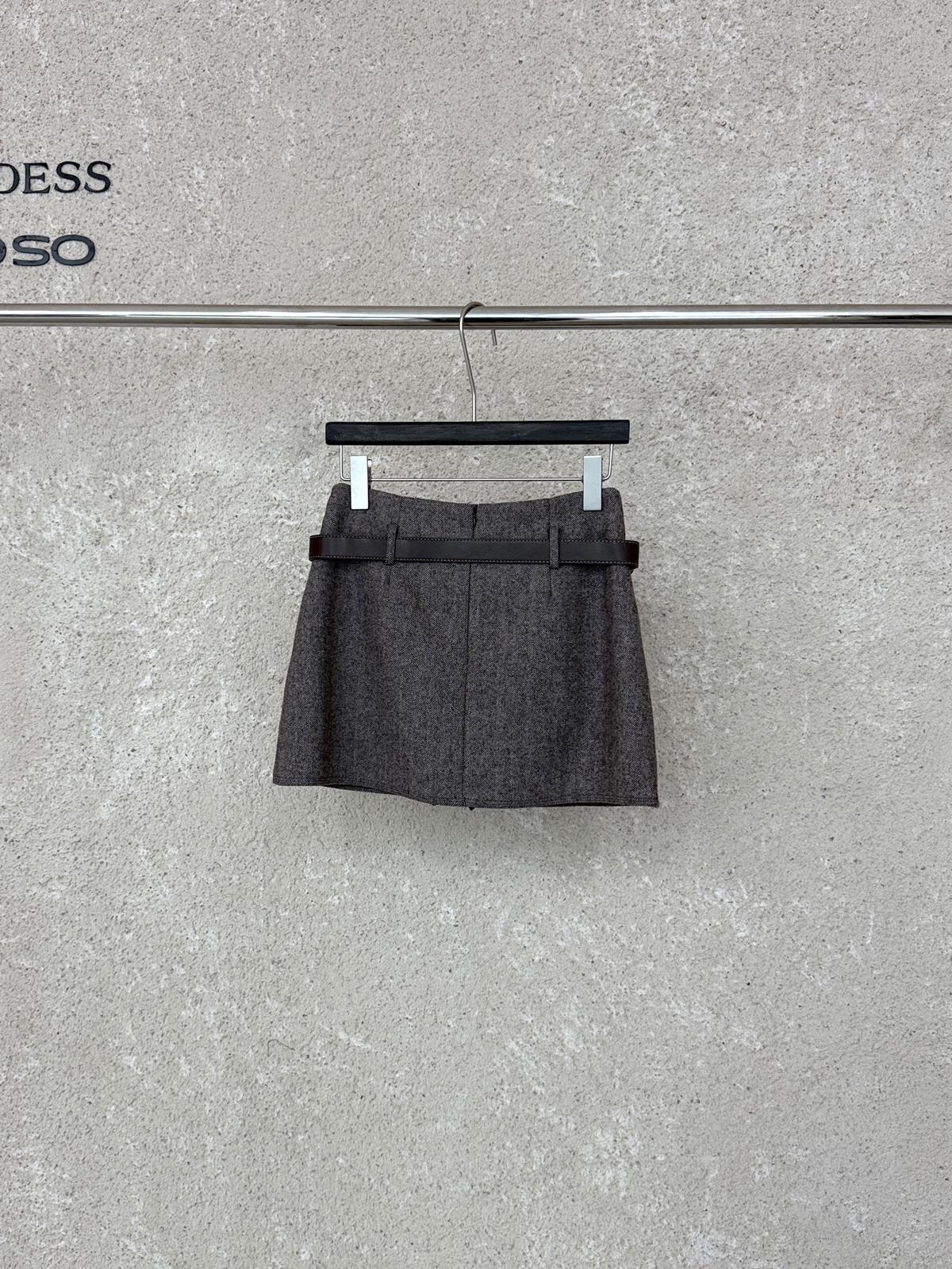 3. 【C8110】韓版高腰簡約人字紋羊毛呢子保暖日常通勤短裙半身裙(配腰帶)(含50%羊毛)(加絨裏褲)