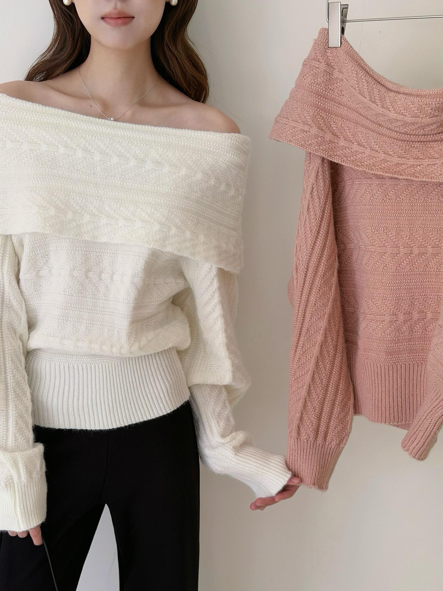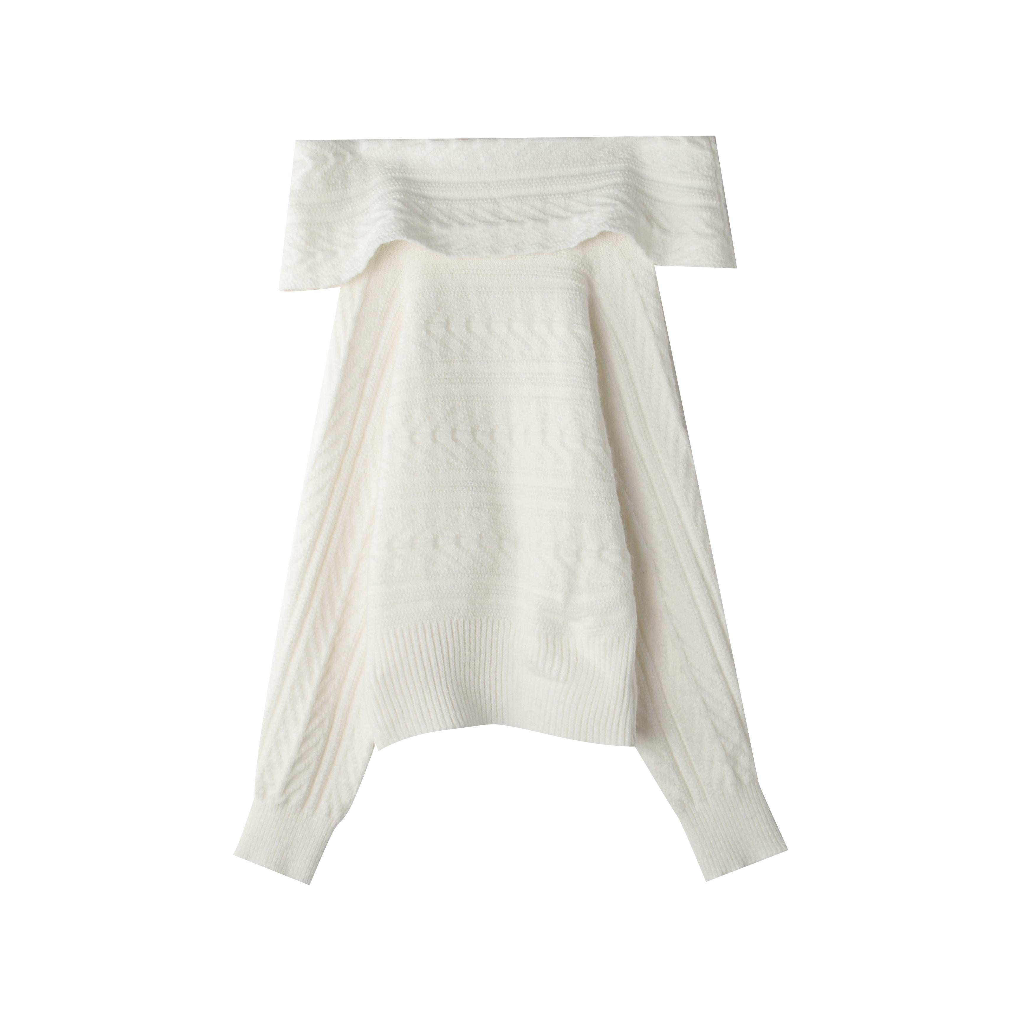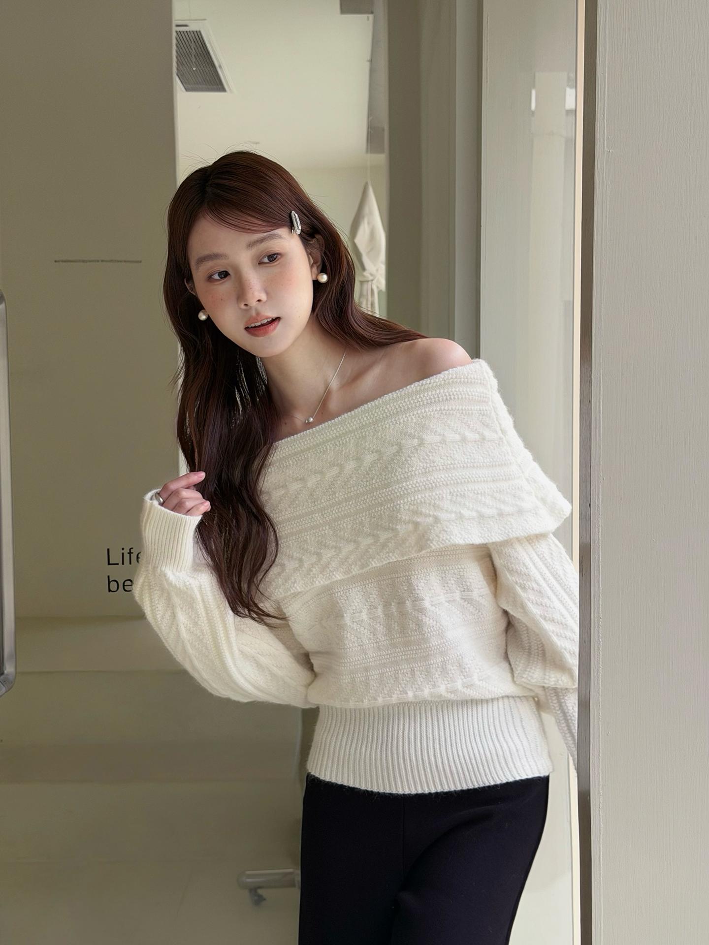 3. 【C8111】冬上新!一字肩麻花針織衫設計感長袖保暖毛衣