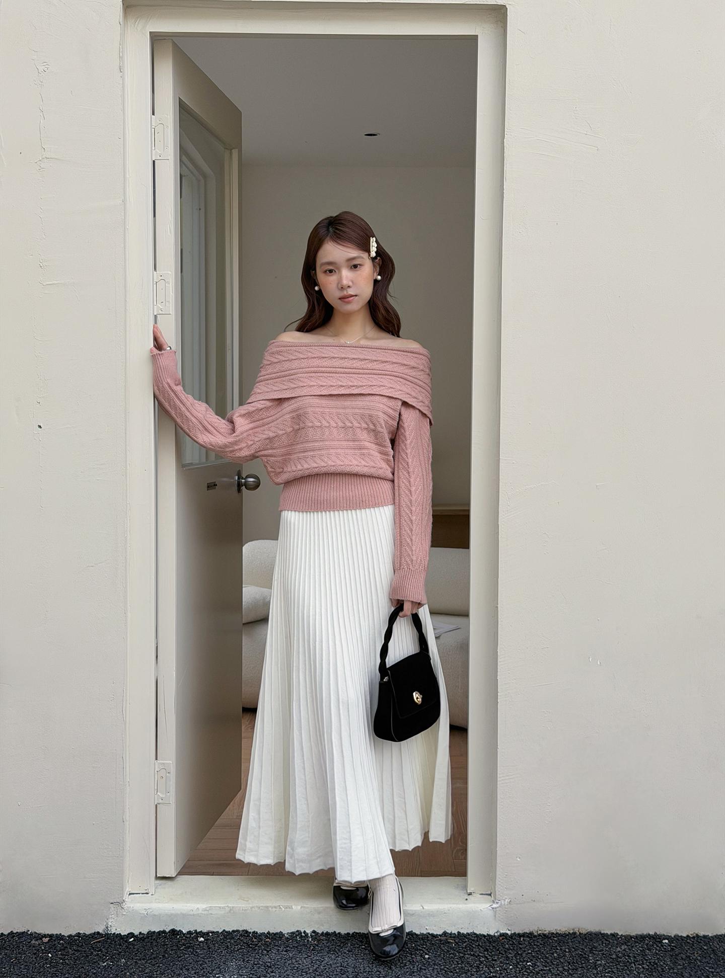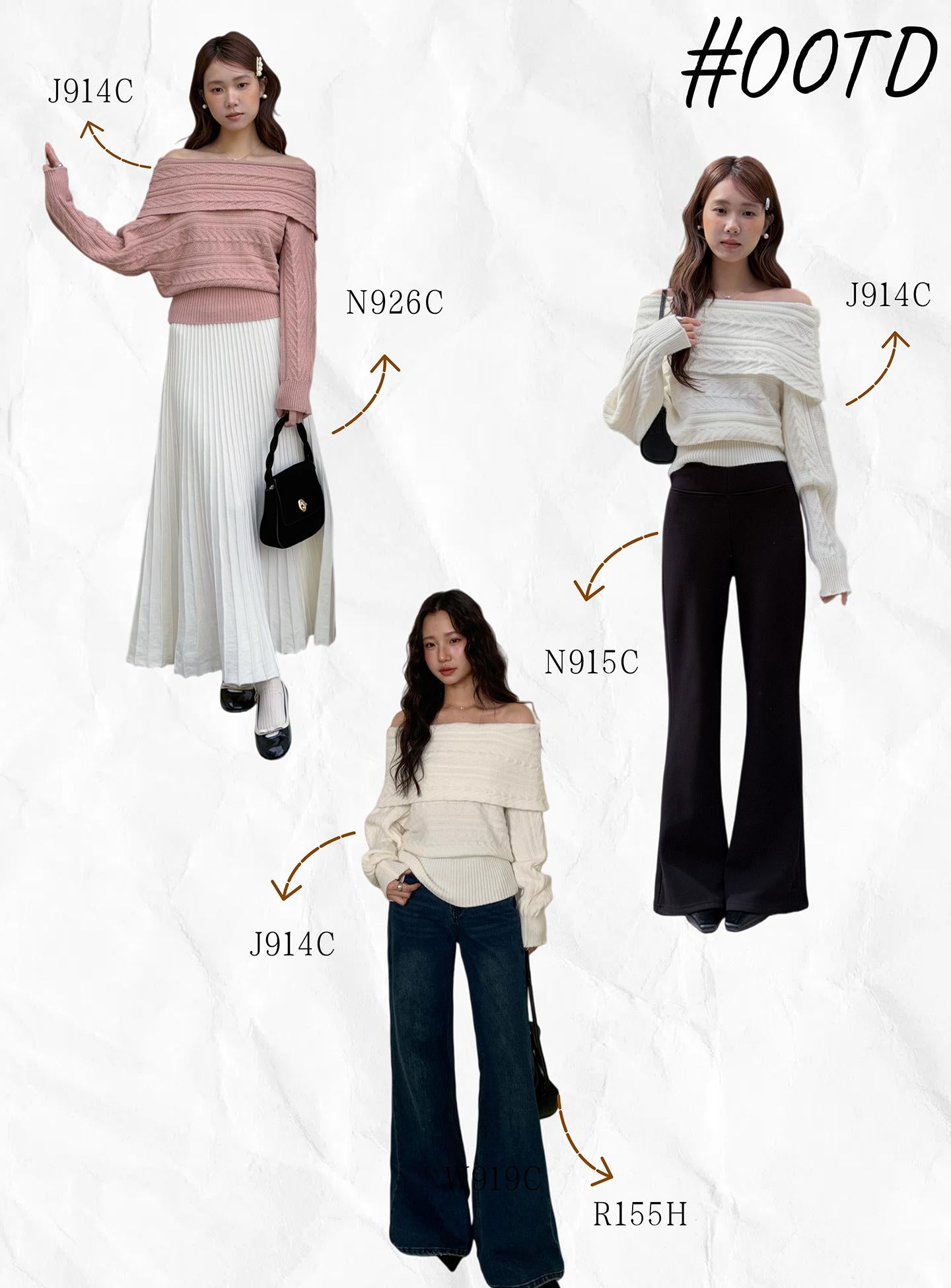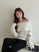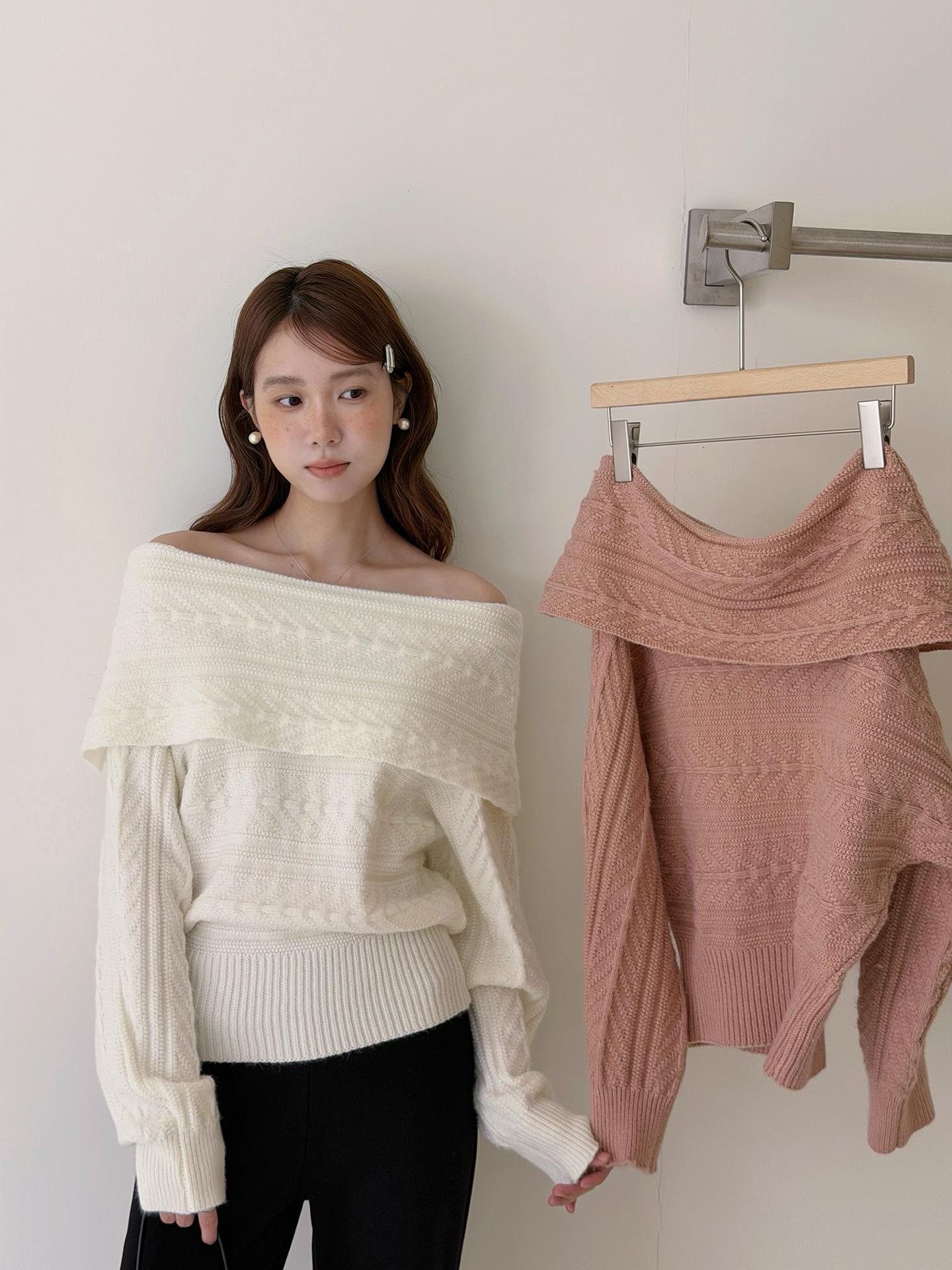 3. 【C8111】冬上新!一字肩麻花針織衫設計感長袖保暖毛衣