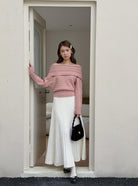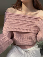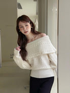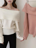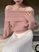 【C8111】冬上新!一字肩麻花針織衫設計感長袖保暖毛衣