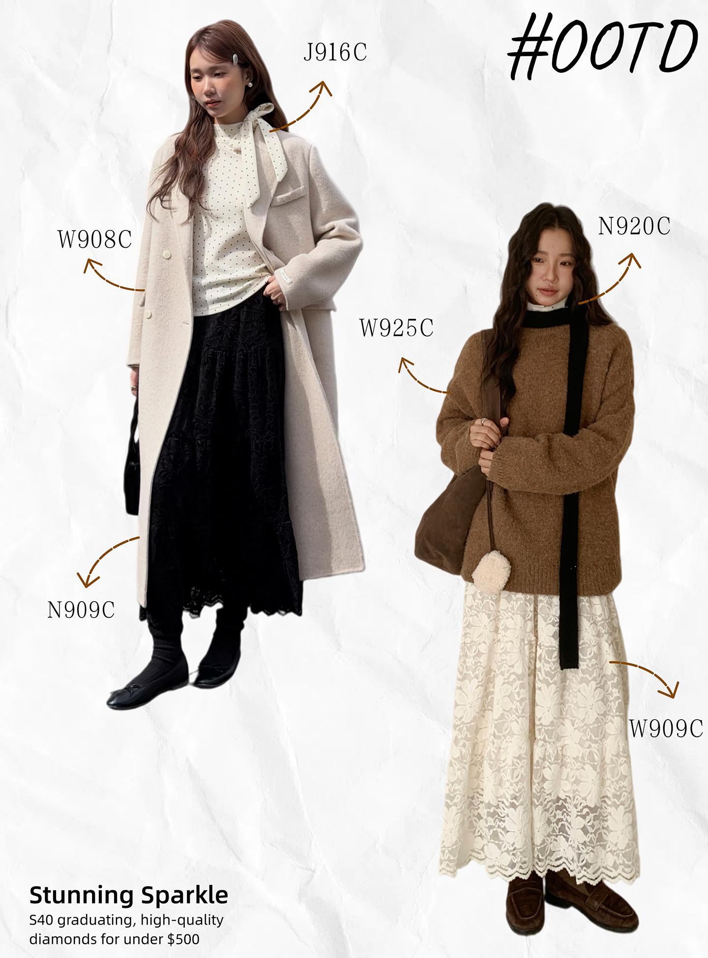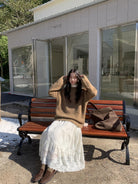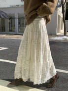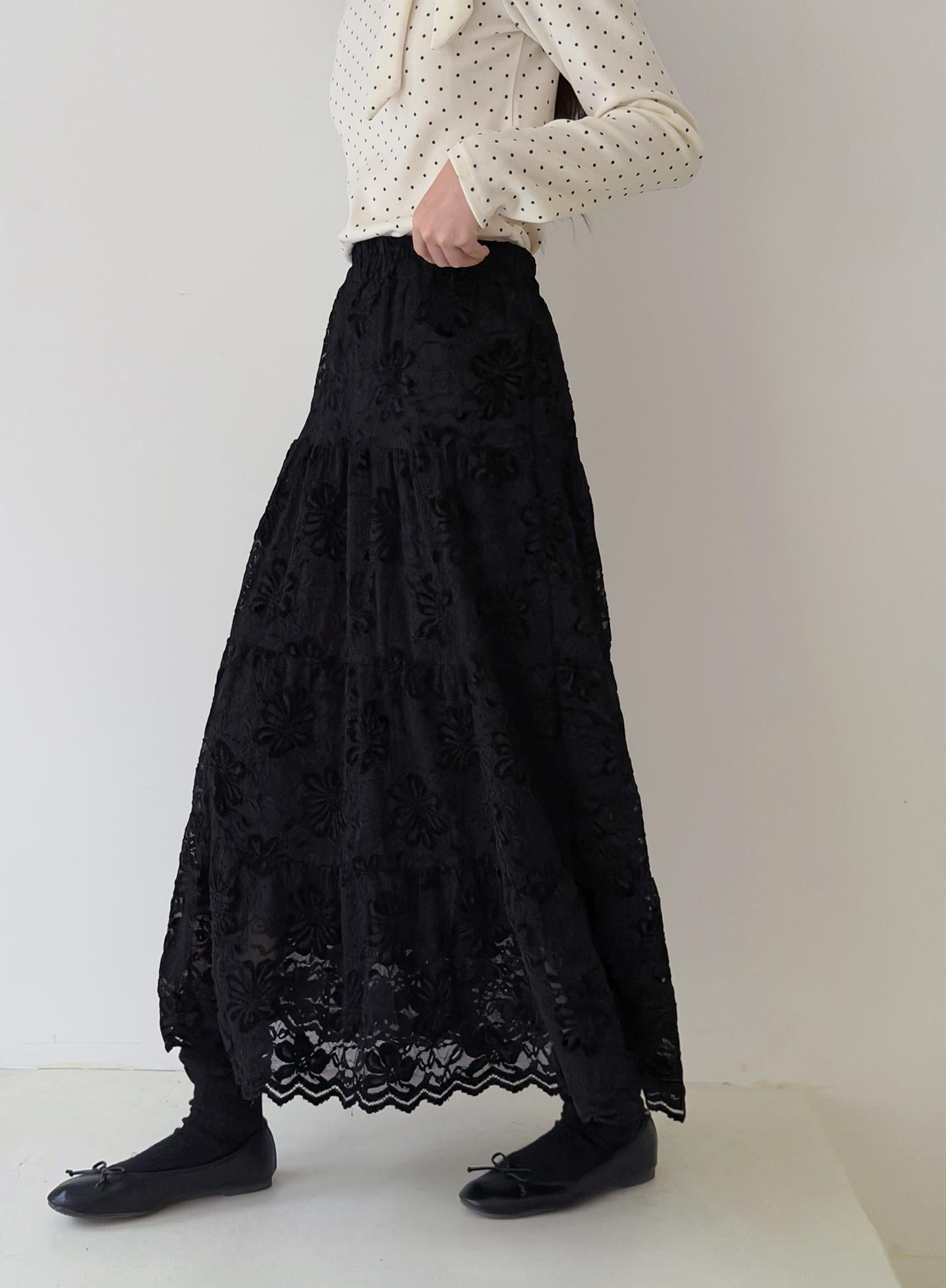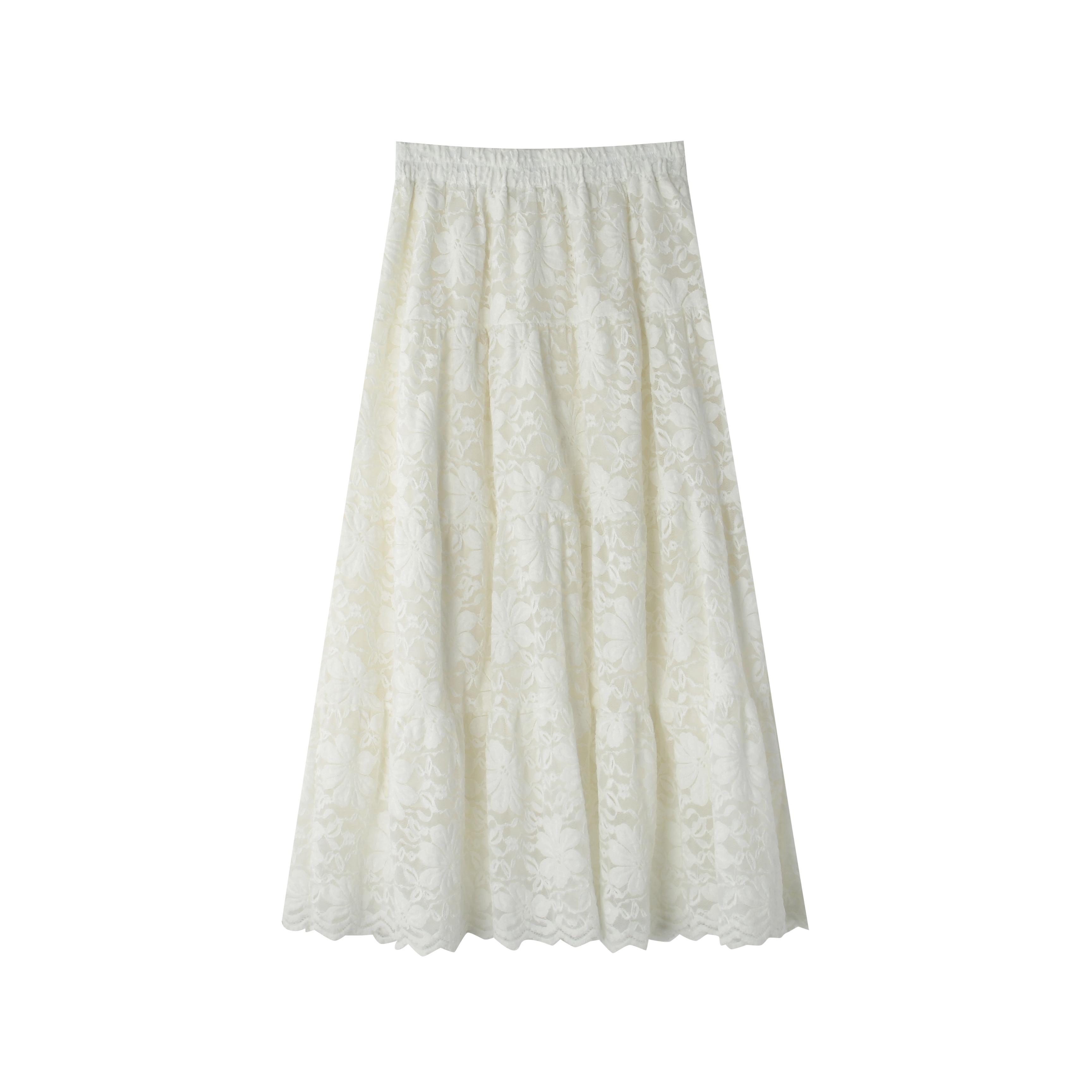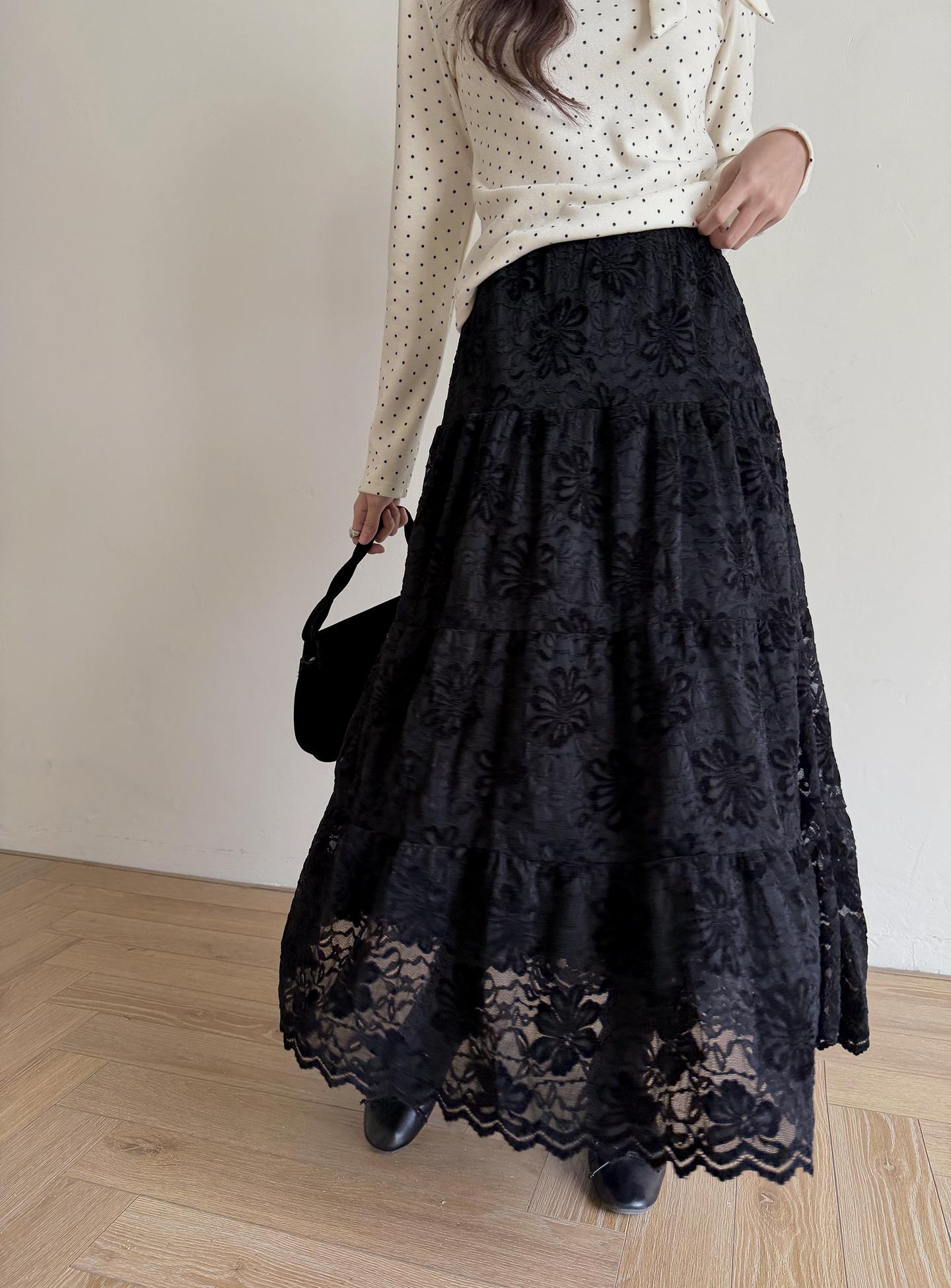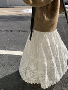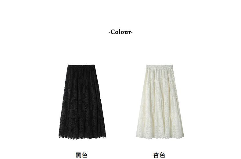 【C8112】冬上新!復古磨毛刺繡蕾絲中長裙a字半身裙