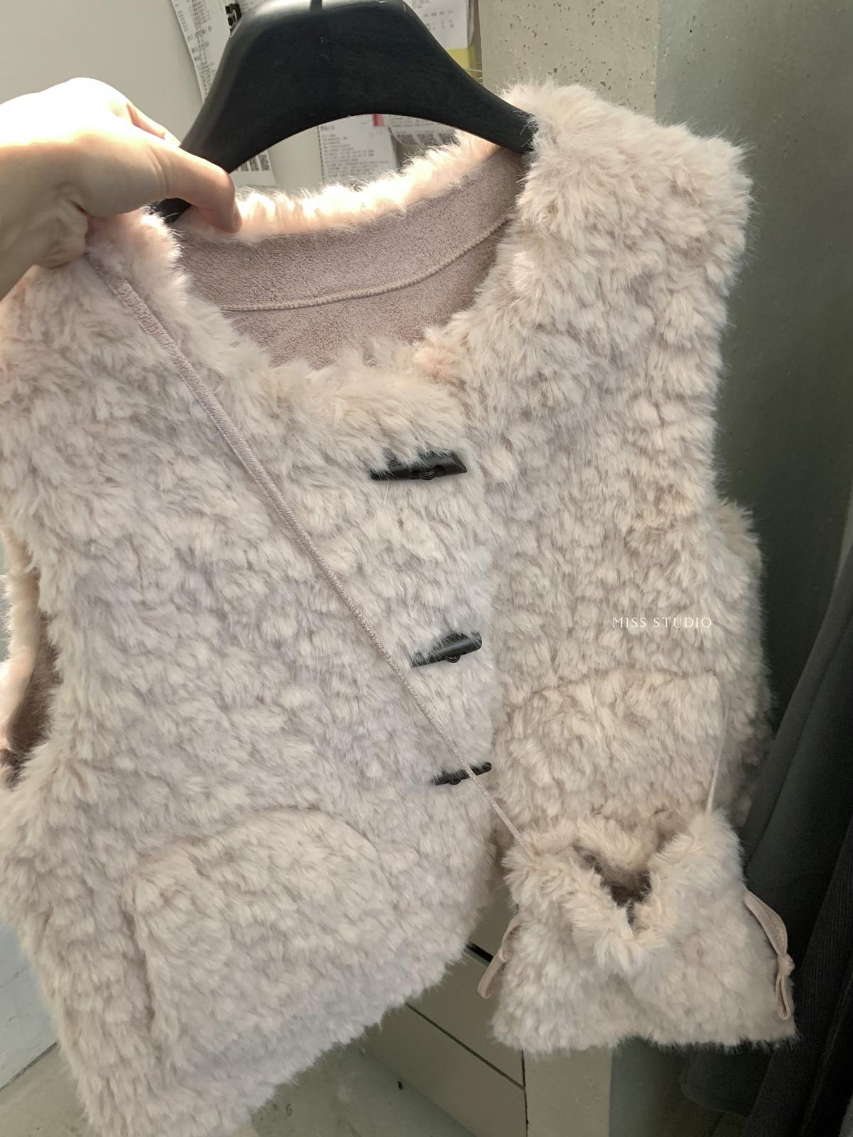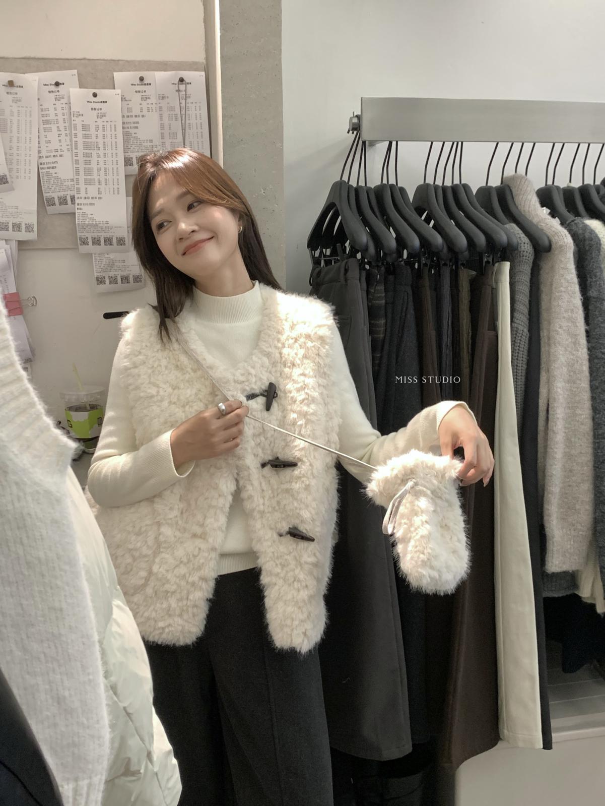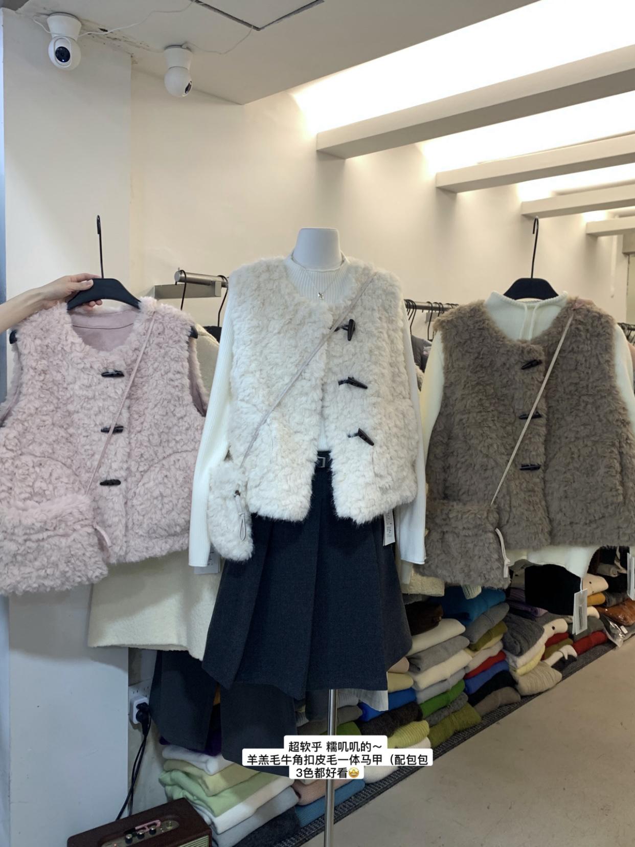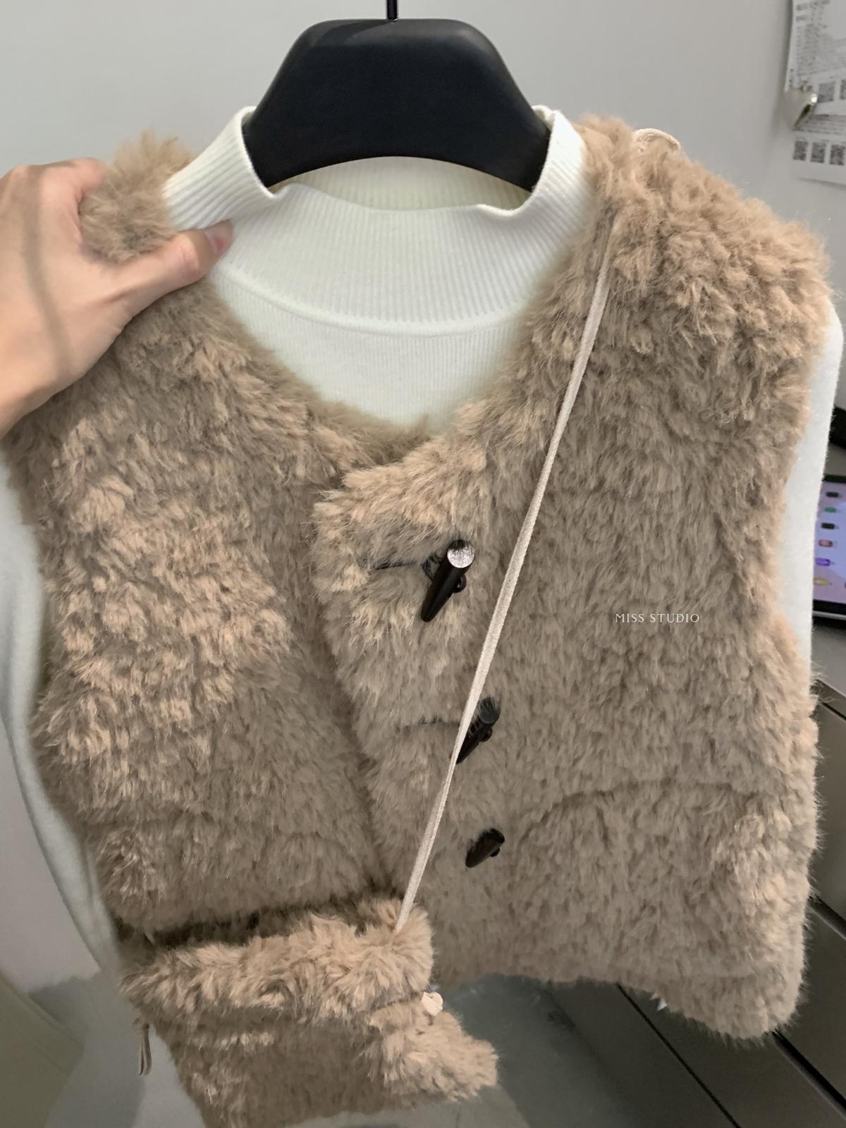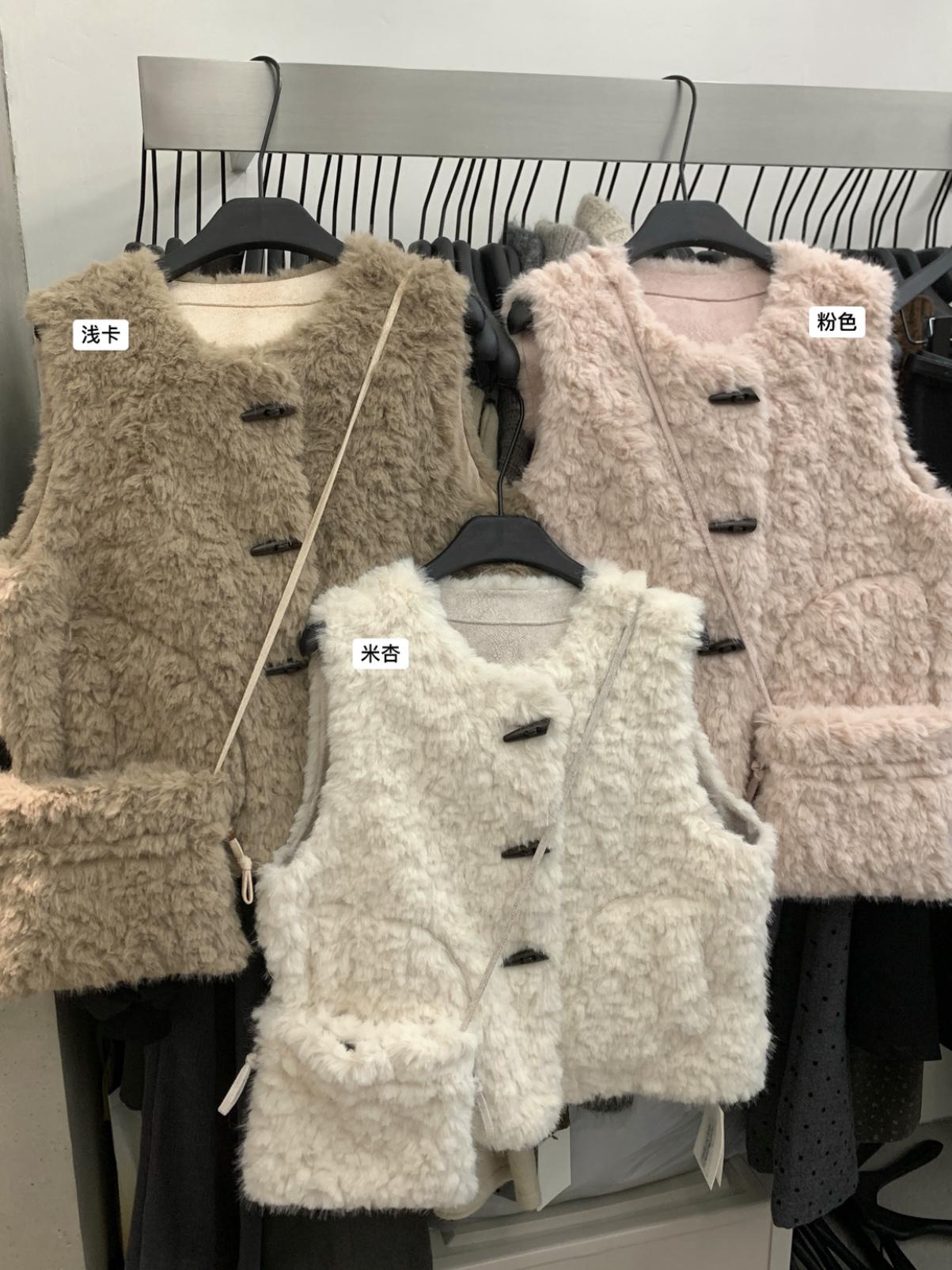 3. 【C8113】百搭牛角扣毛絨絨保暖仿皮毛一體馬甲(配小包包)