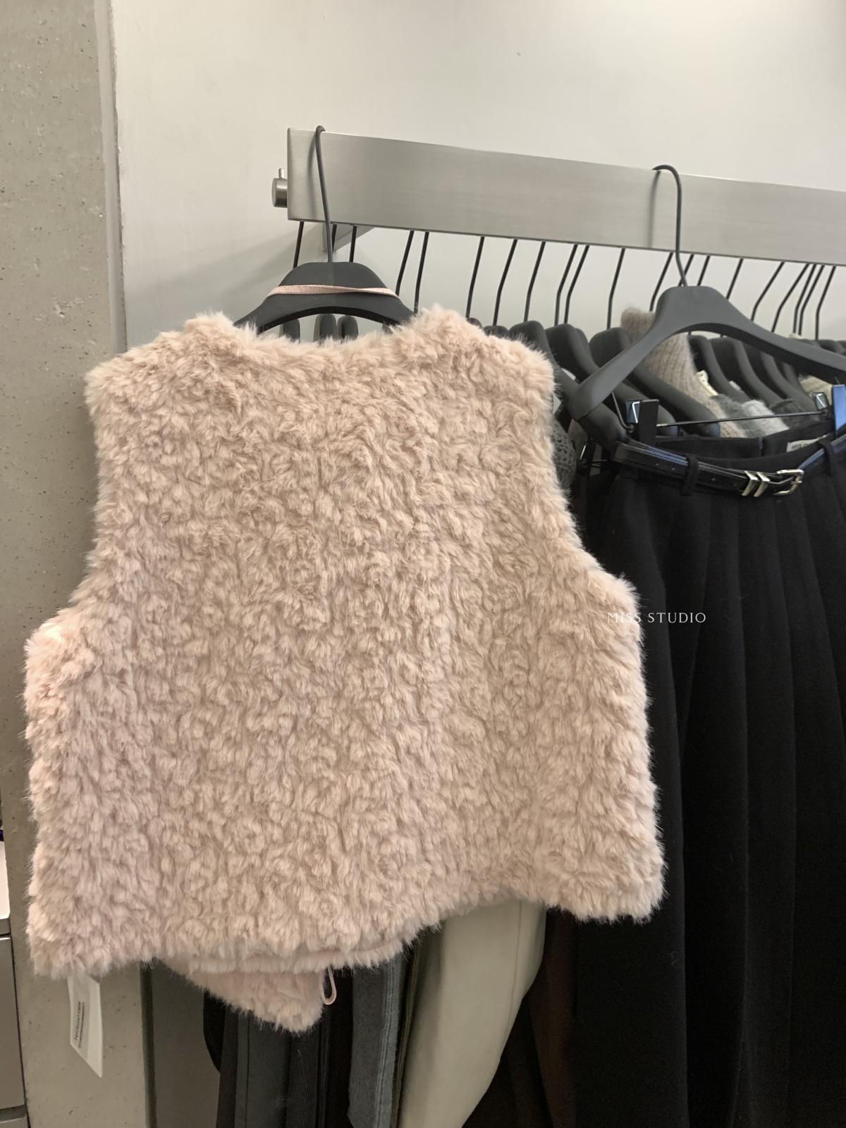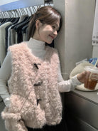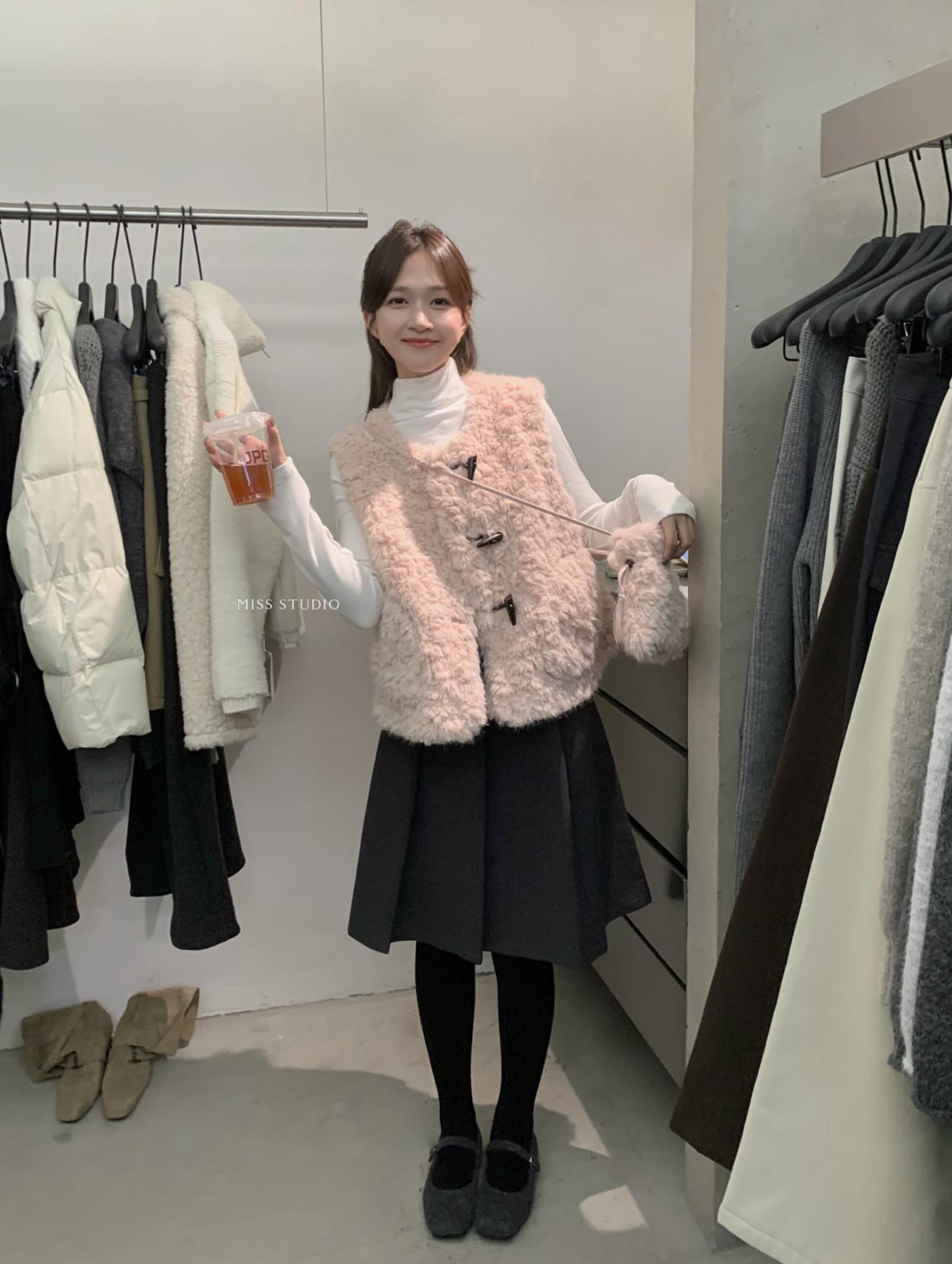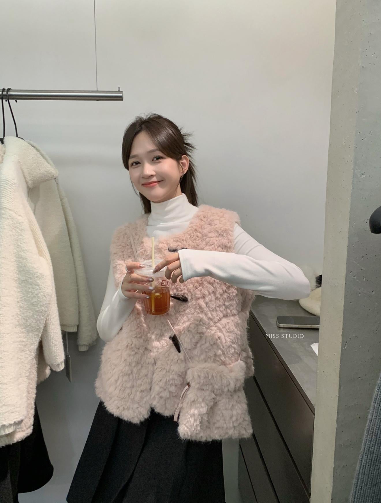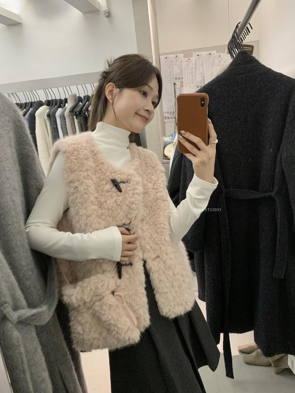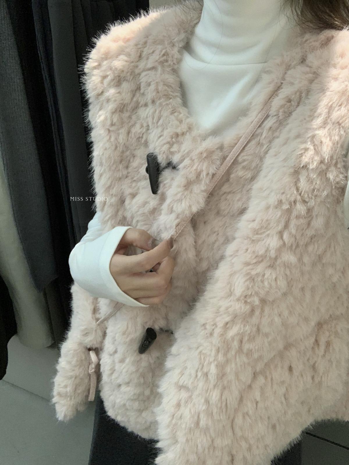 3. 【C8113】百搭牛角扣毛絨絨保暖仿皮毛一體馬甲(配小包包)