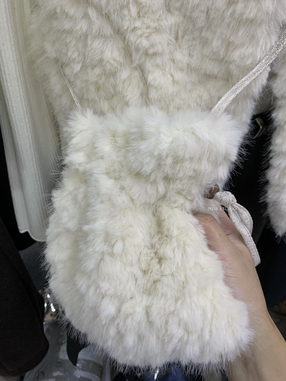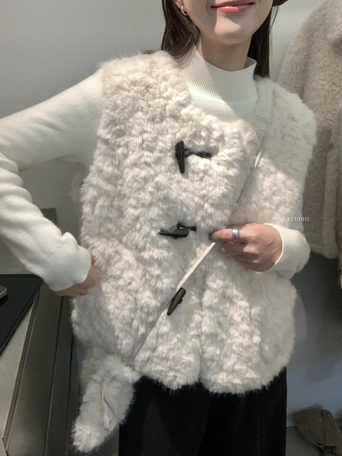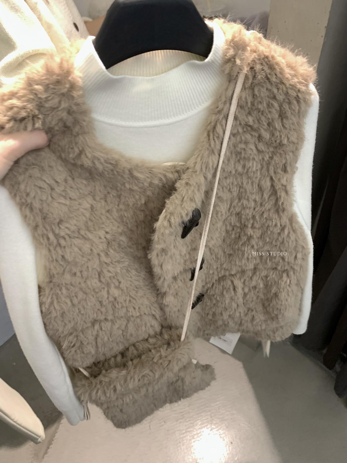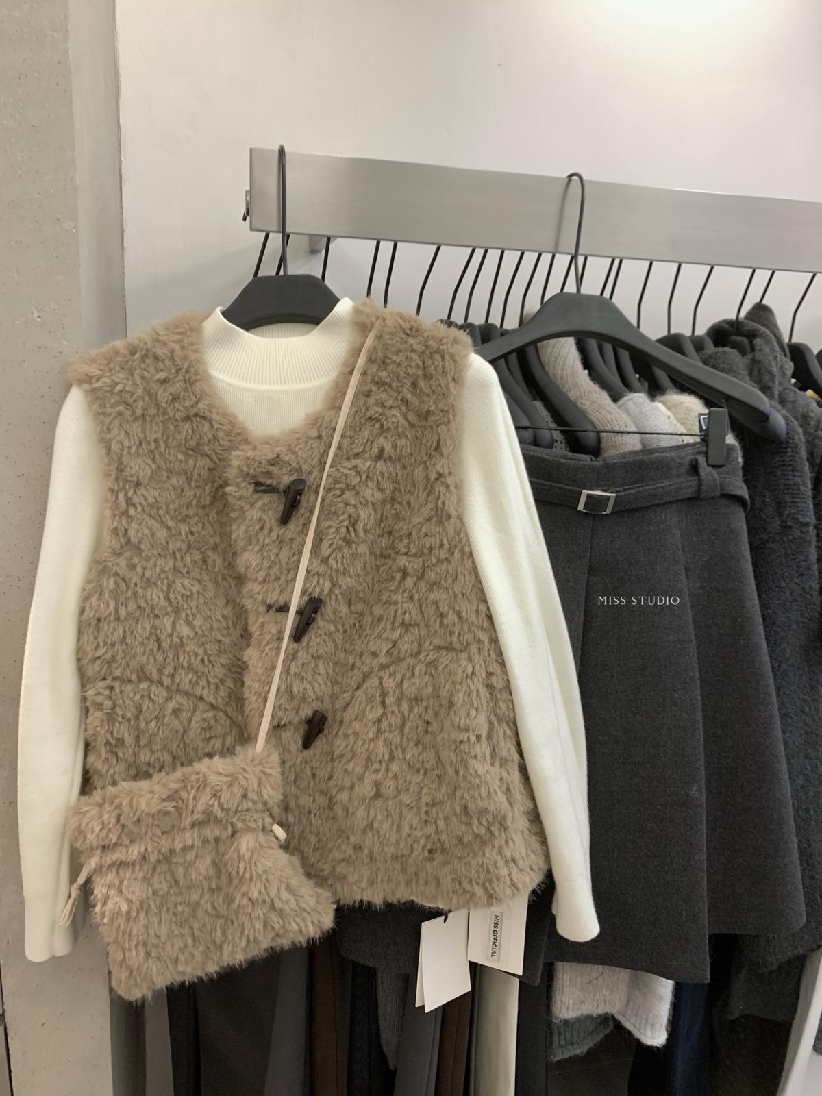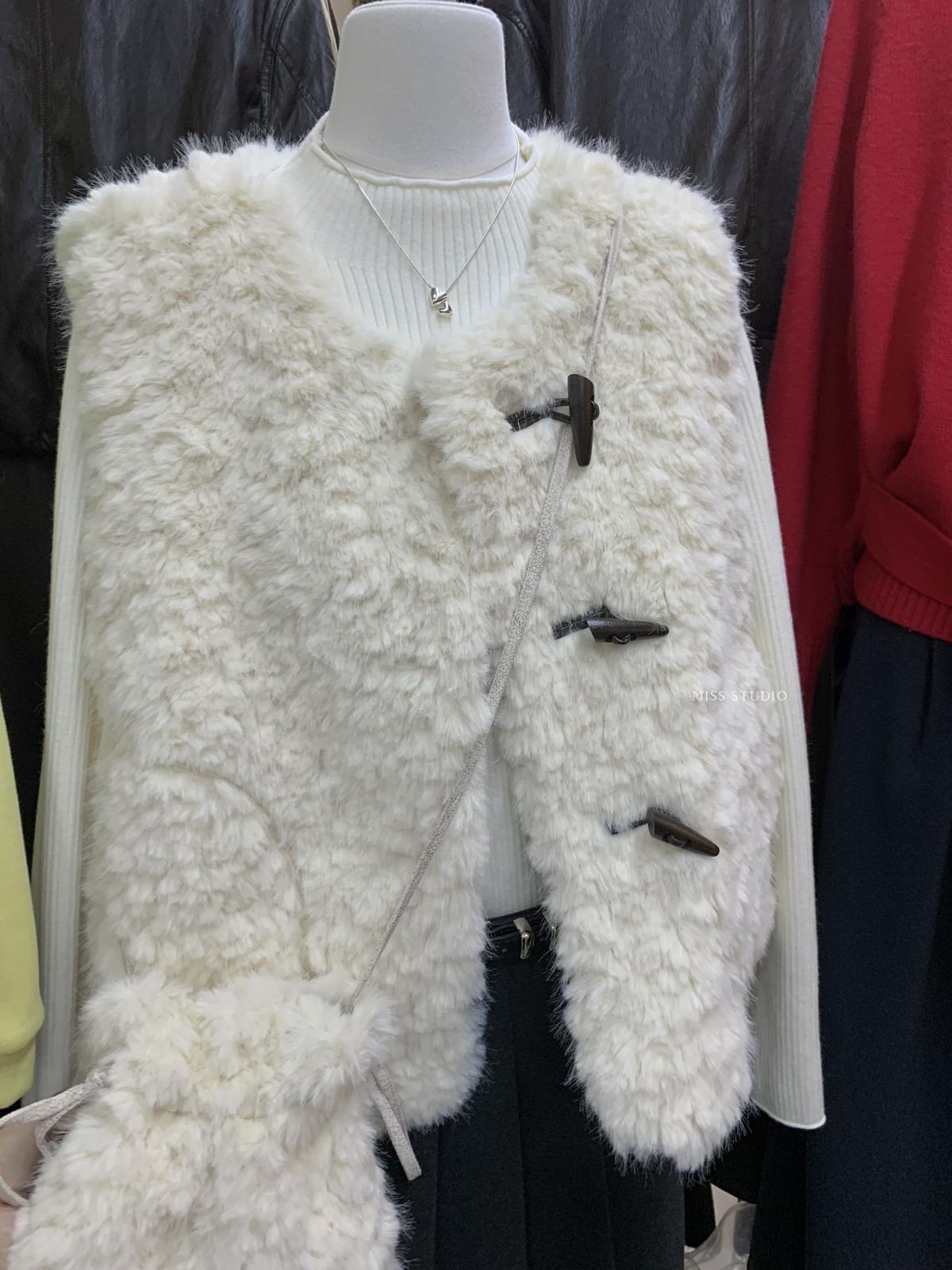 【C8113】百搭牛角扣毛絨絨保暖仿皮毛一體馬甲(配小包包)