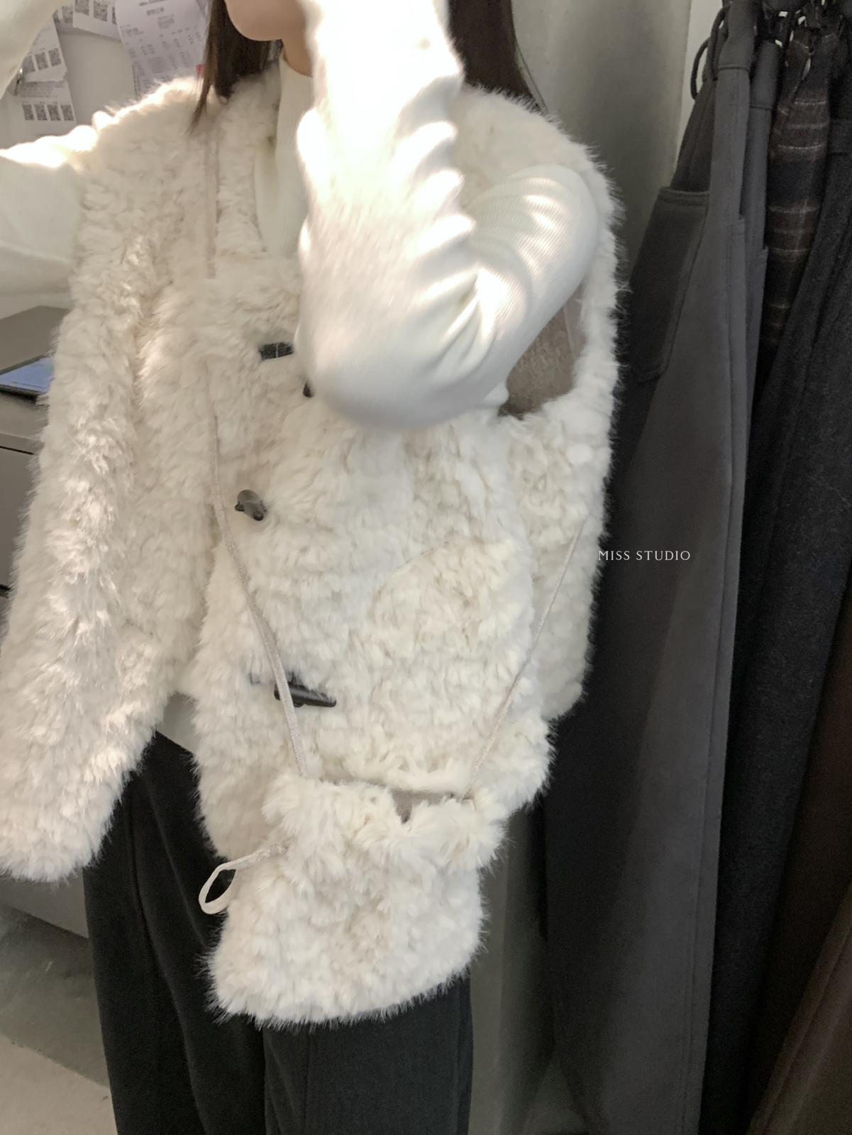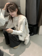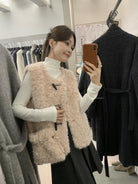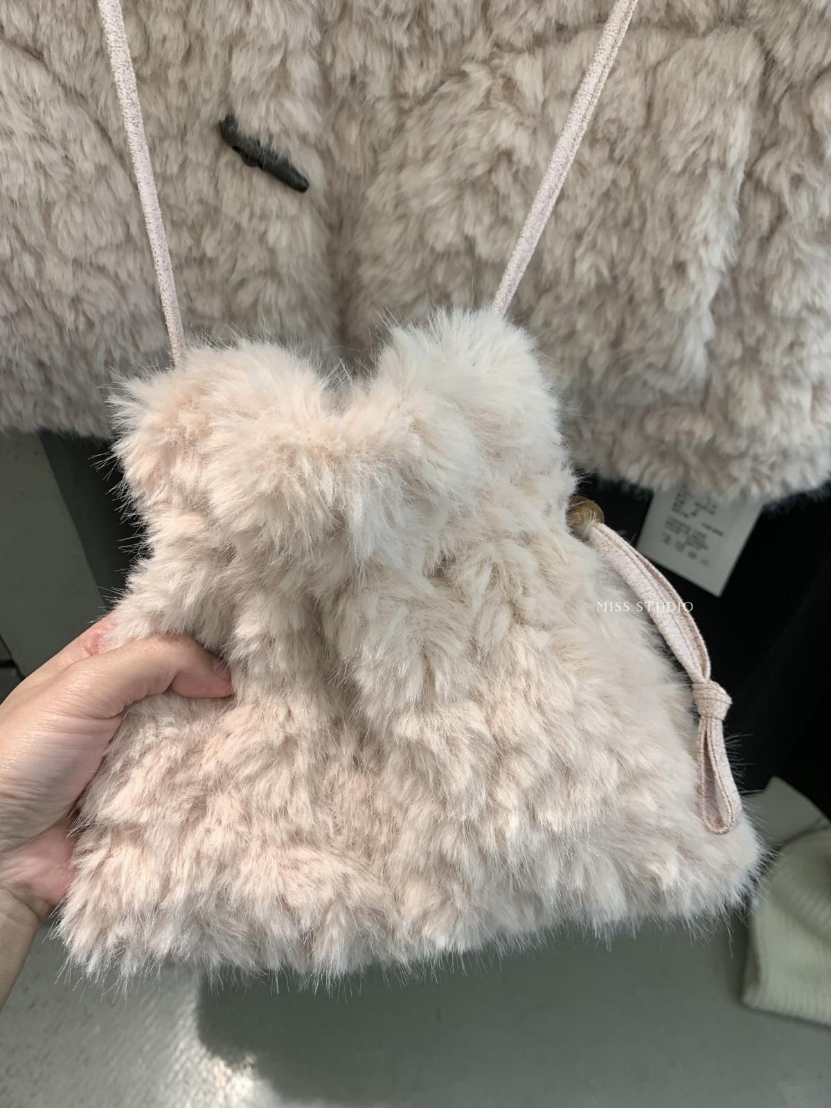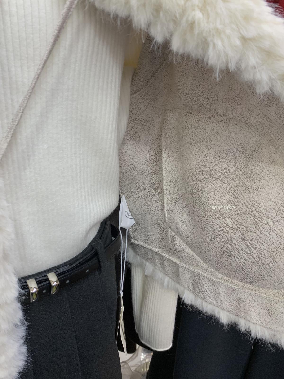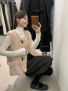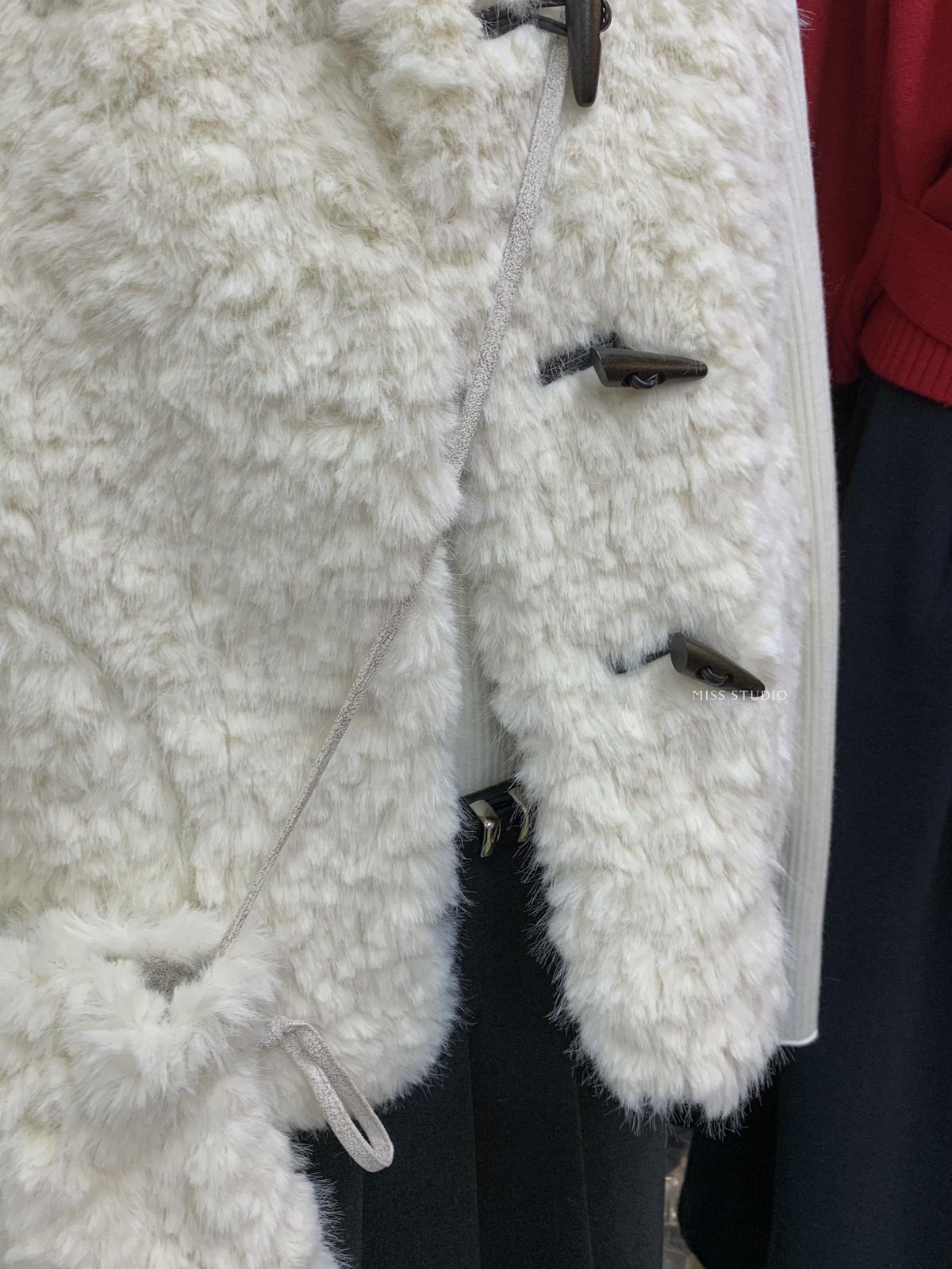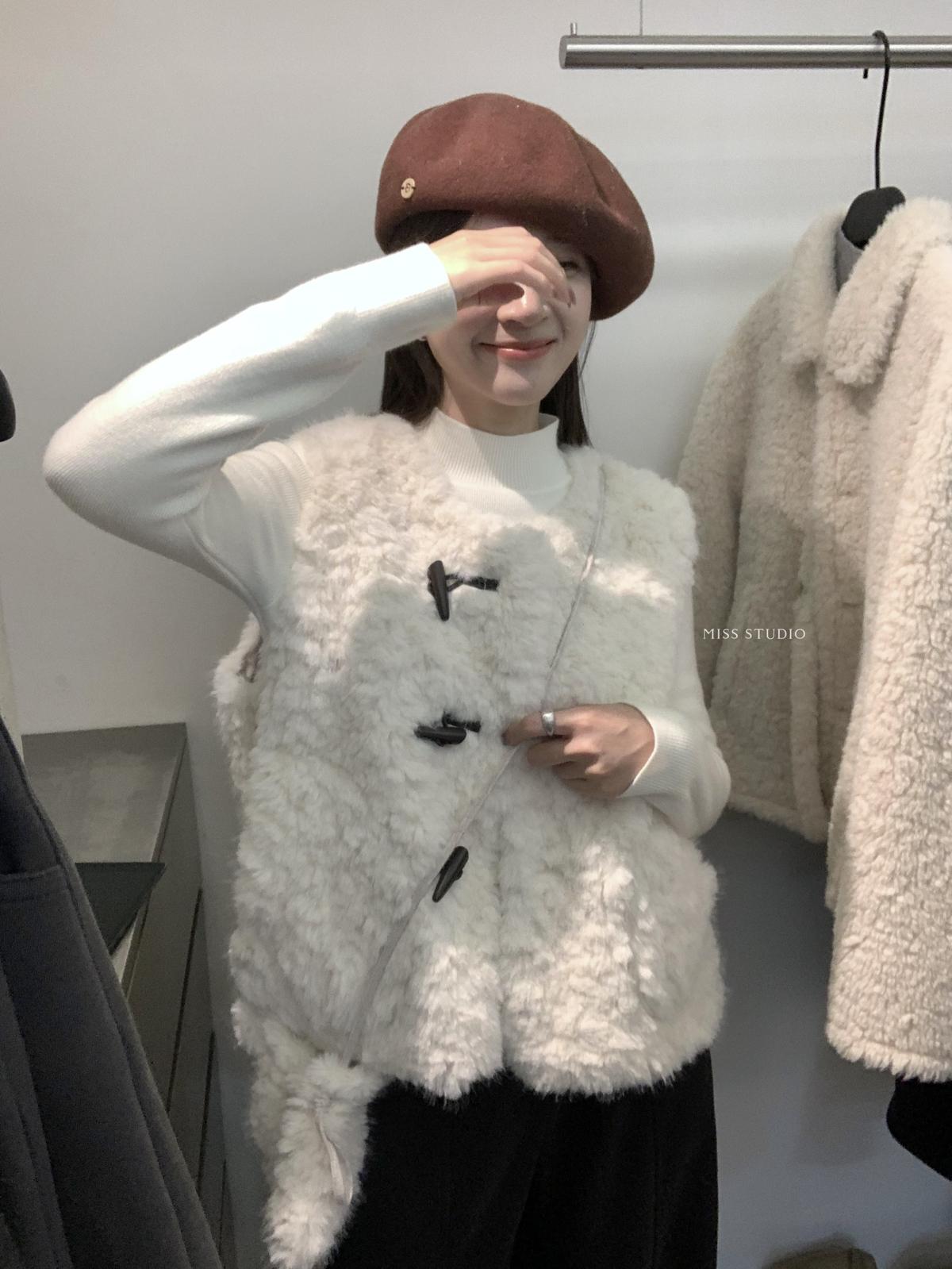 【C8113】百搭牛角扣毛絨絨保暖仿皮毛一體馬甲(配小包包)