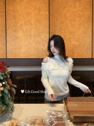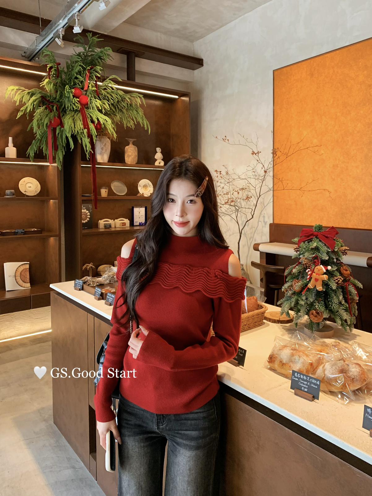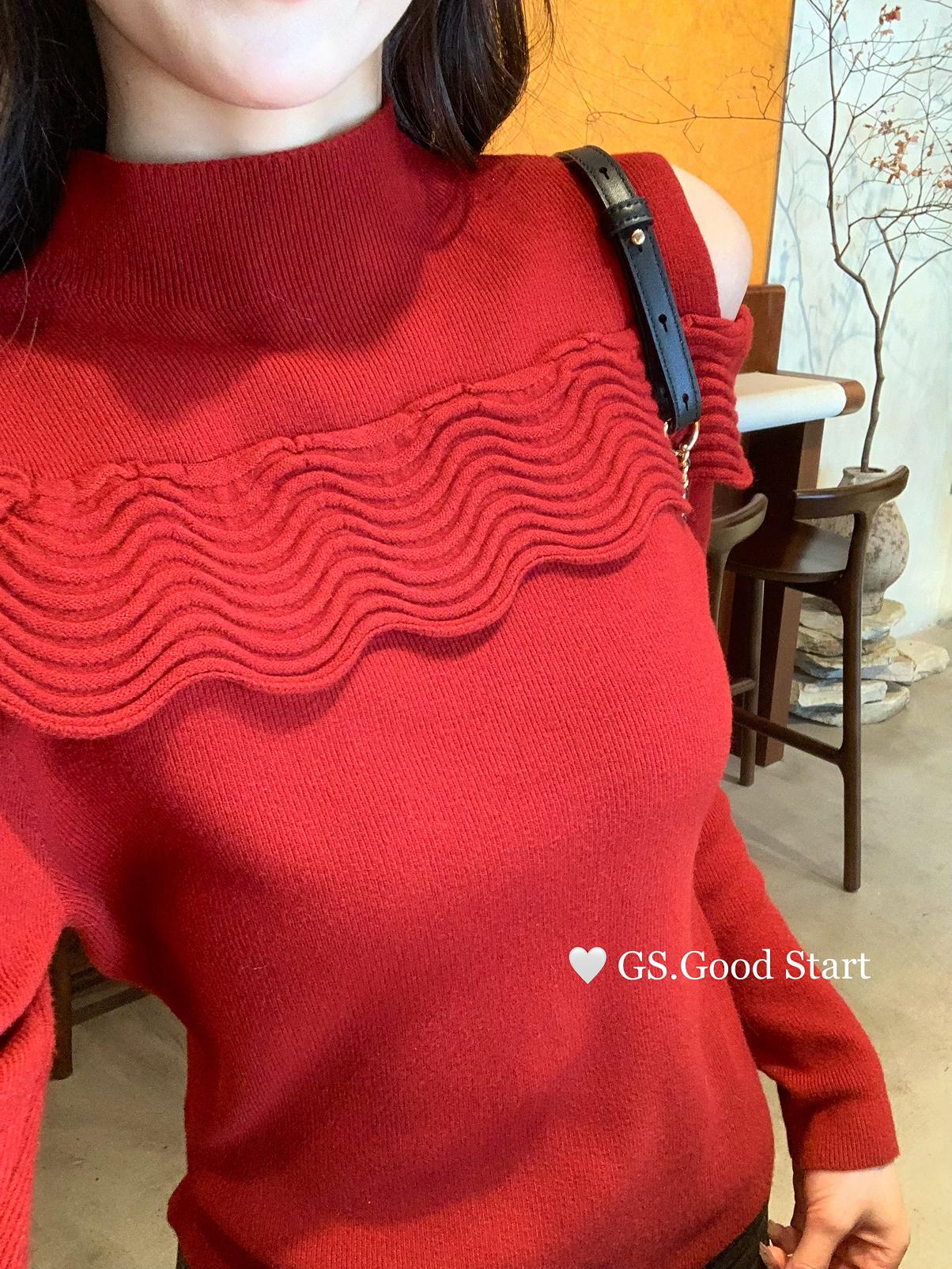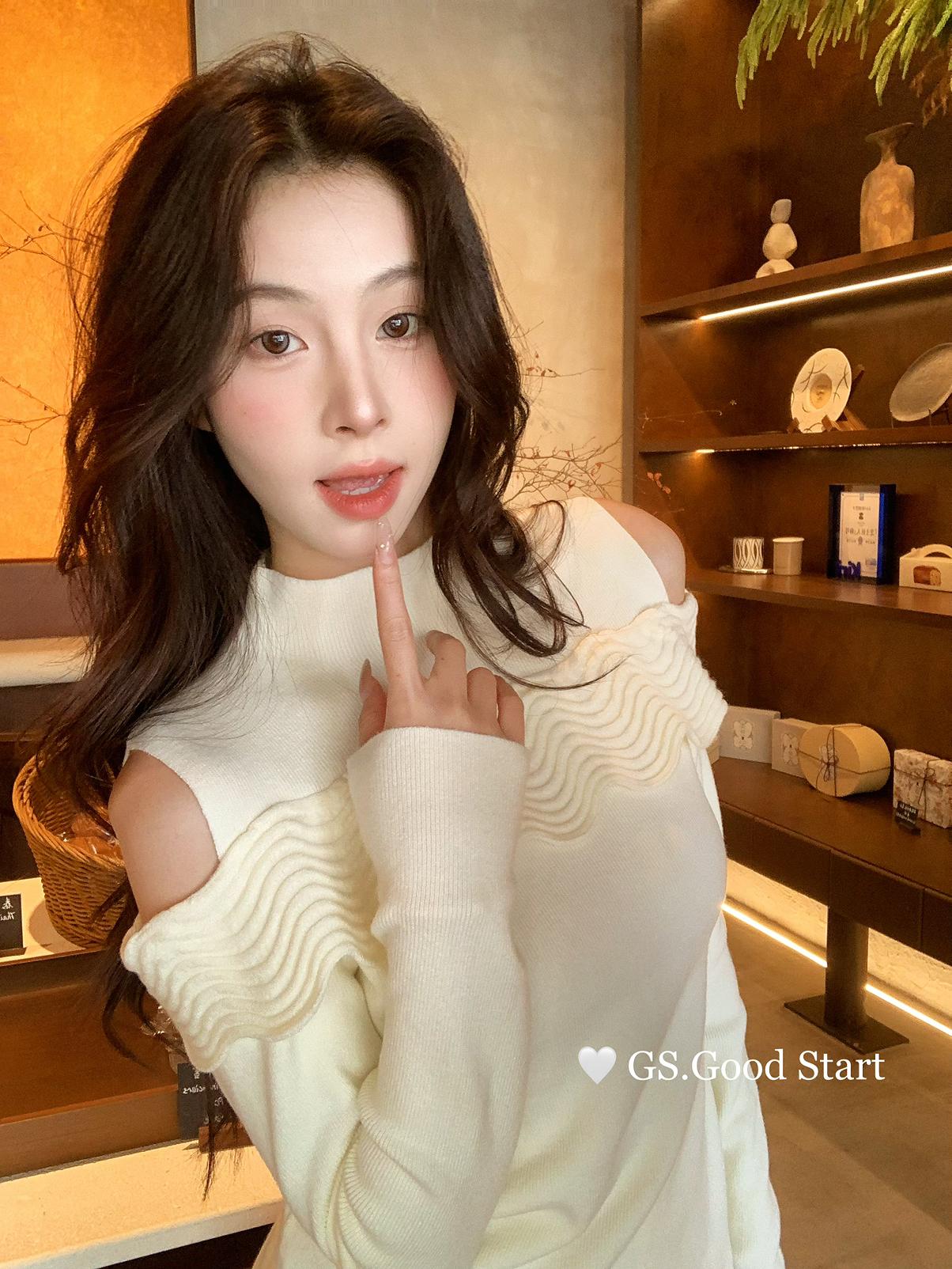 【C8165】小露sexy香肩~美膩迷人!進店必帶!秋冬氣質設計感露肩針織衫