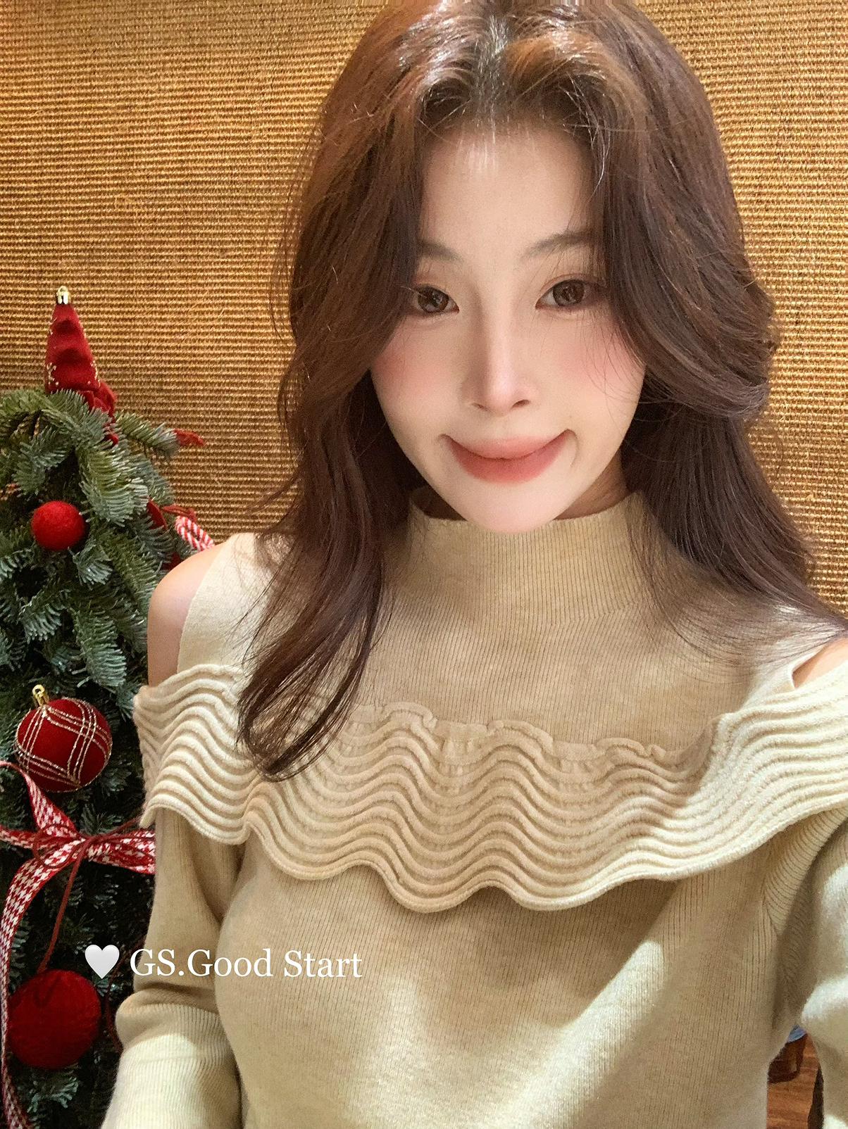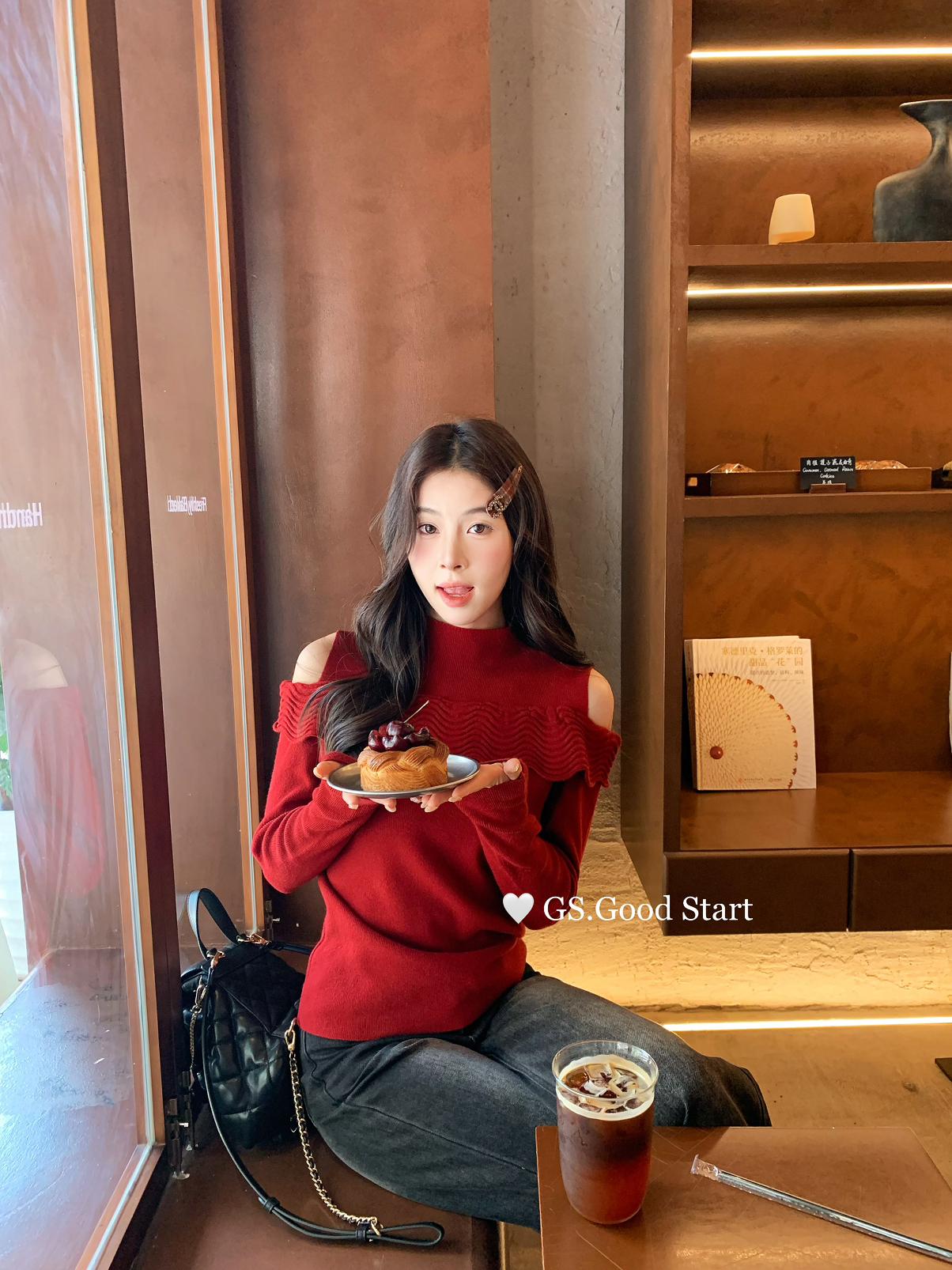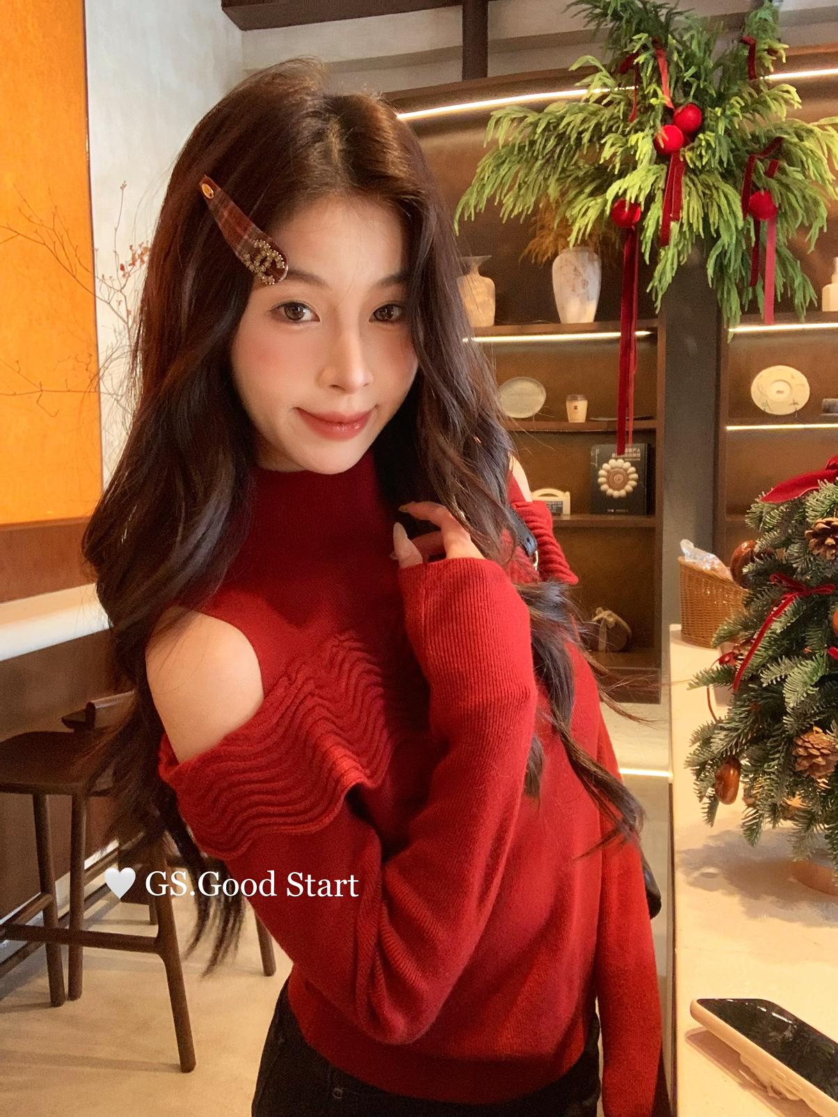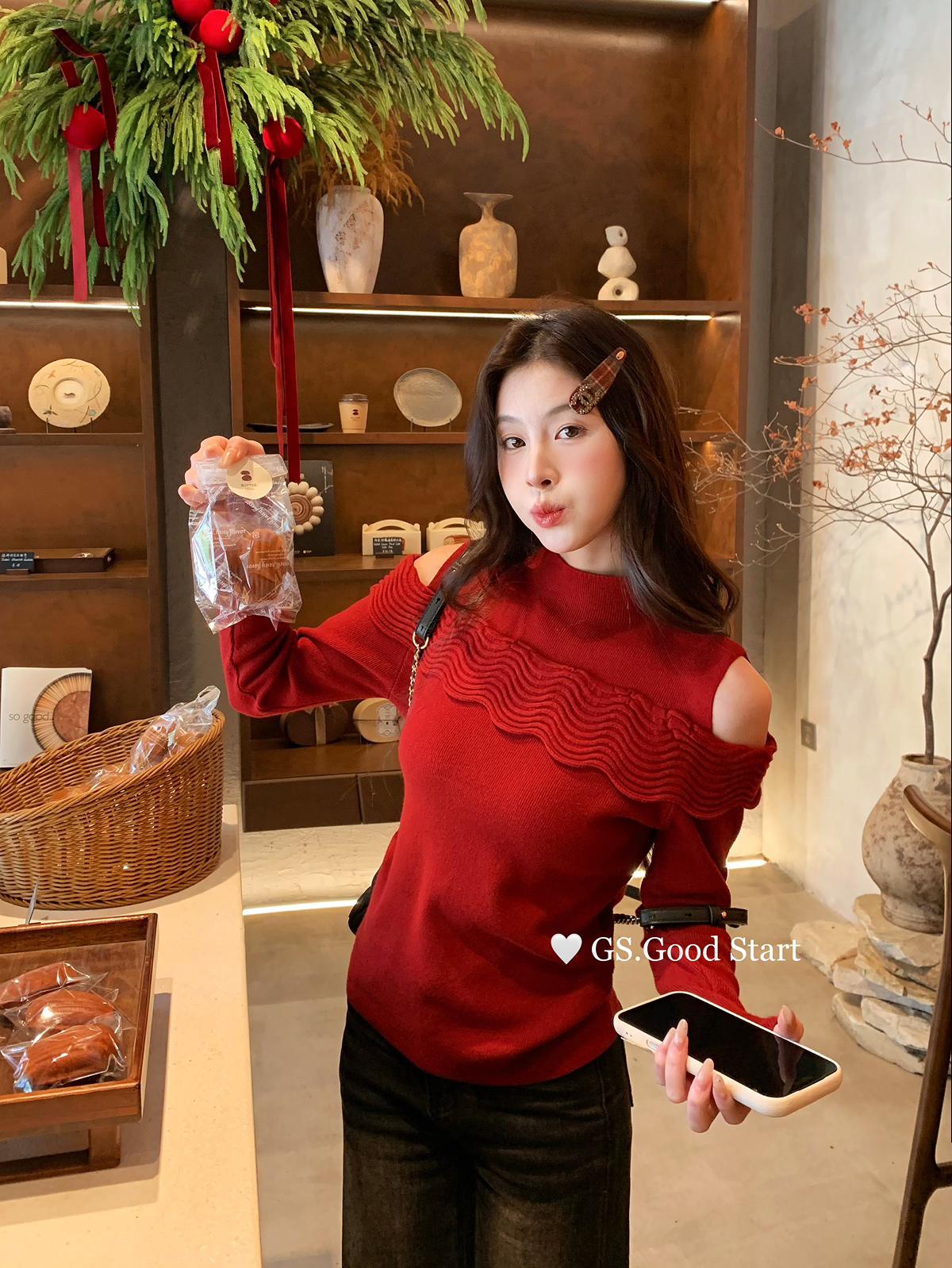 【C8165】小露sexy香肩~美膩迷人!進店必帶!秋冬氣質設計感露肩針織衫