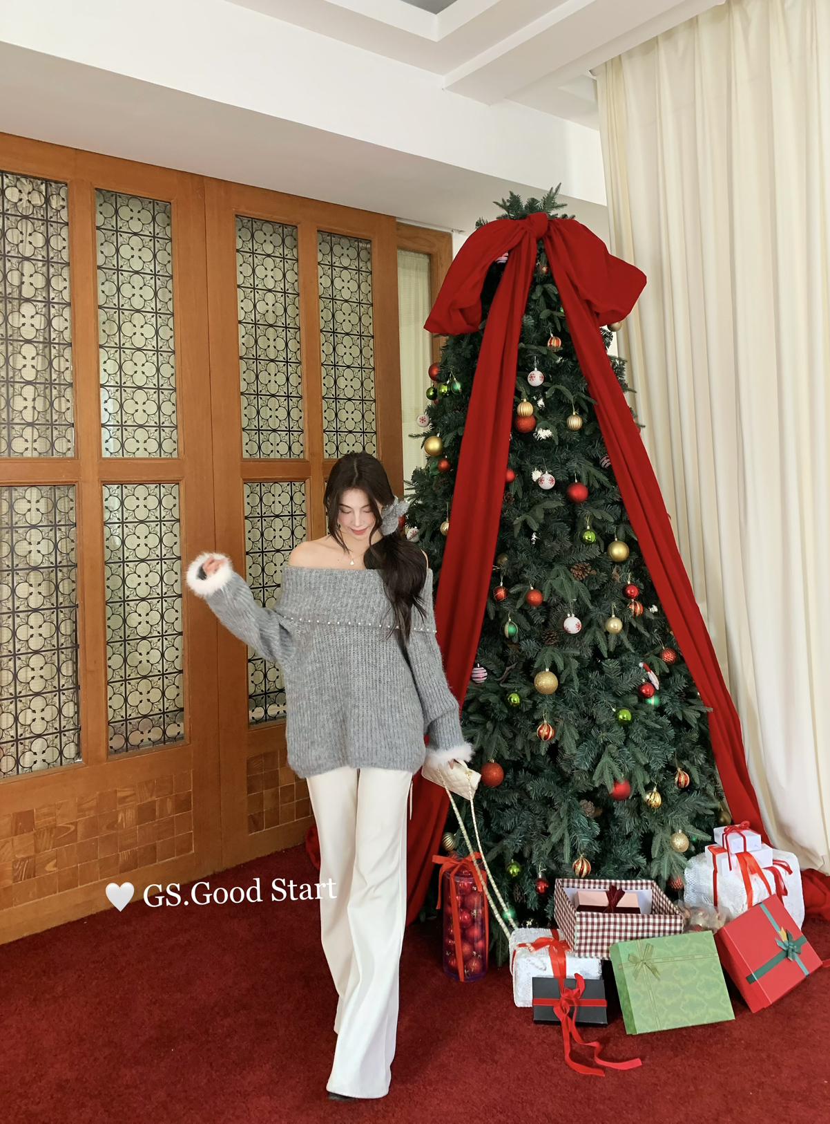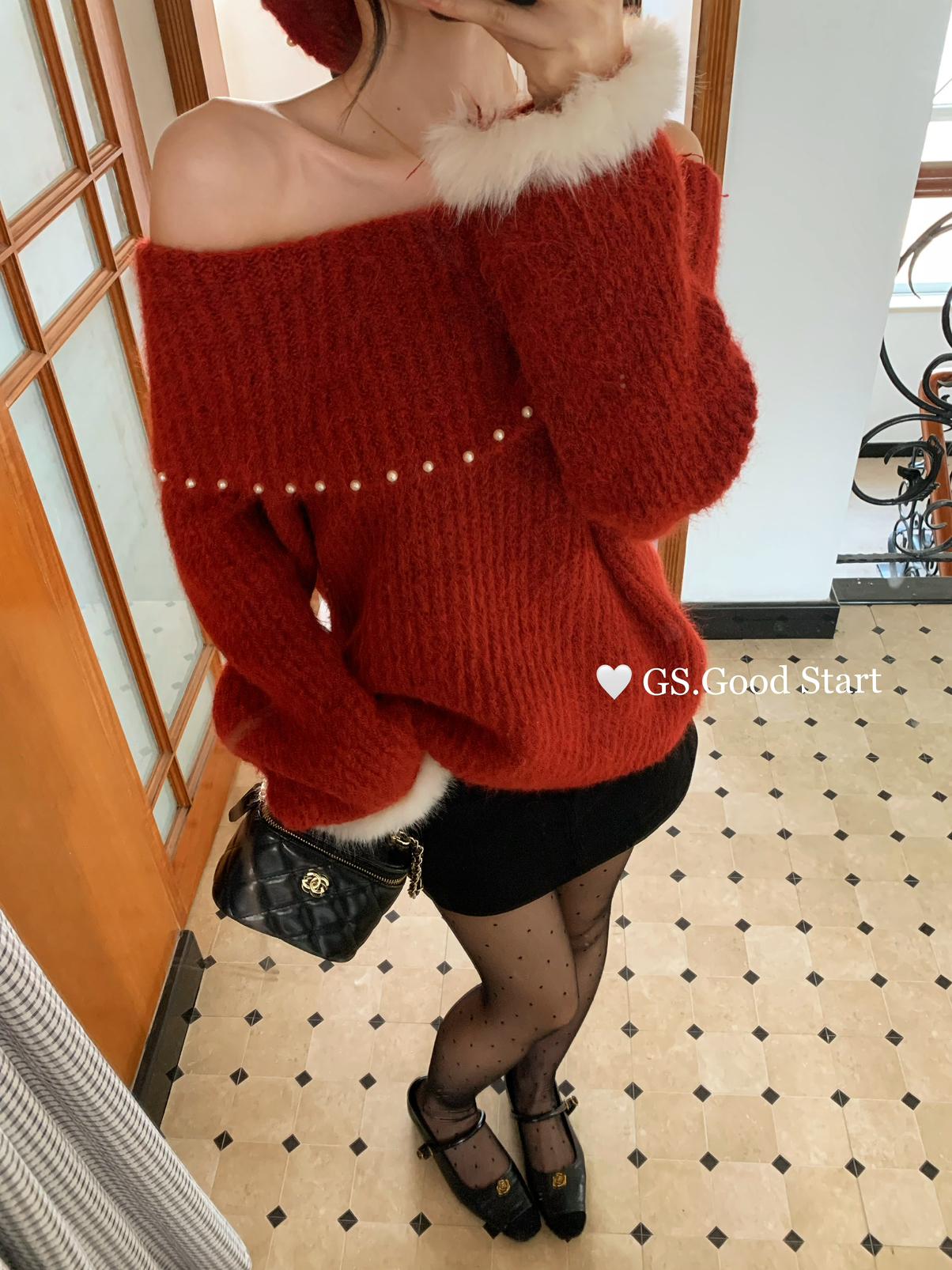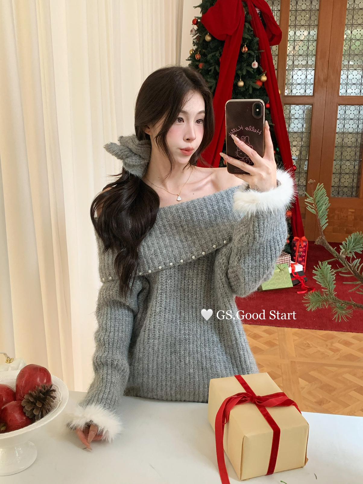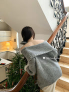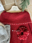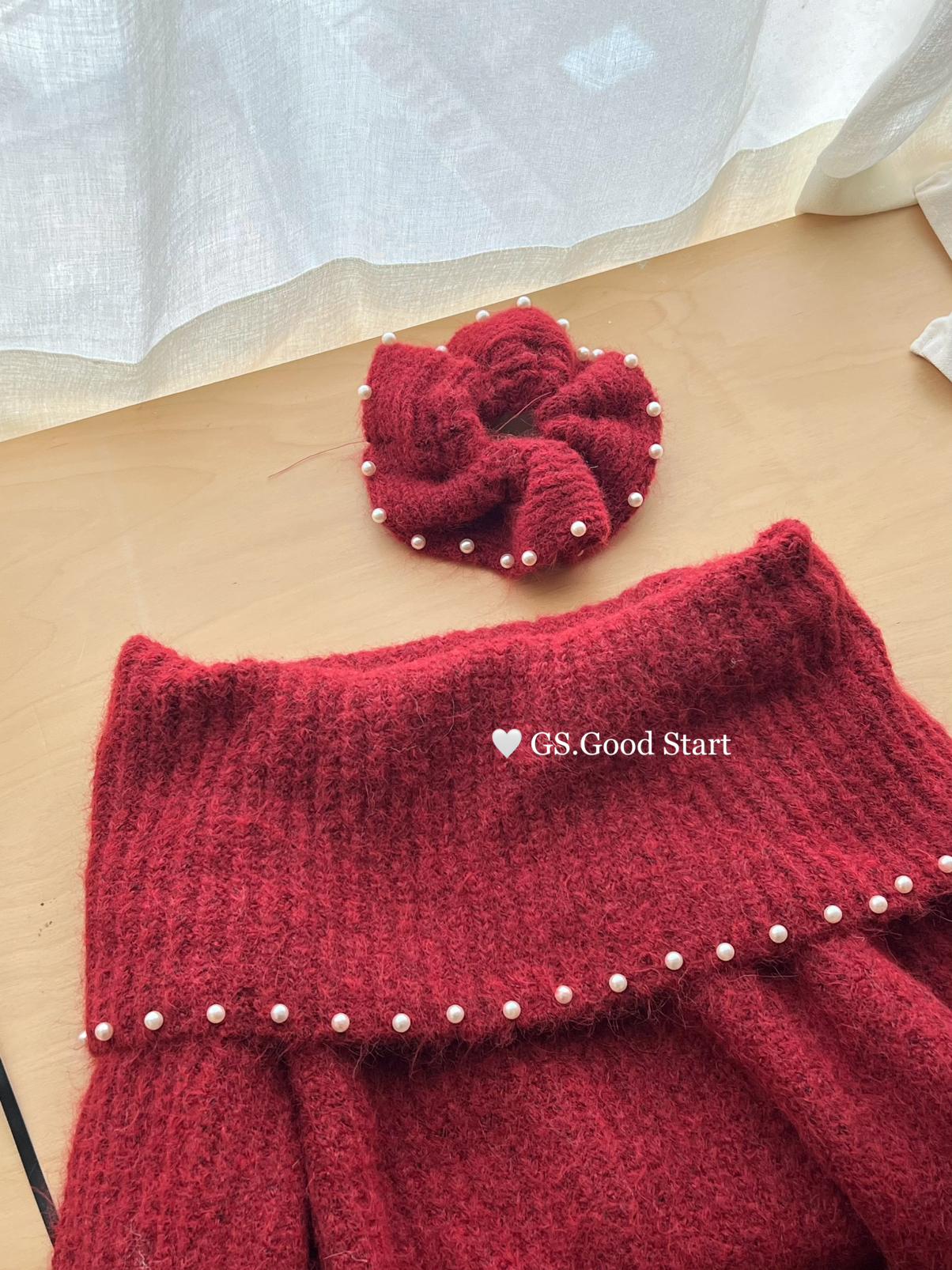 【C8167】紅色太顯白了!強推!心動一萬次~冬季浪漫氣質氛圍感一字肩寬鬆保暖毛衣(配可拆卸髮圈)