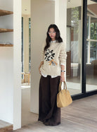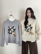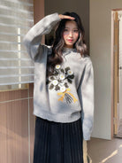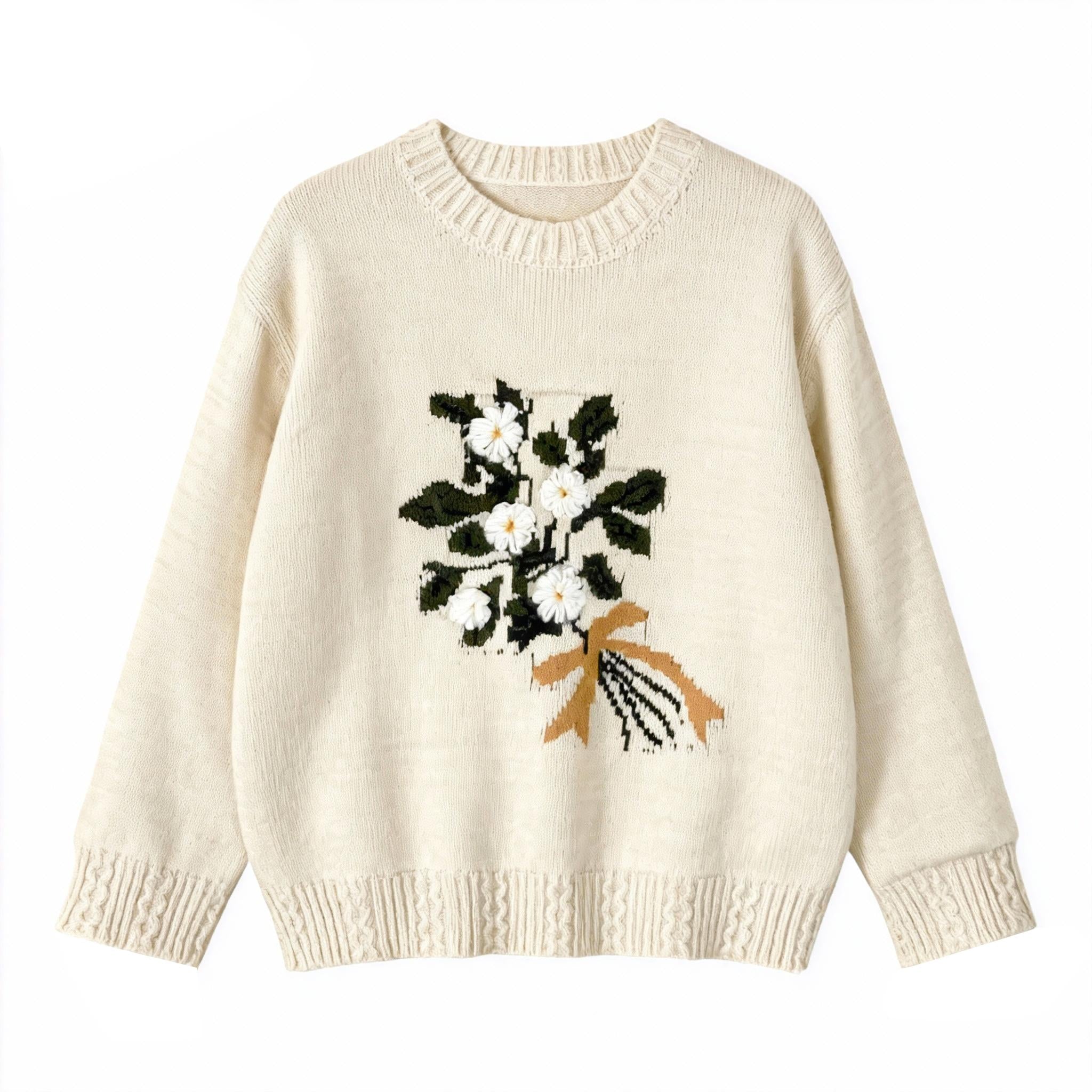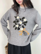 【C8261】設計感立體花卉提花針織衫圓領套頭保暖毛衣