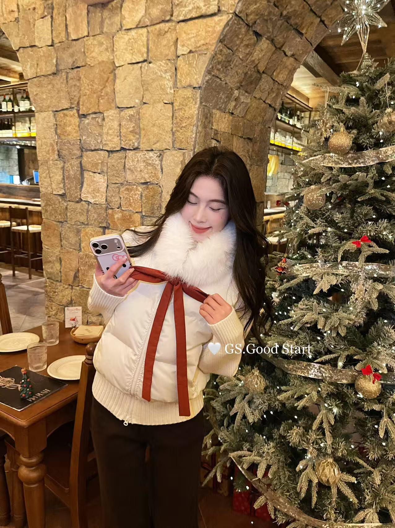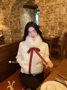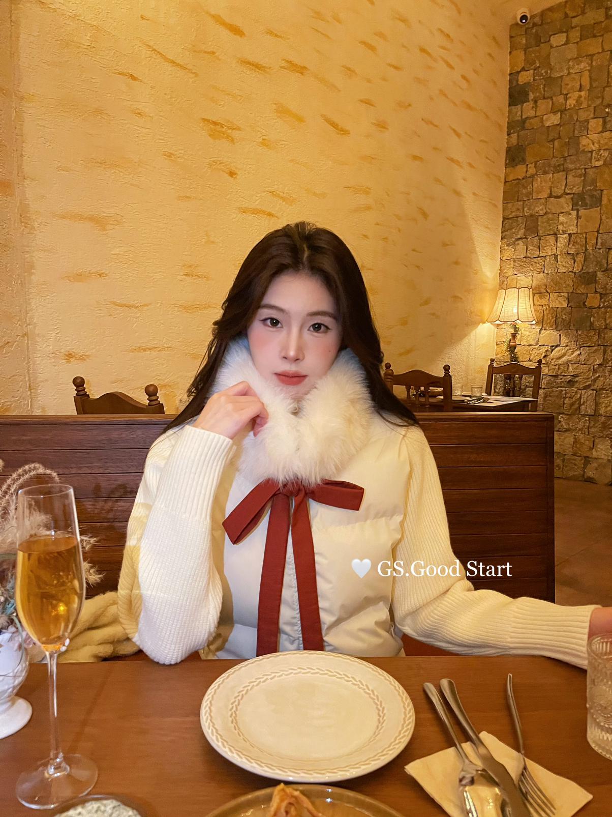 【C8289】超哇塞!小心機搭配*氛圍感一下拉滿~冬季氣質甜美環保毛領繫帶圍脖