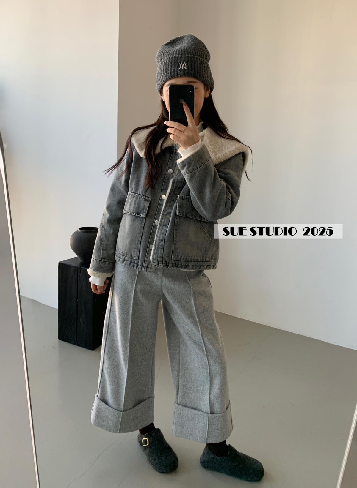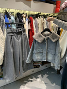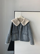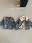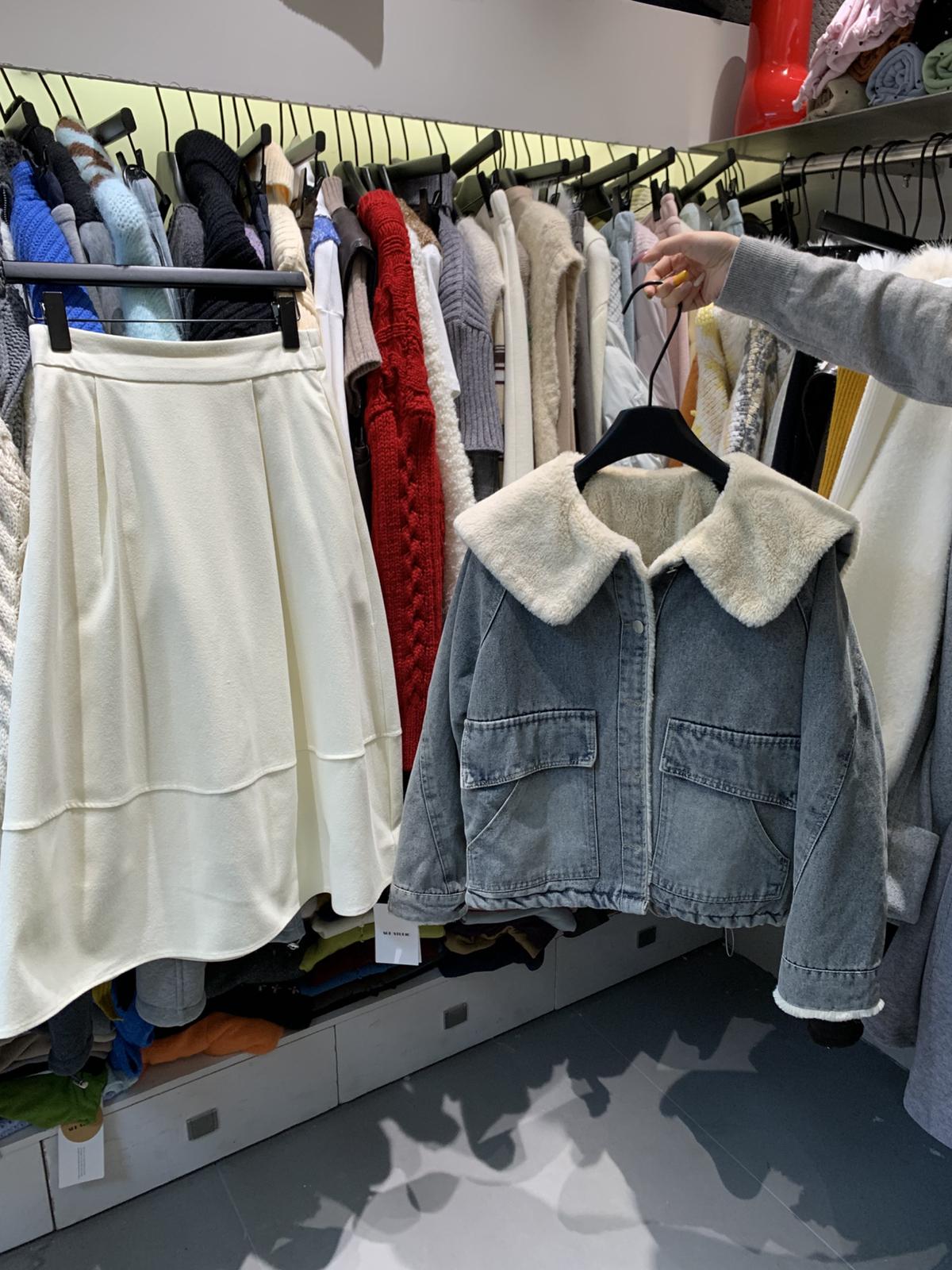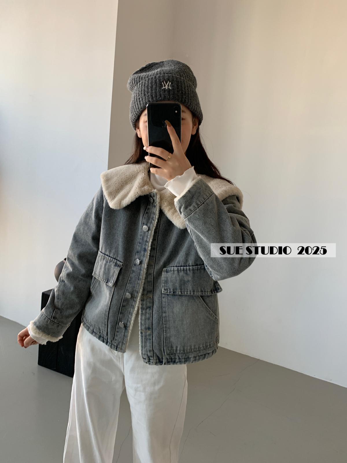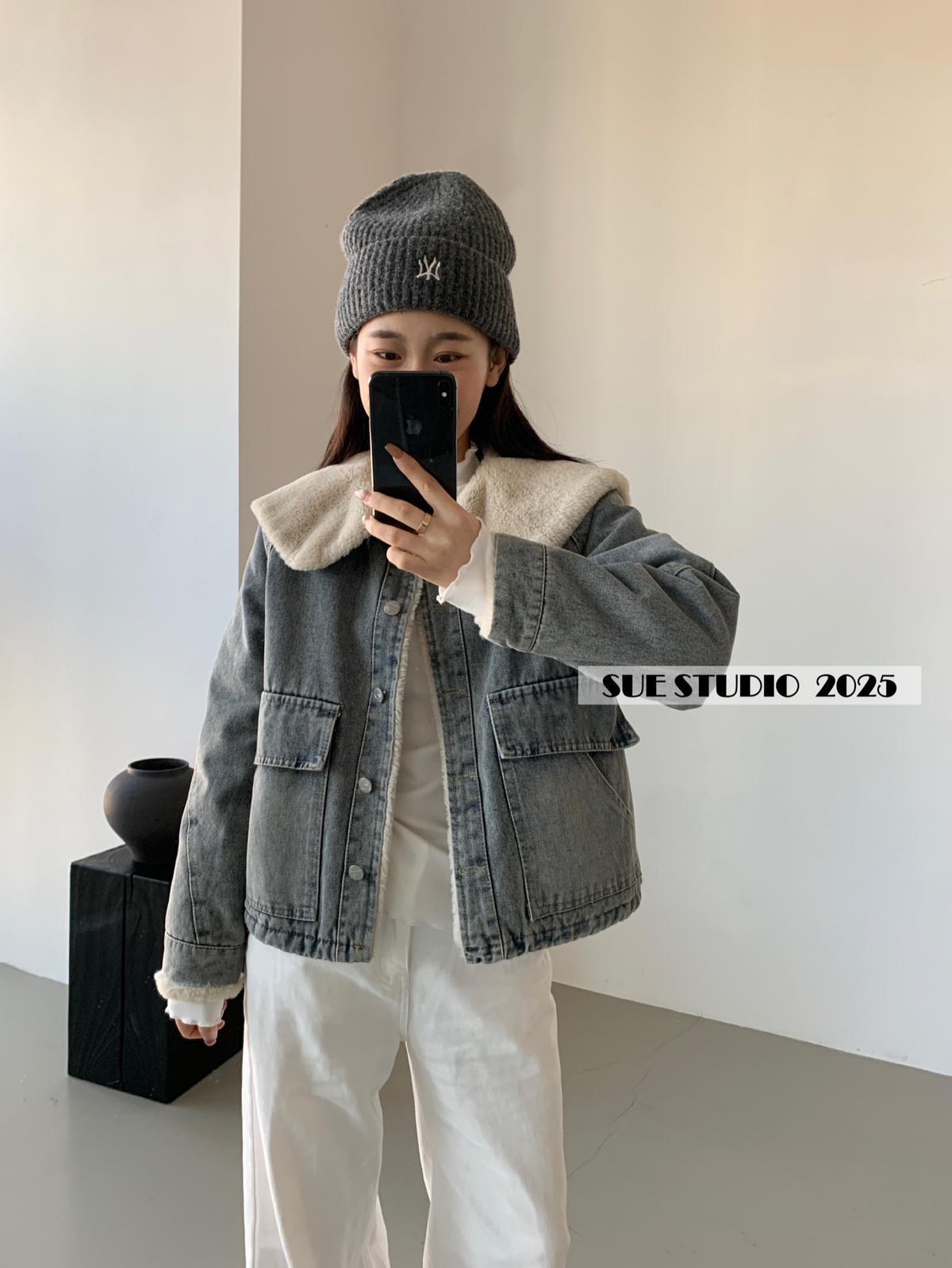3. 【C8307】韓系翻領水洗做舊毛毛絨裏牛仔外套
