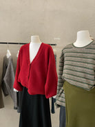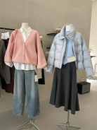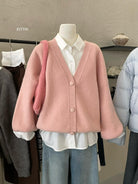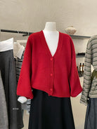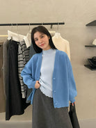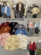 【C8318】韓系多巴胺加厚包扣v領開衫保暖毛衣
