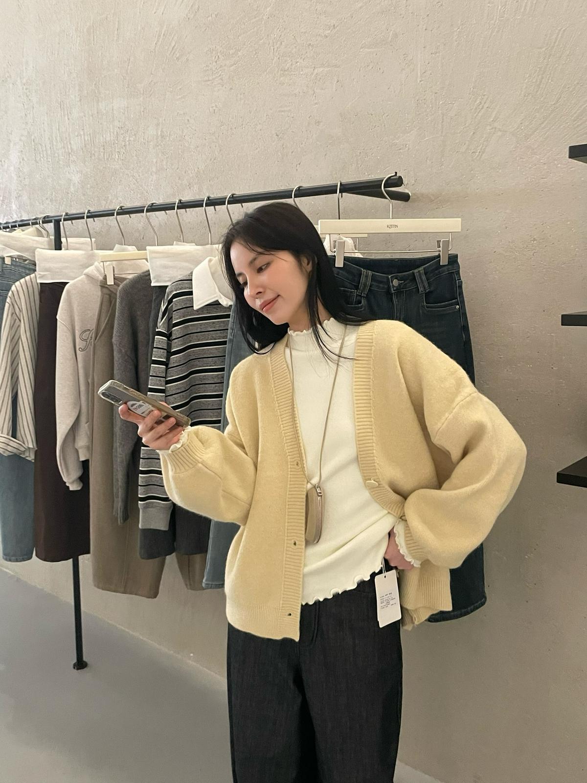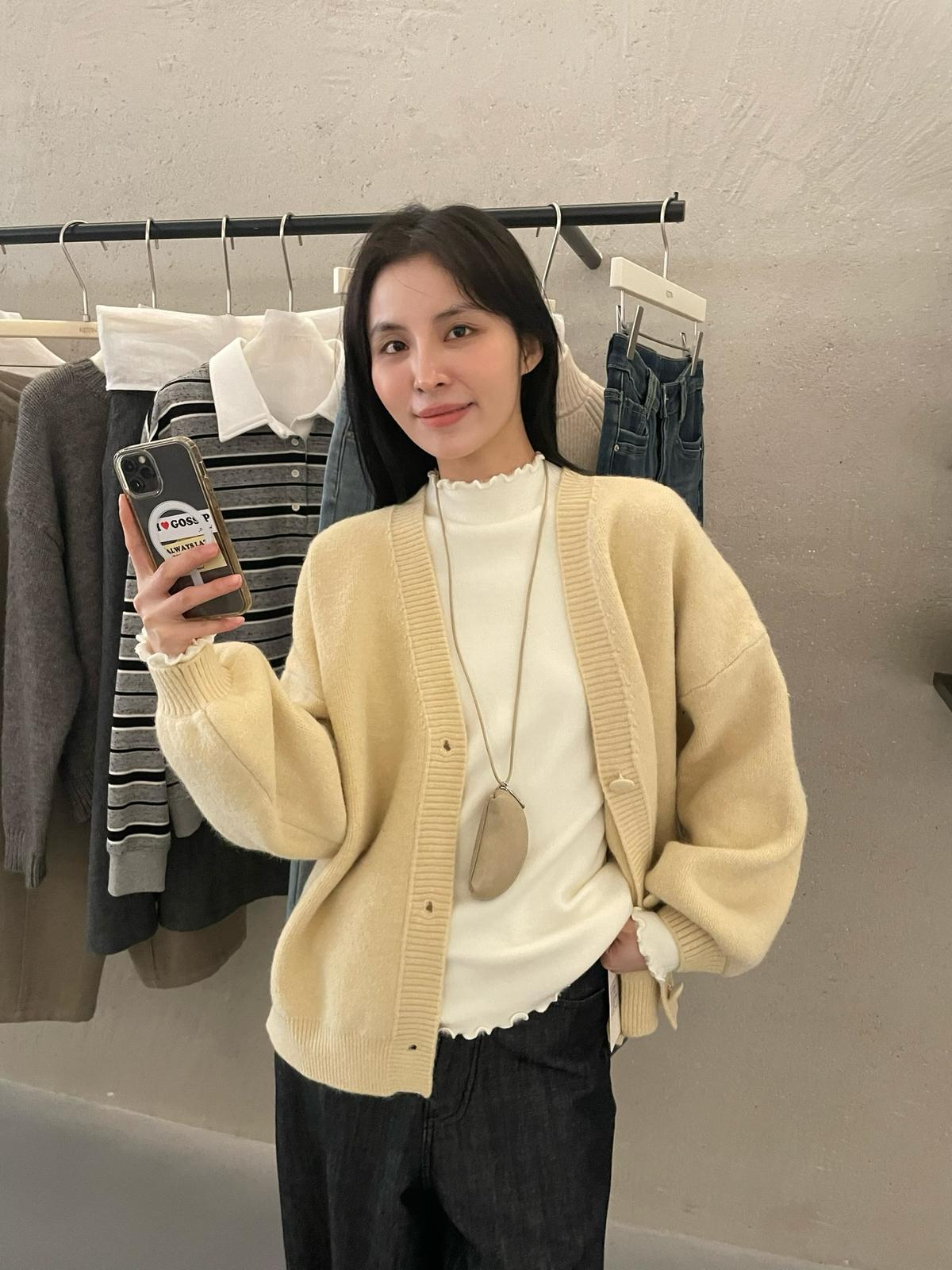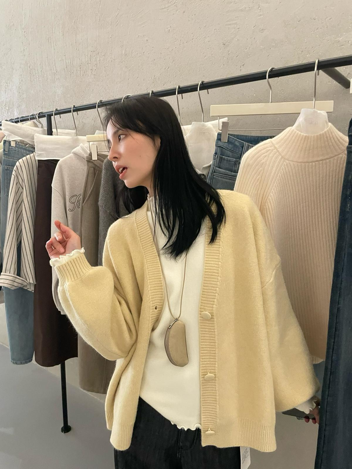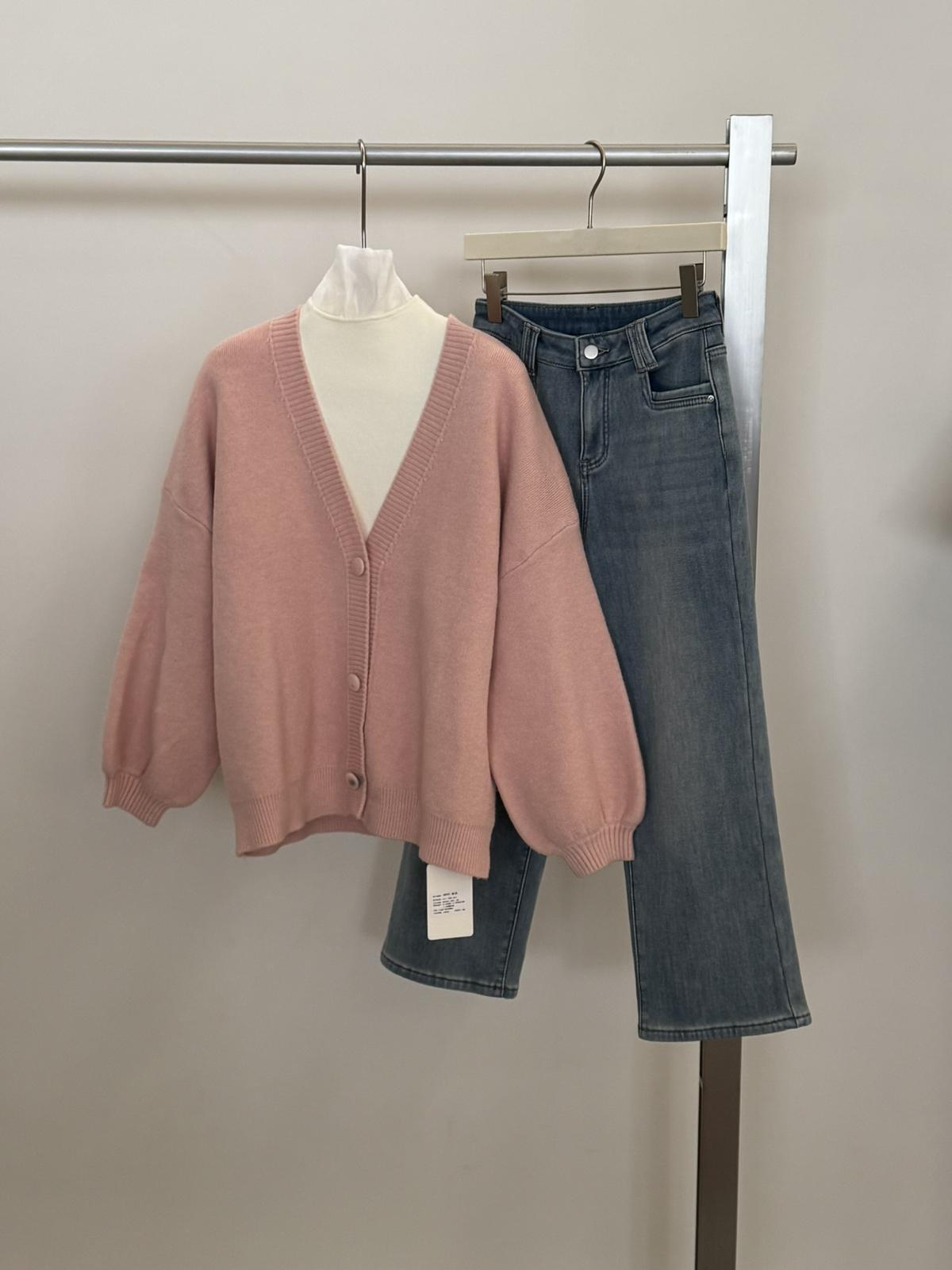 3. 【C8318】韓系多巴胺加厚包扣v領開衫保暖毛衣