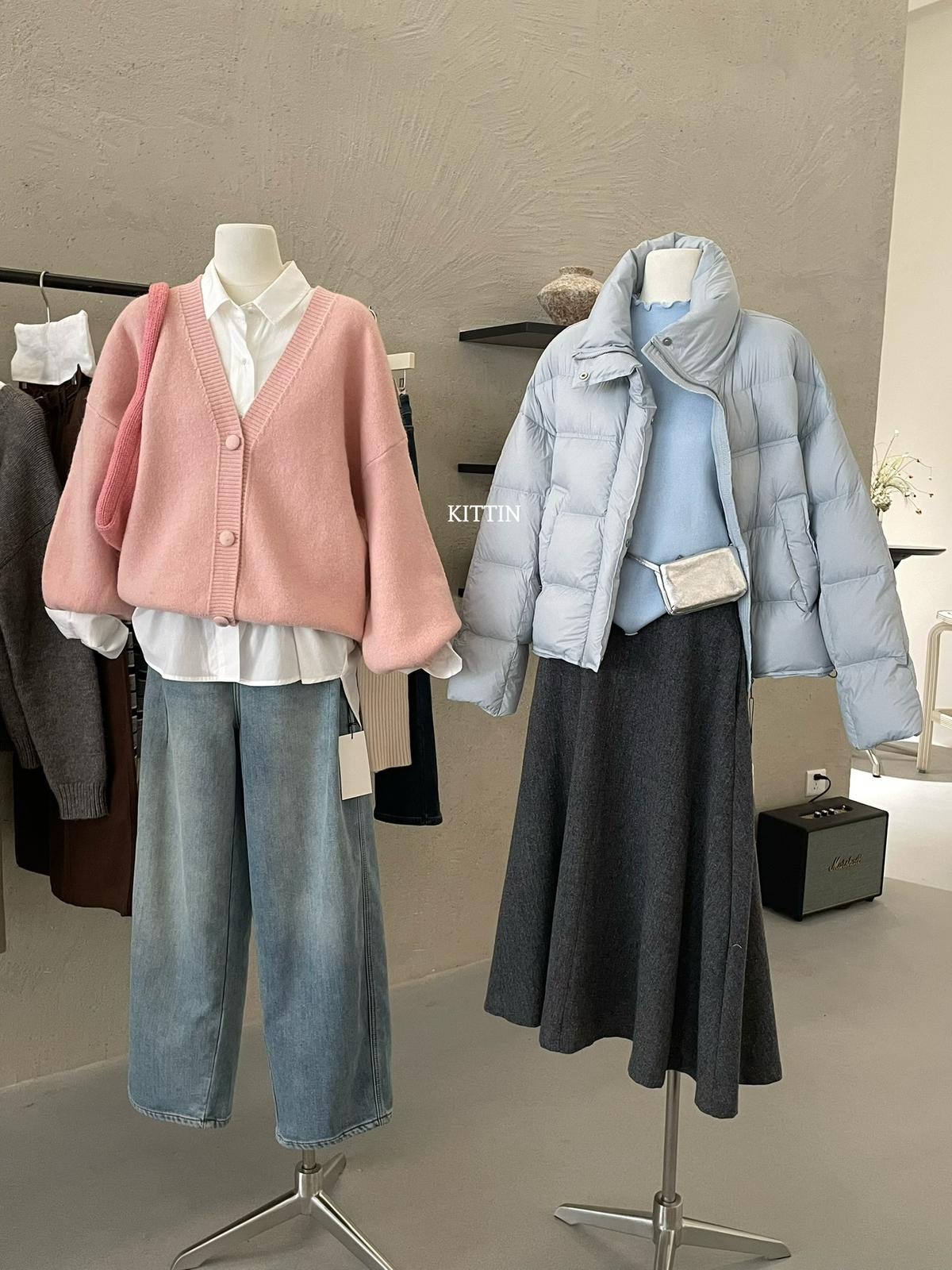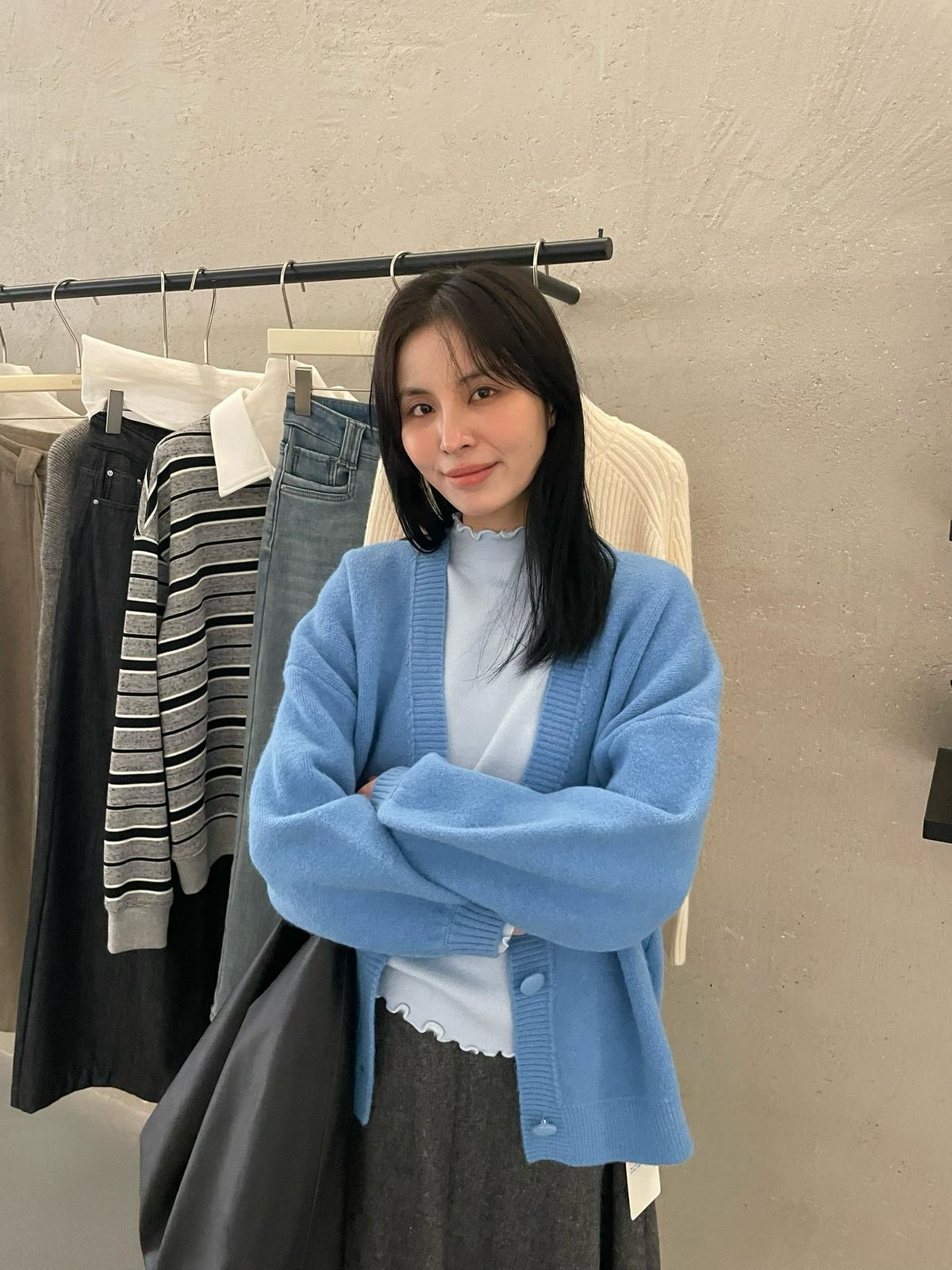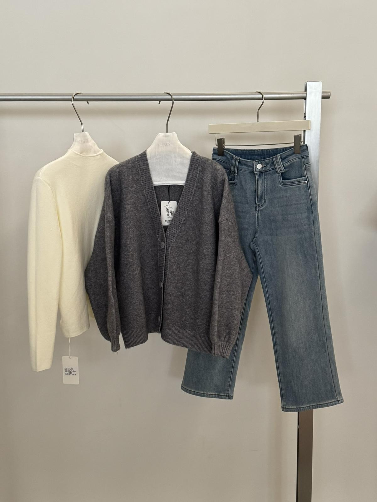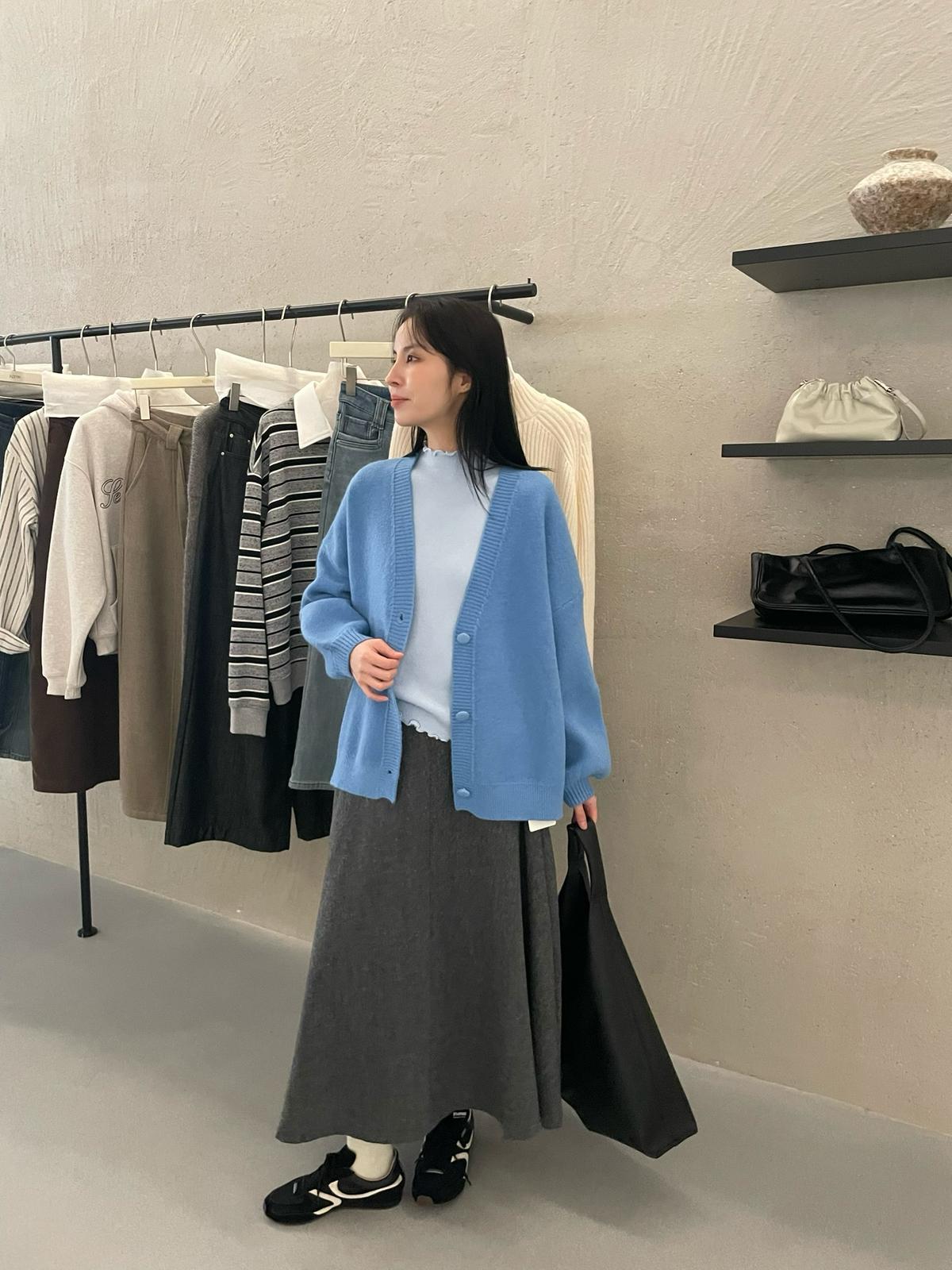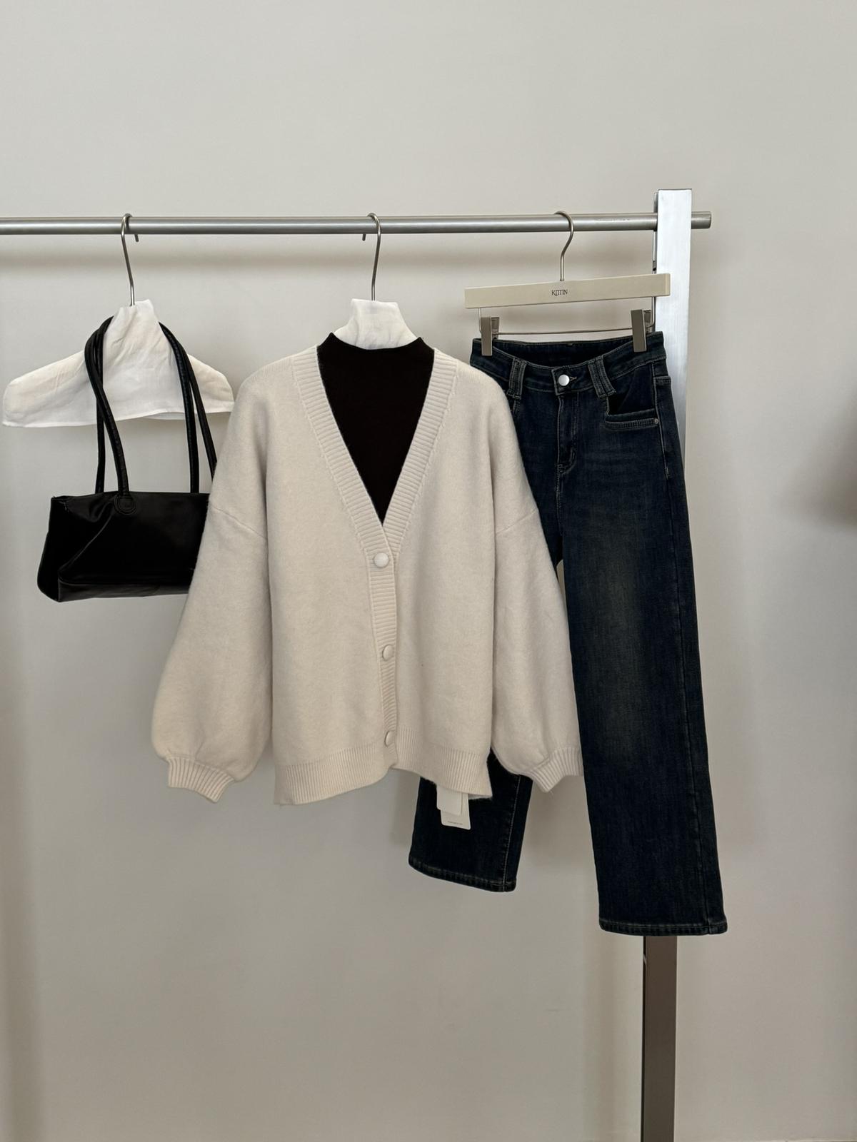 3. 【C8318】韓系多巴胺加厚包扣v領開衫保暖毛衣