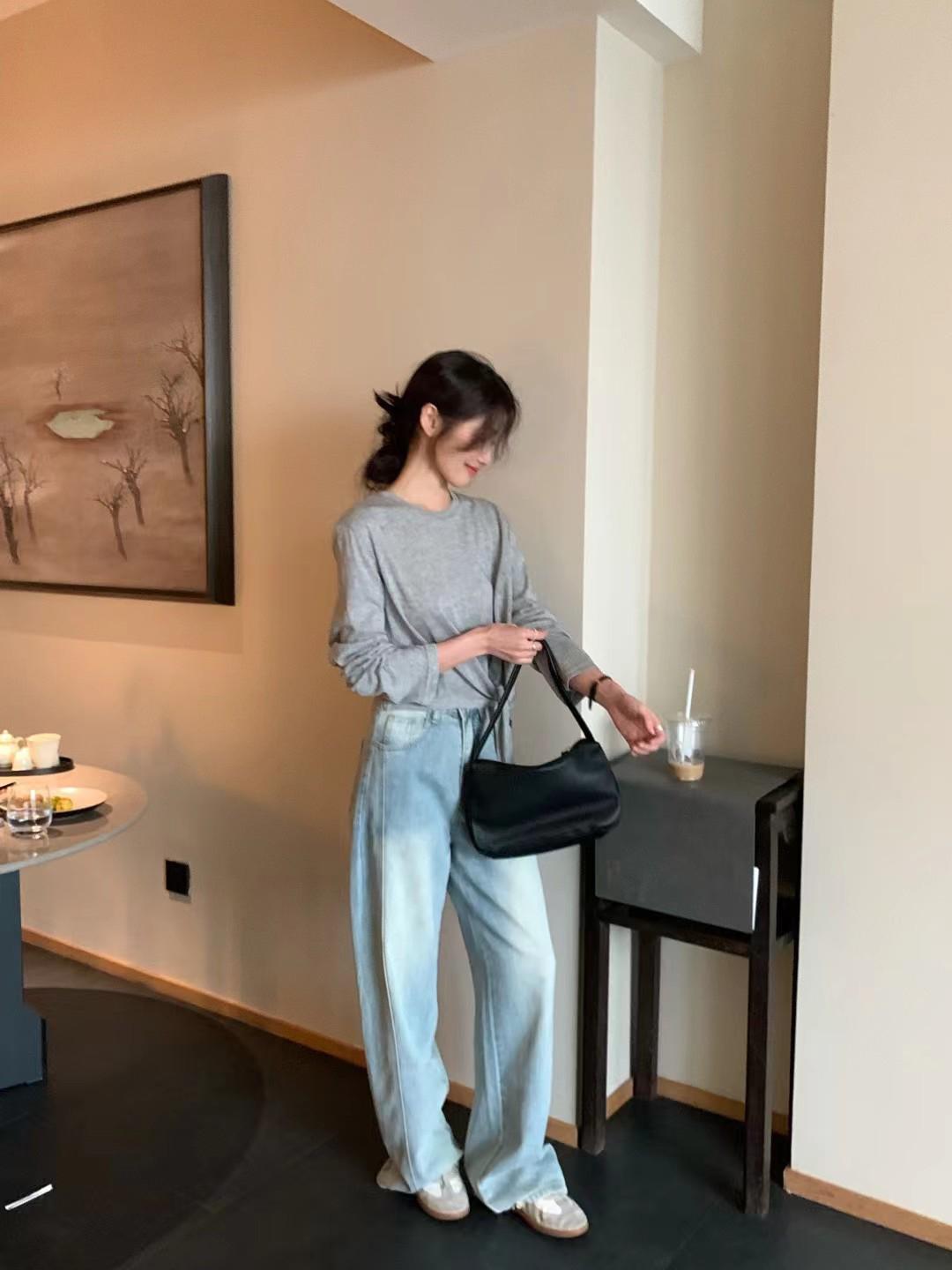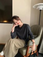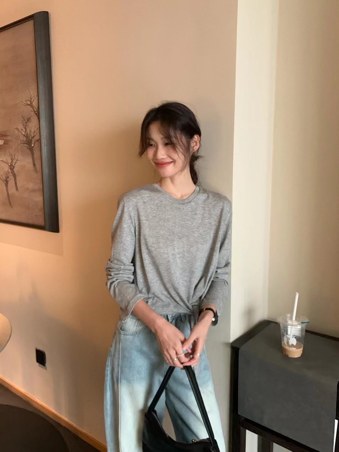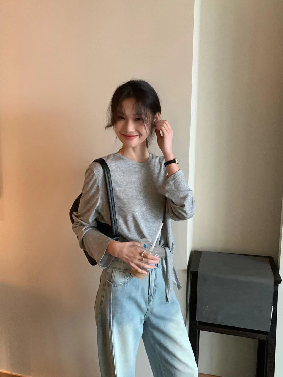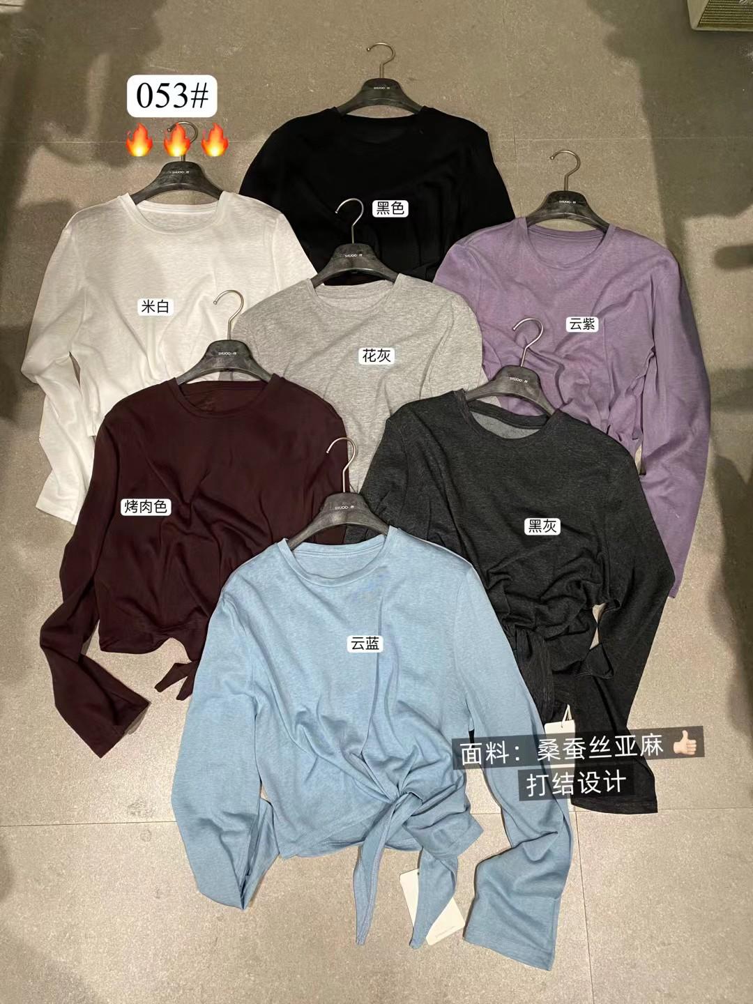 【C8326】設計感慵懶風桑蠶絲亞麻混紡綁帶長袖T恤