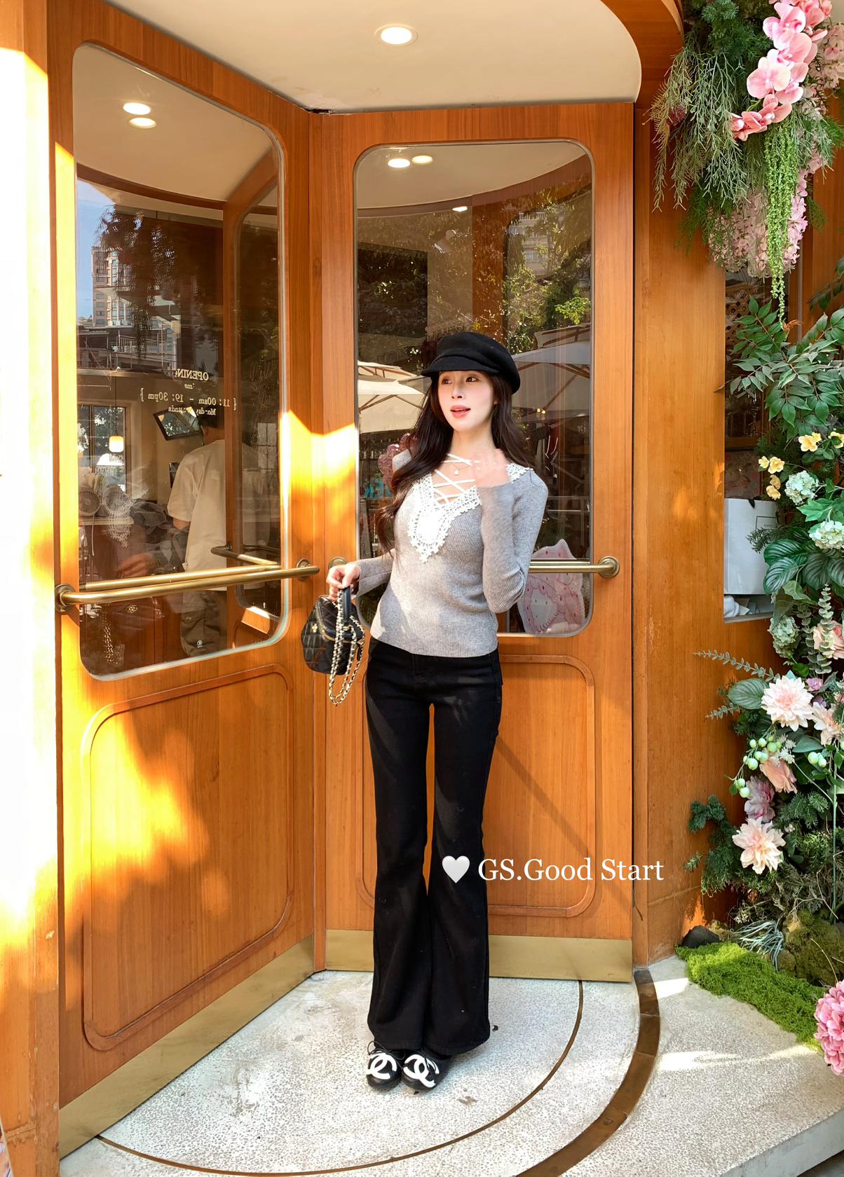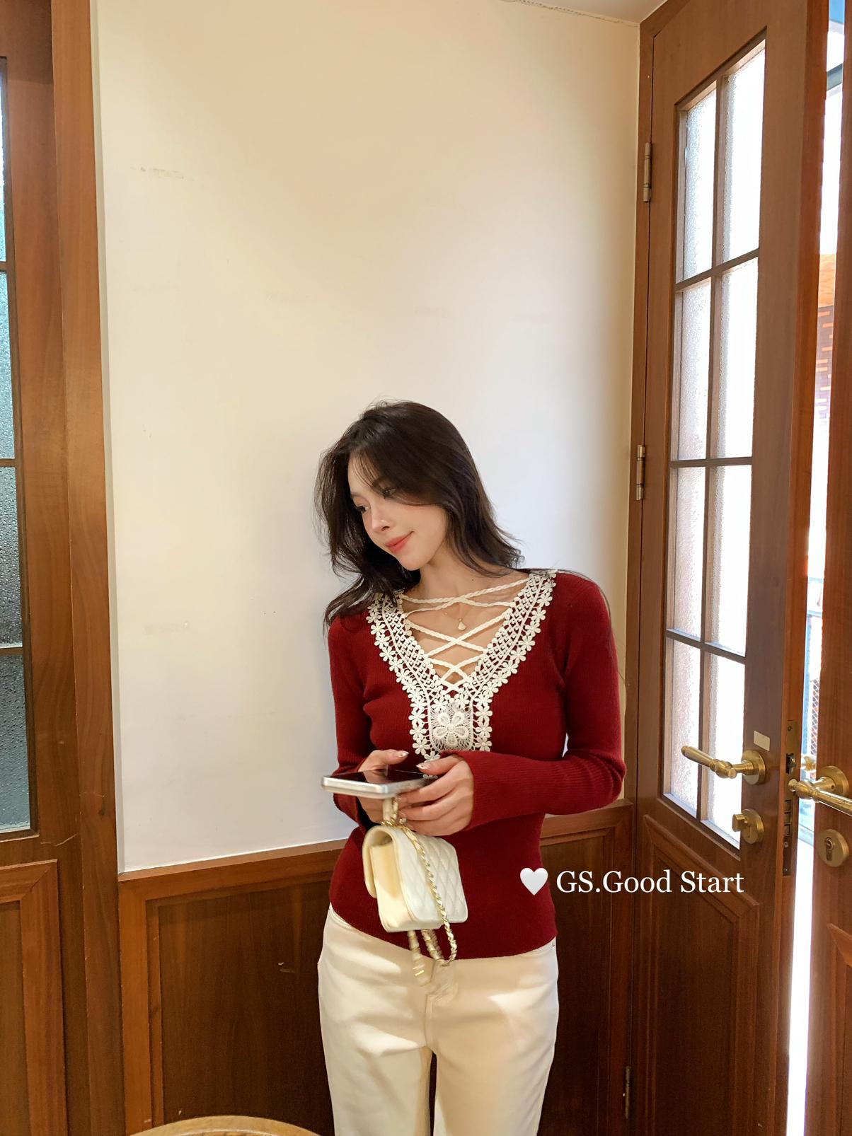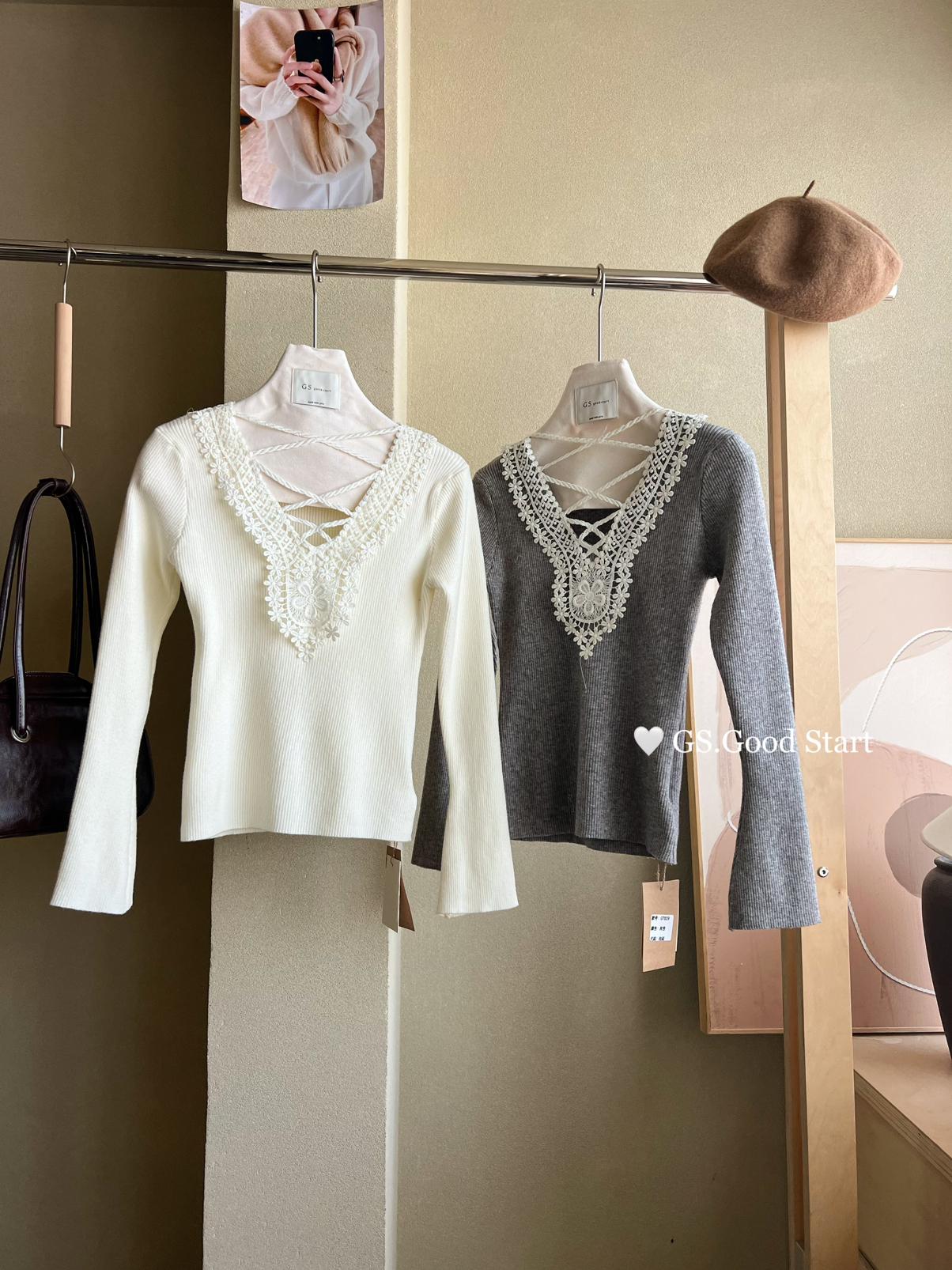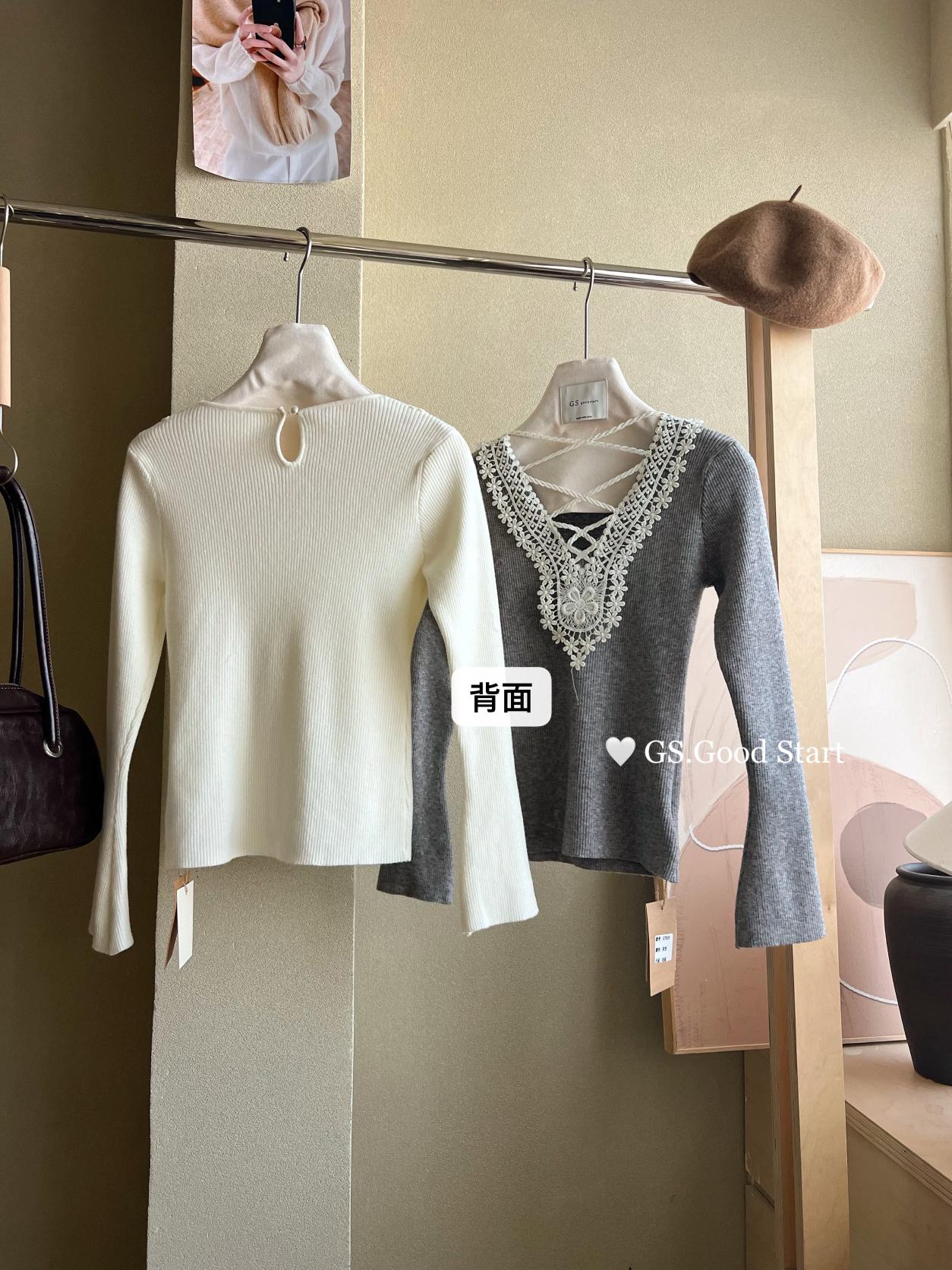 3. 【C8327】瀰漫南法浪漫~心動N次!太嬌了~冬氣質純欲刺繡蕾絲設計感針織衫