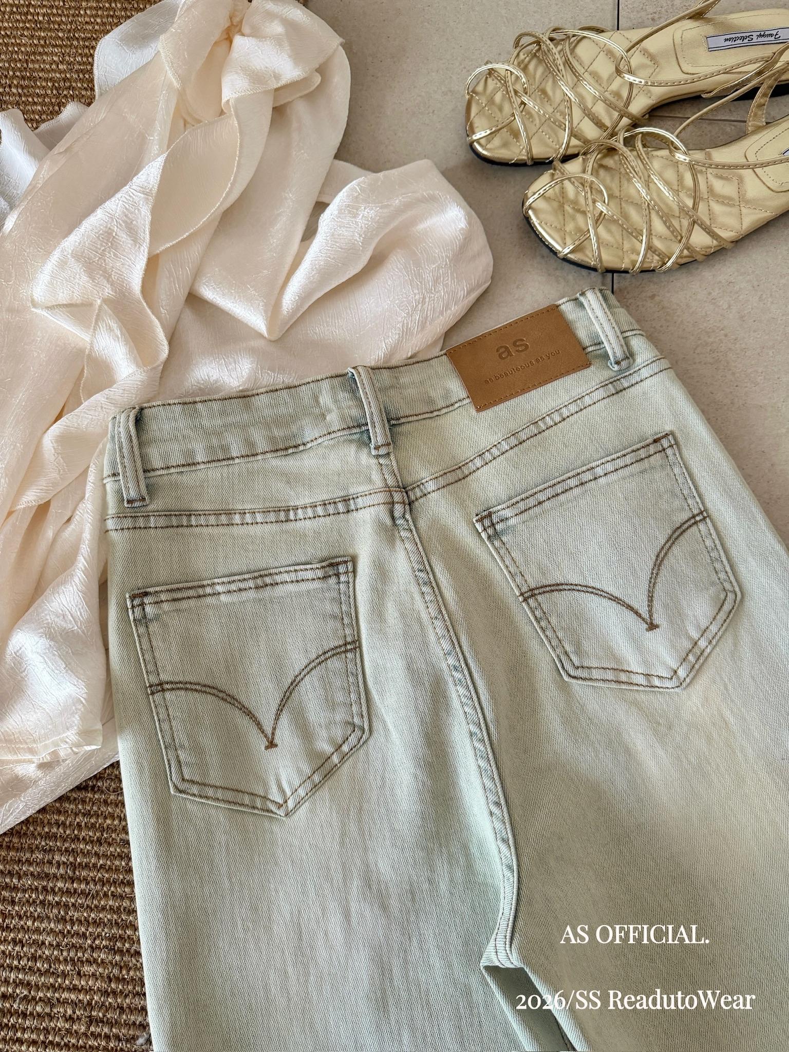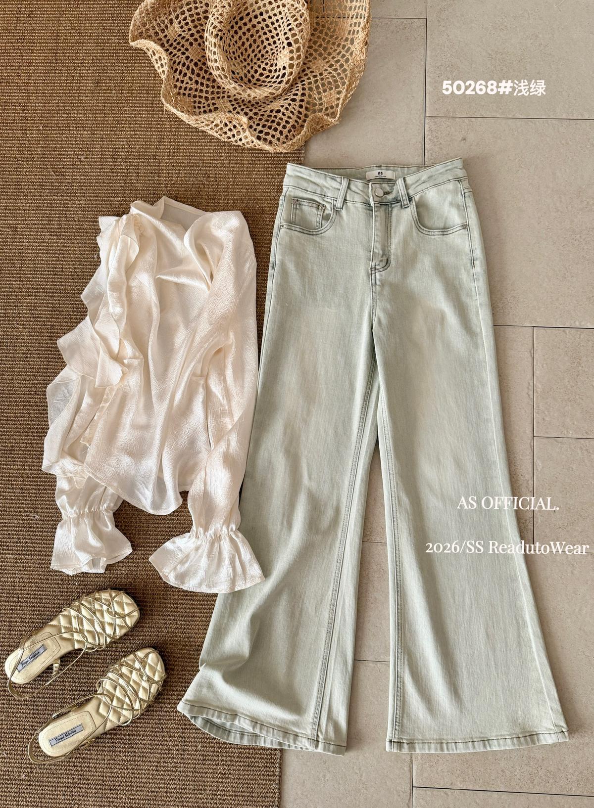 【C8658】一鍵拉伸大長腿;完美腰臀比&春日限定色水洗微喇牛仔褲