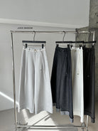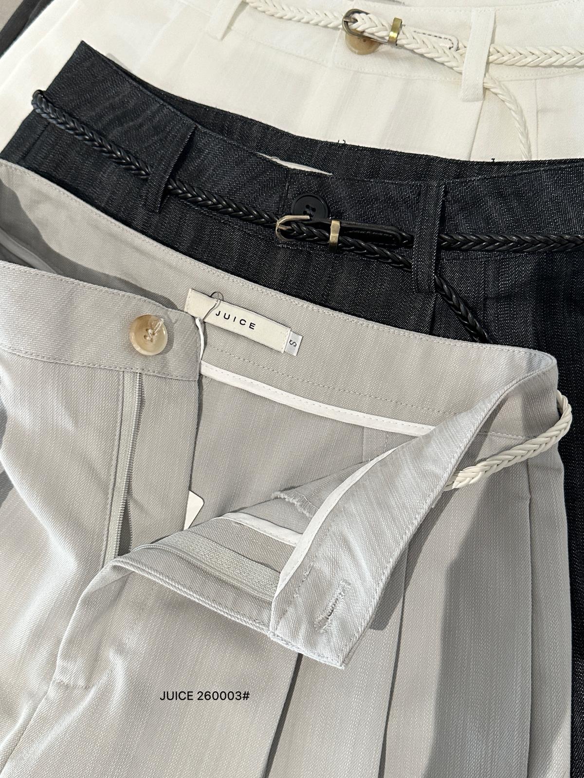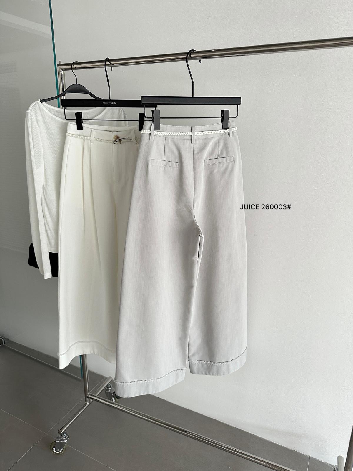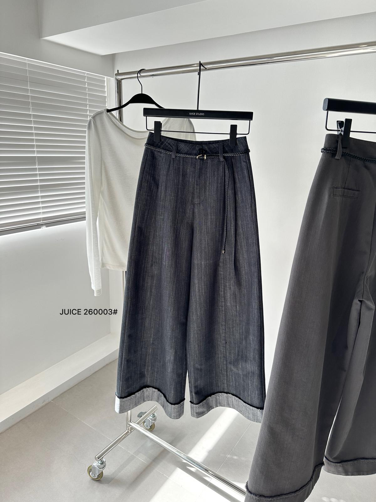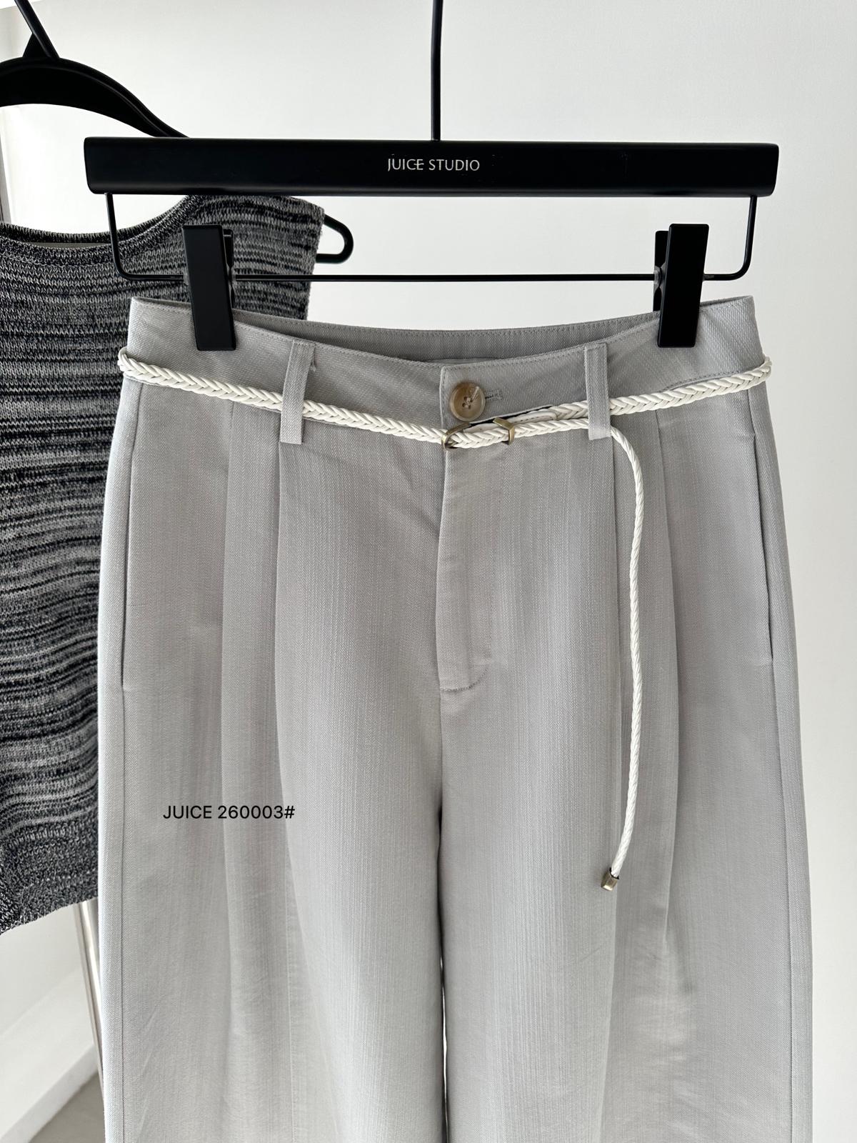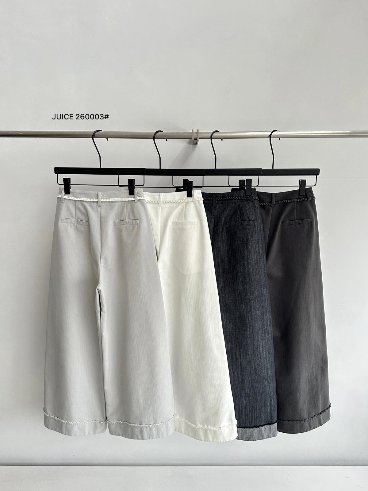 【C8660】韓系通勤毛邊闊腿休閒褲(配腰帶)