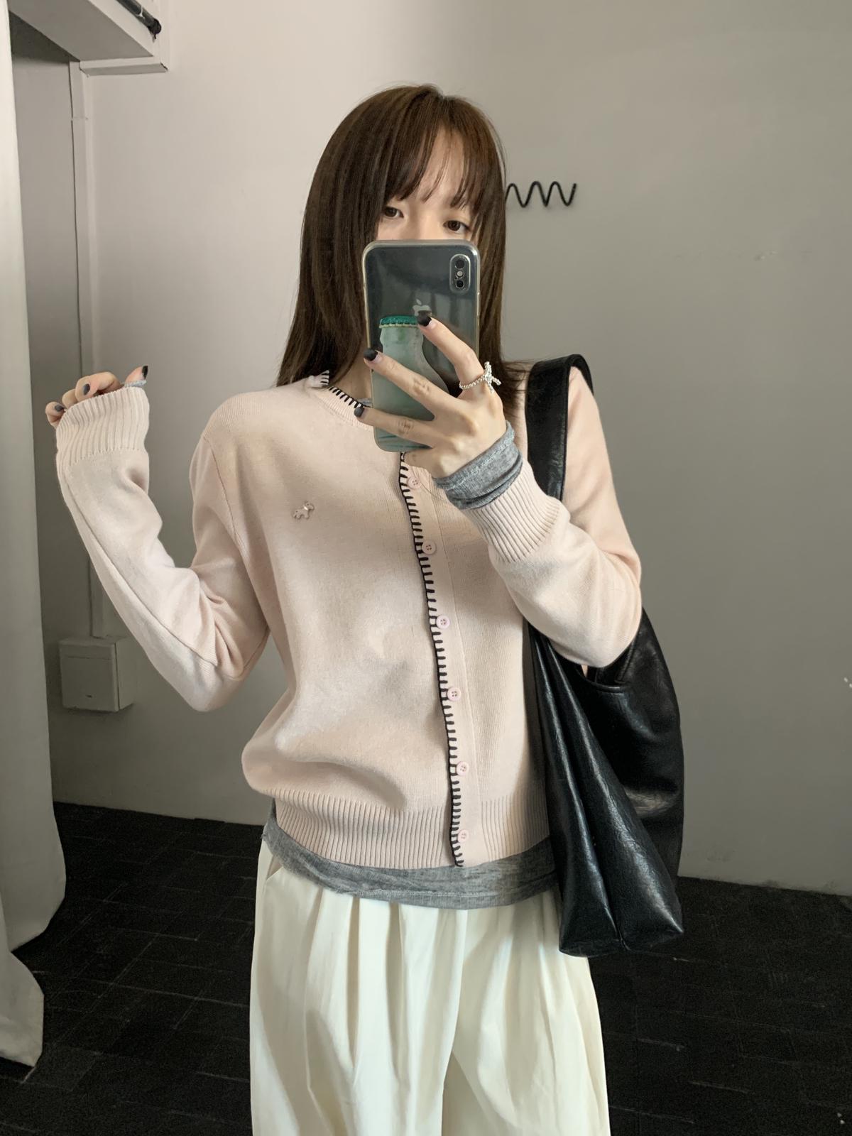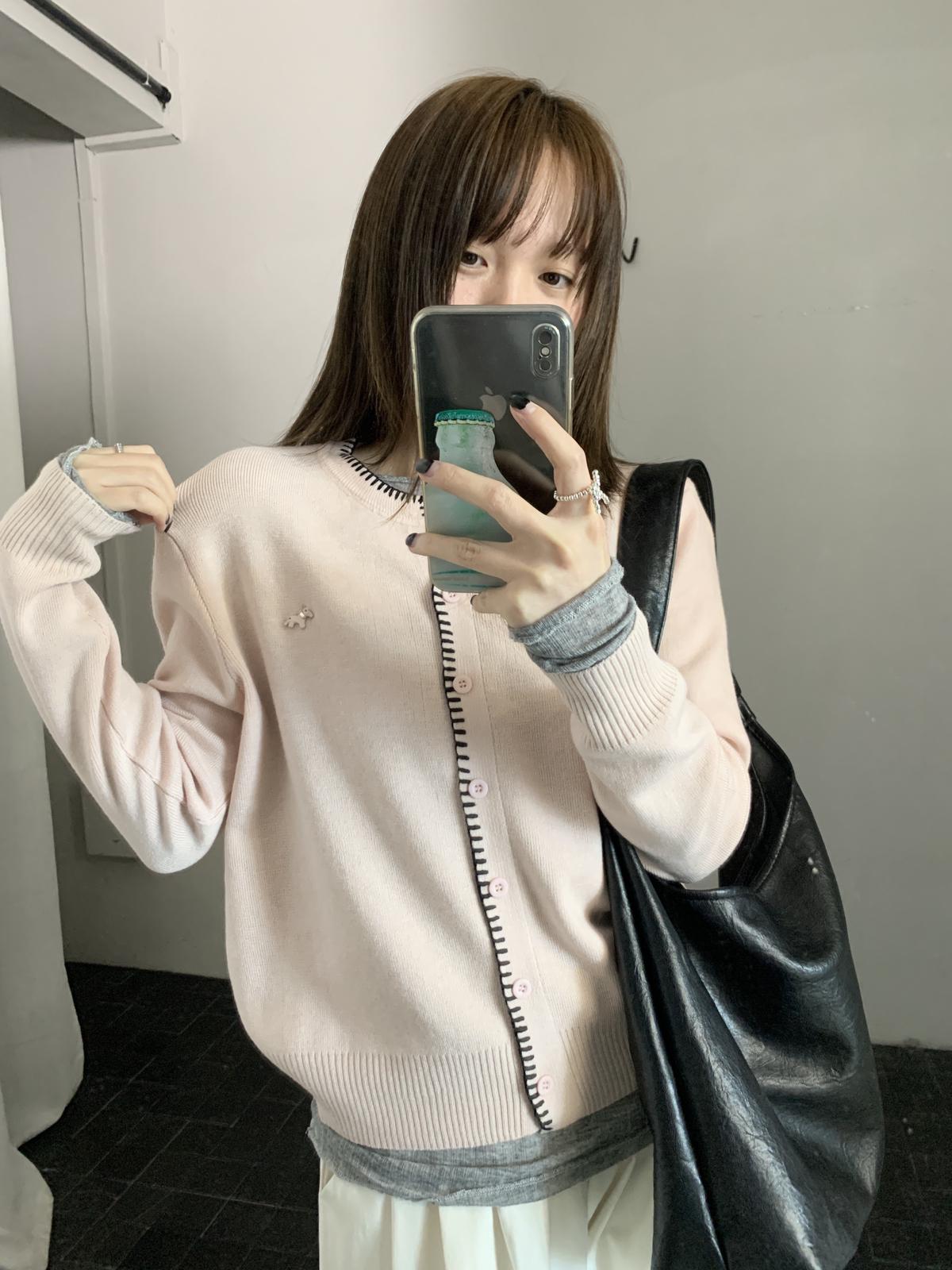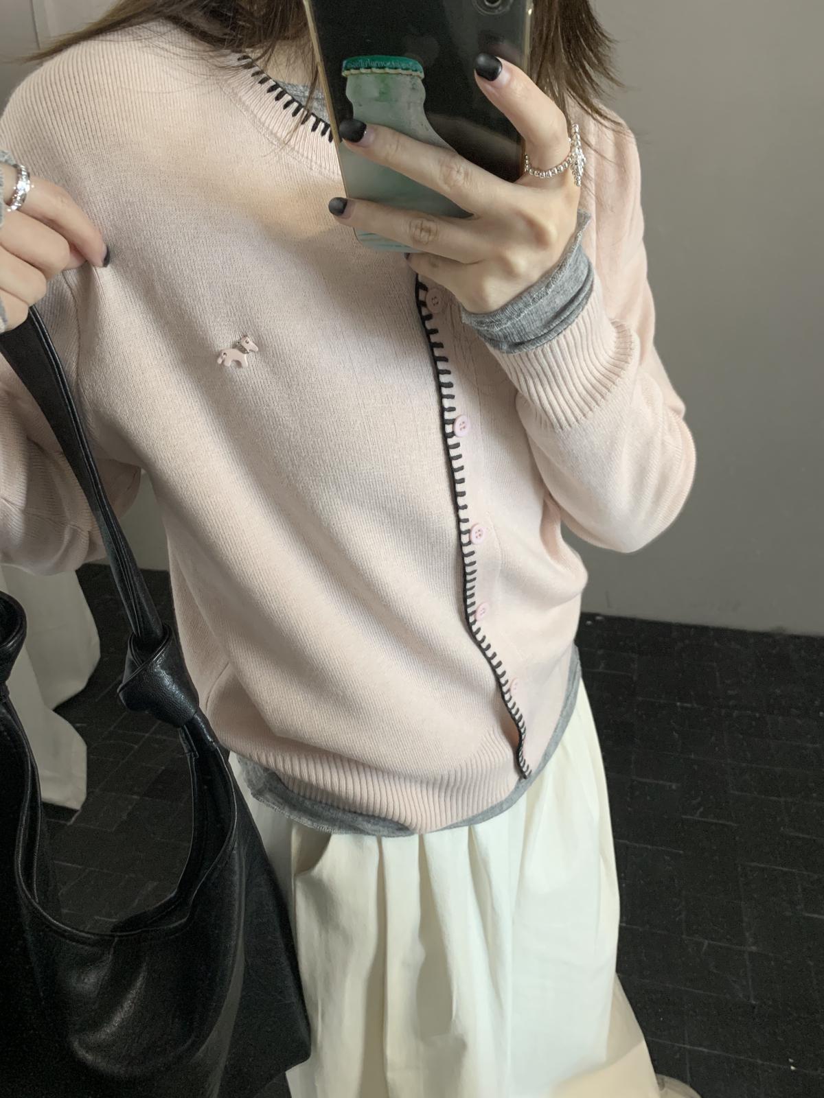 【C8662】簡約寬鬆百搭羊毛小馬針織開衫
