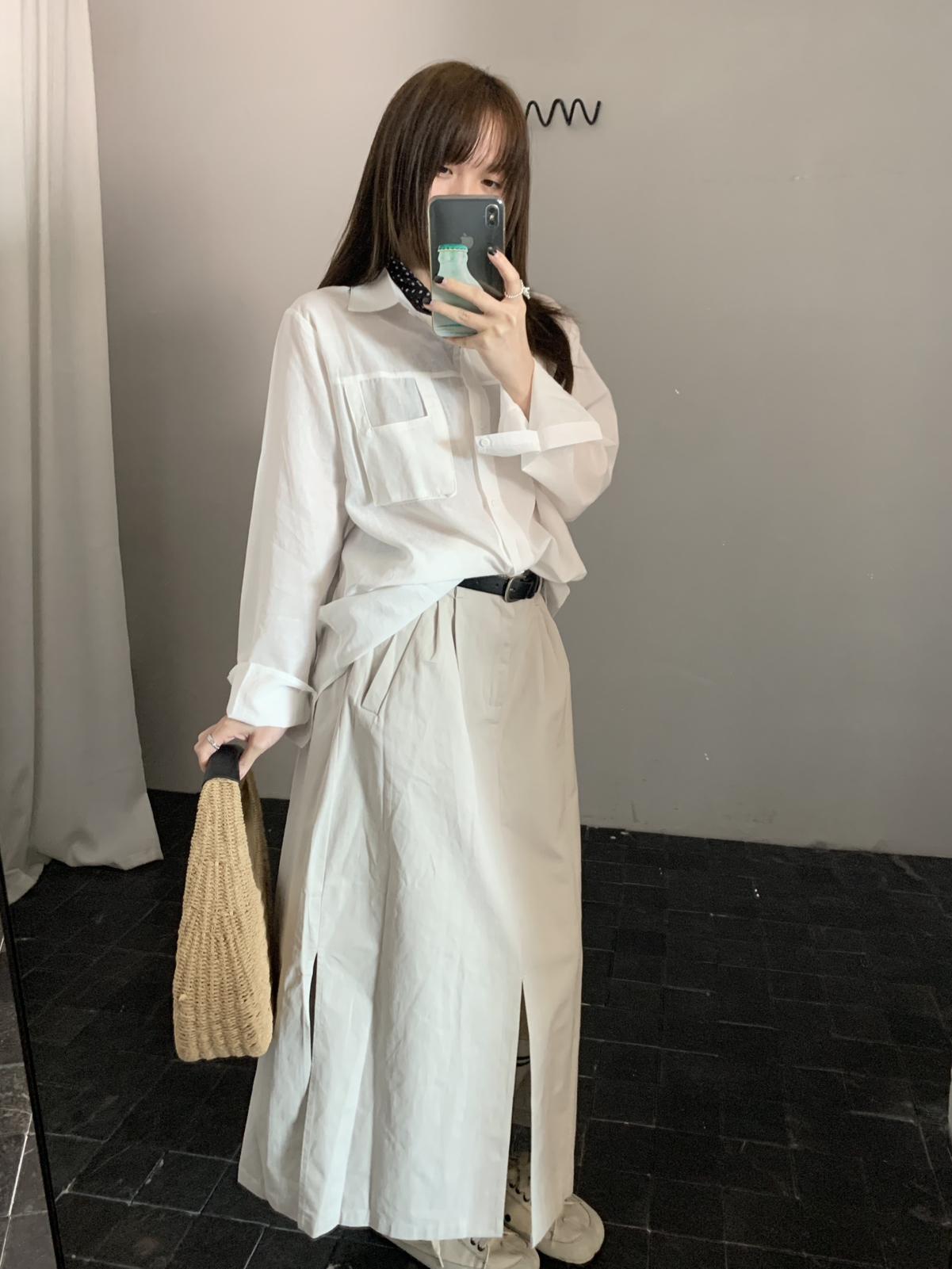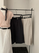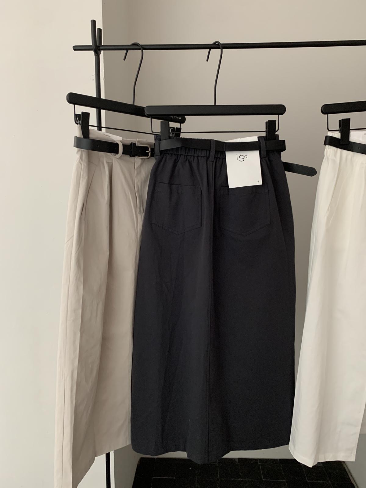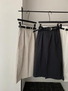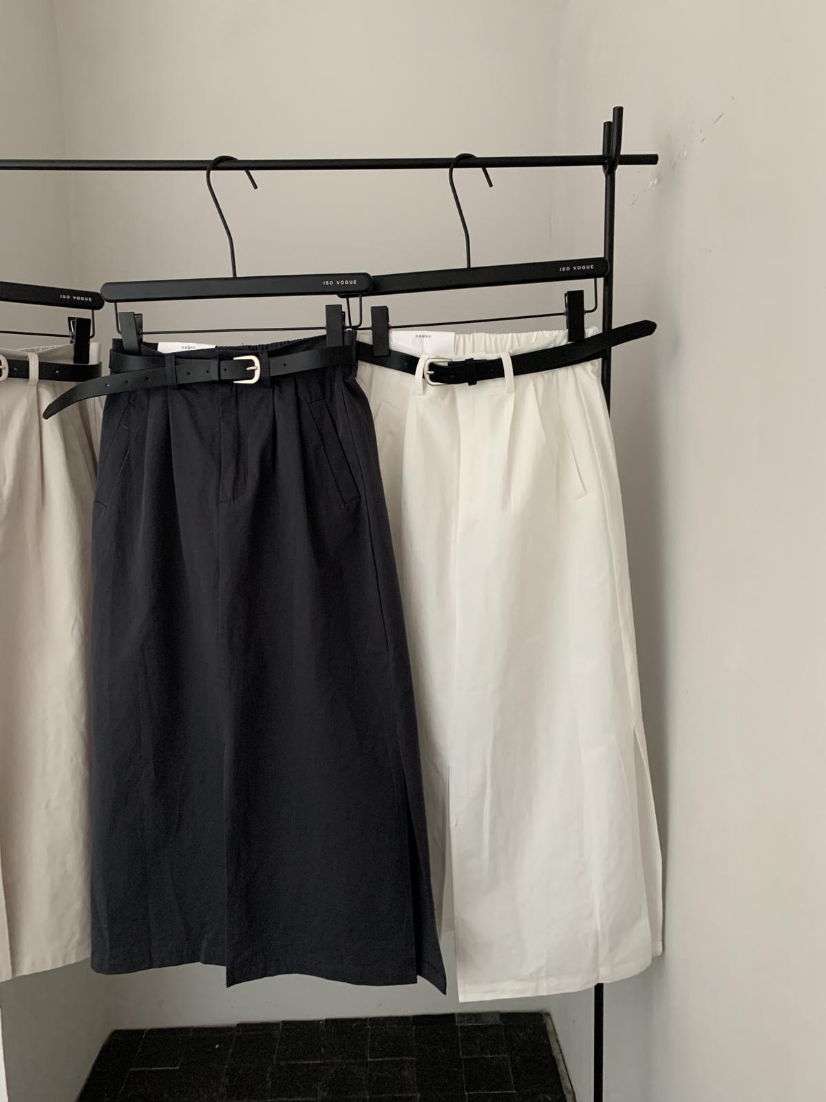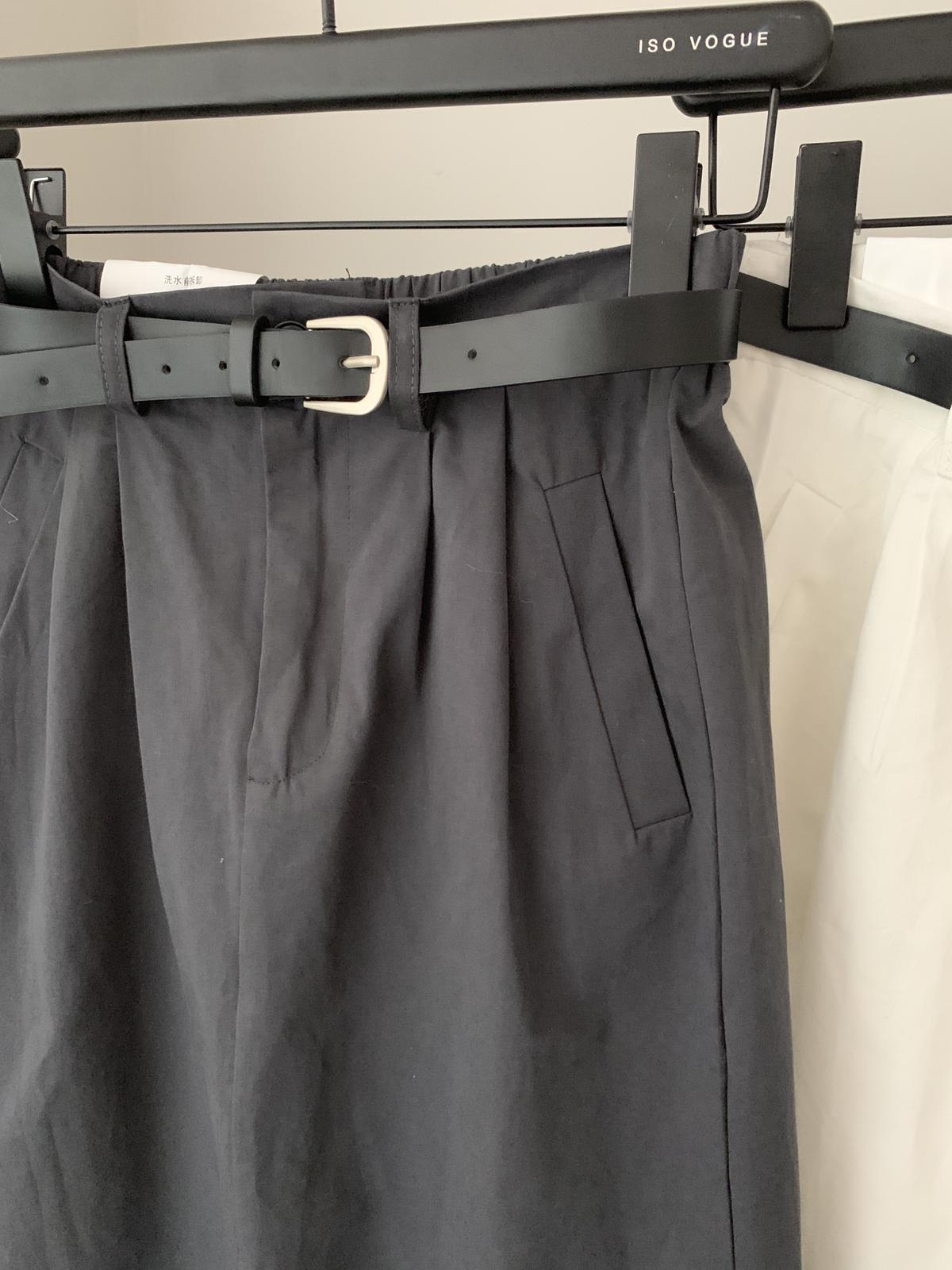 【C8663】簡約寬鬆鬆緊下開叉超百搭半身裙(配腰帶)