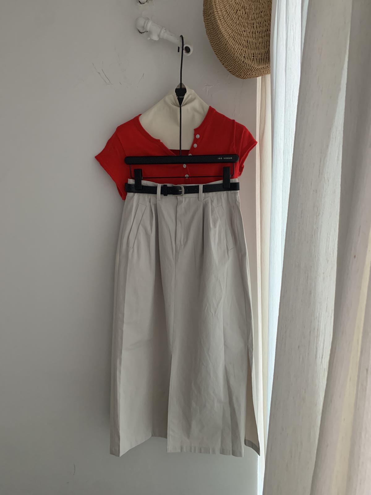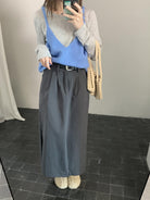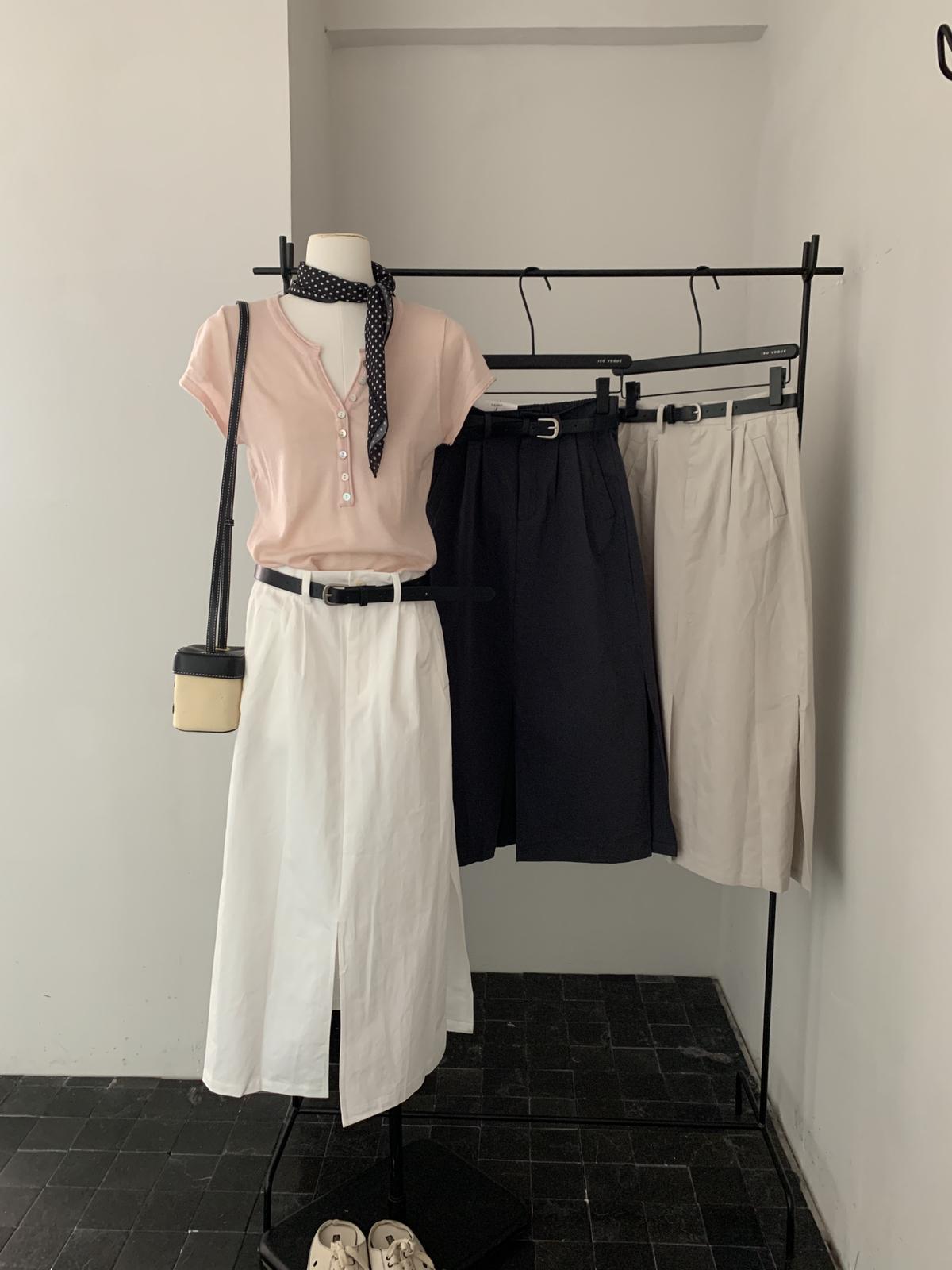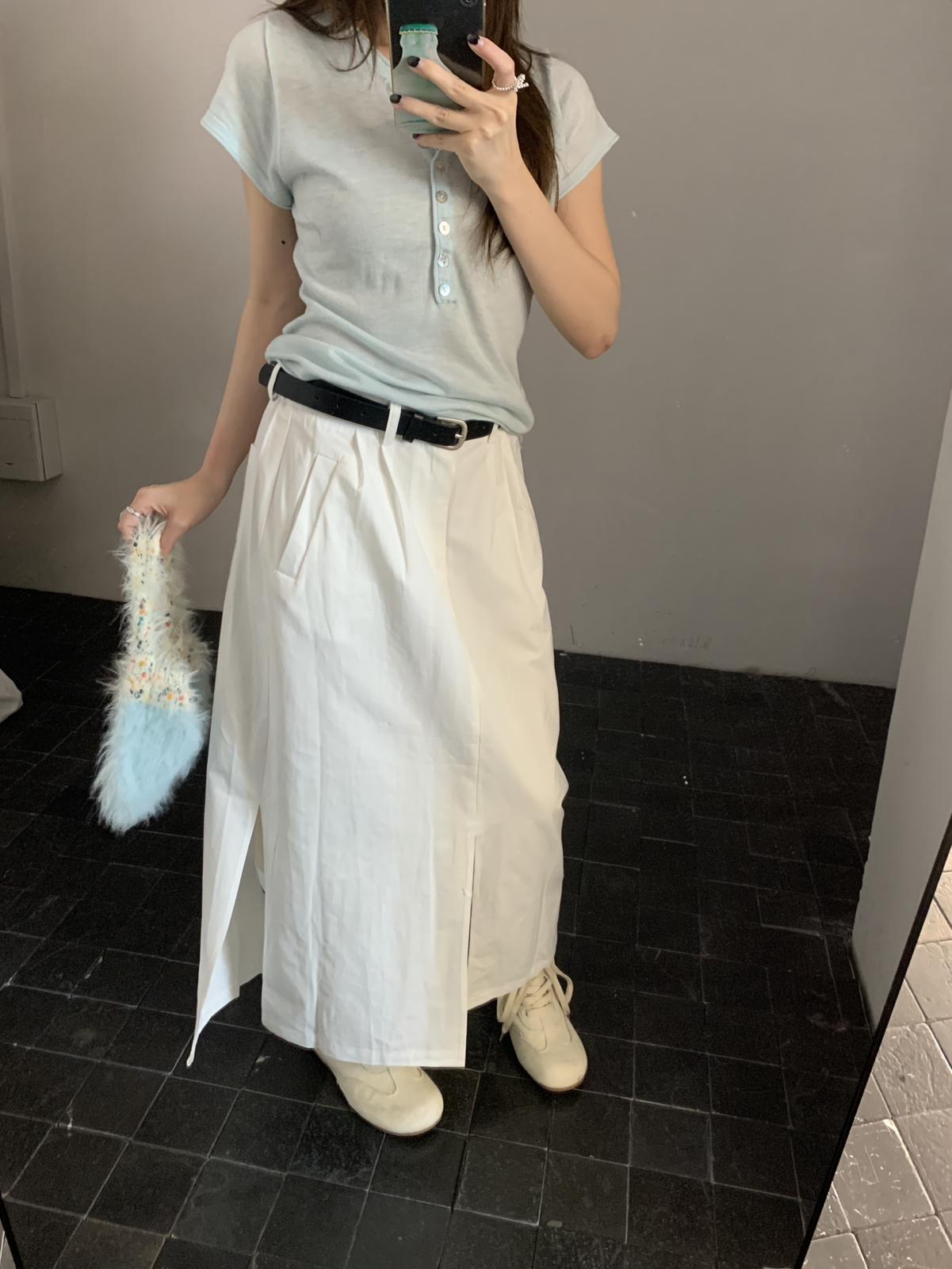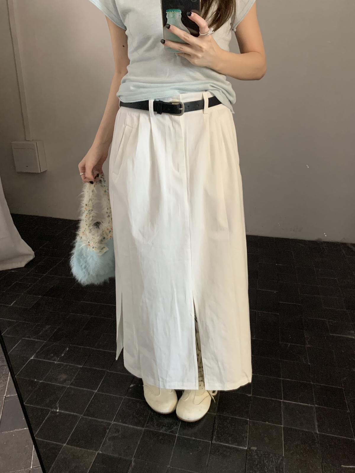 【C8663】簡約寬鬆鬆緊下開叉超百搭半身裙(配腰帶)