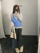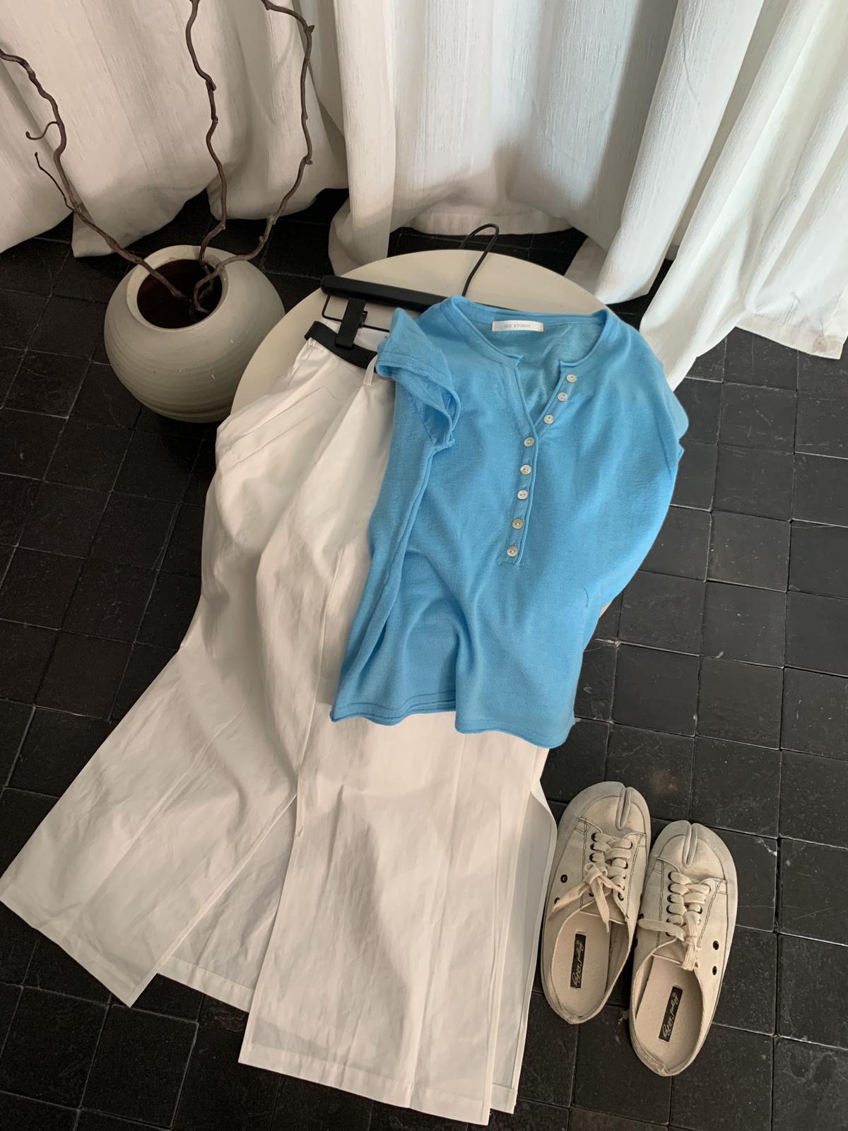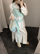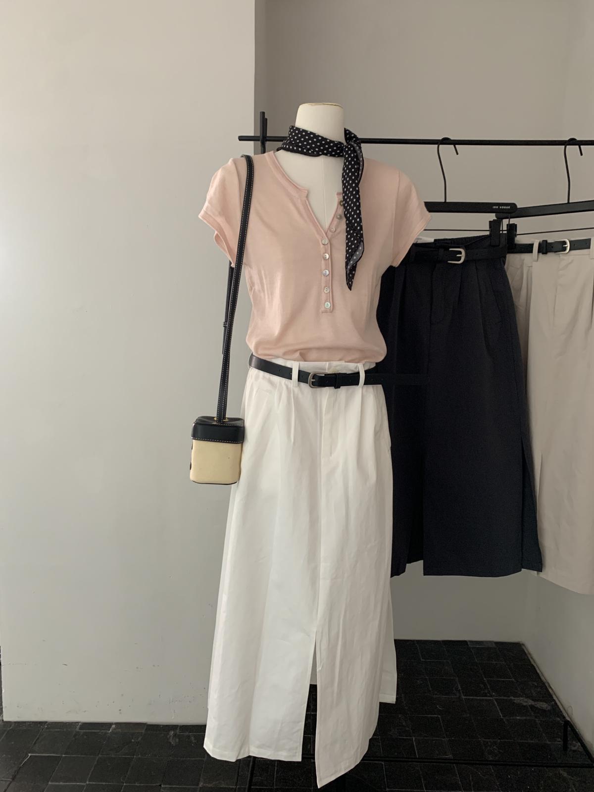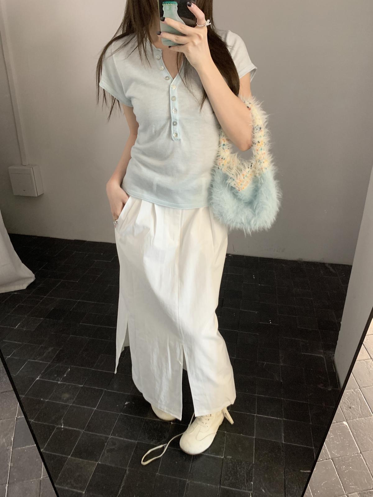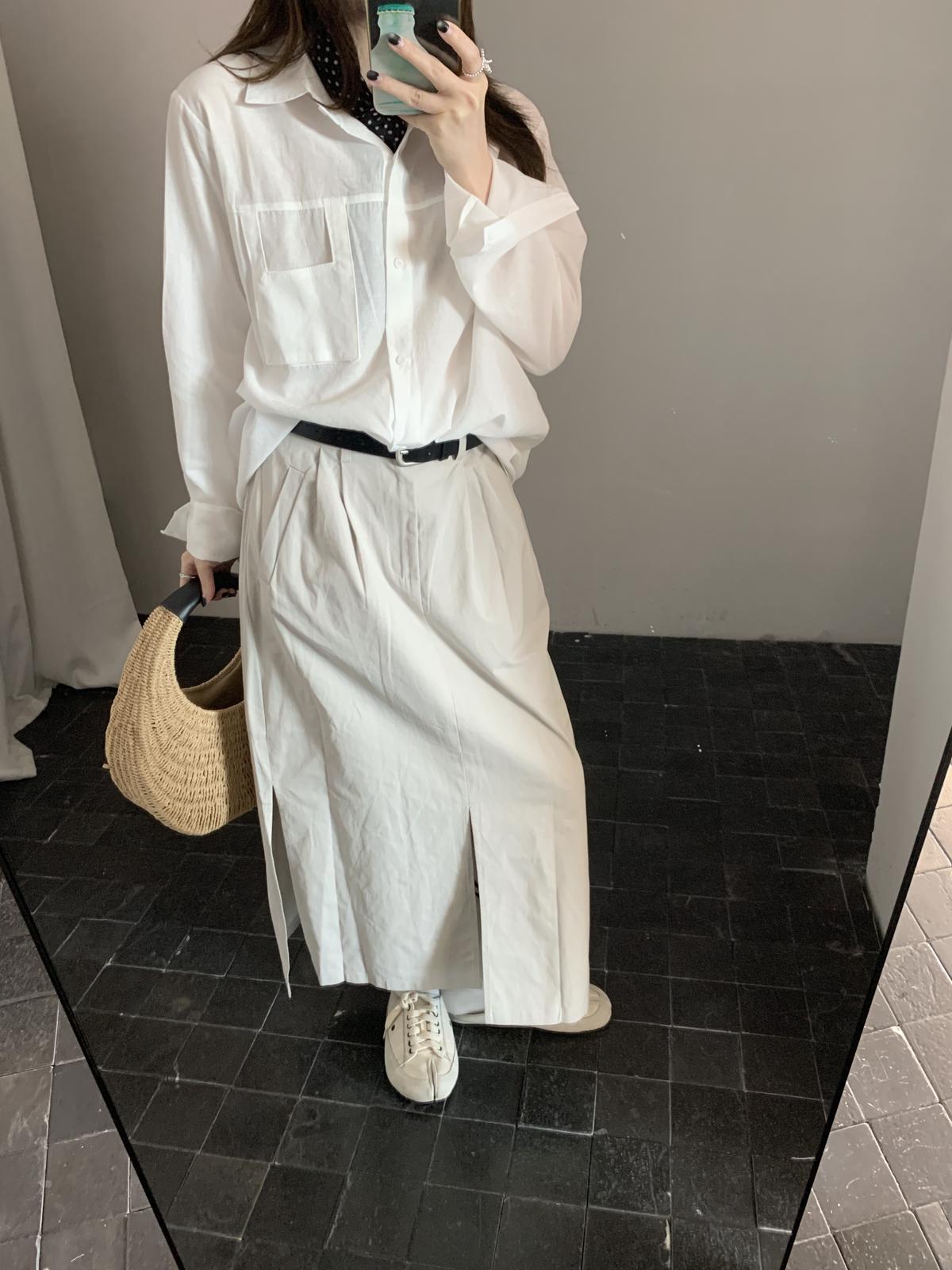【C8663】簡約寬鬆鬆緊下開叉超百搭半身裙(配腰帶)