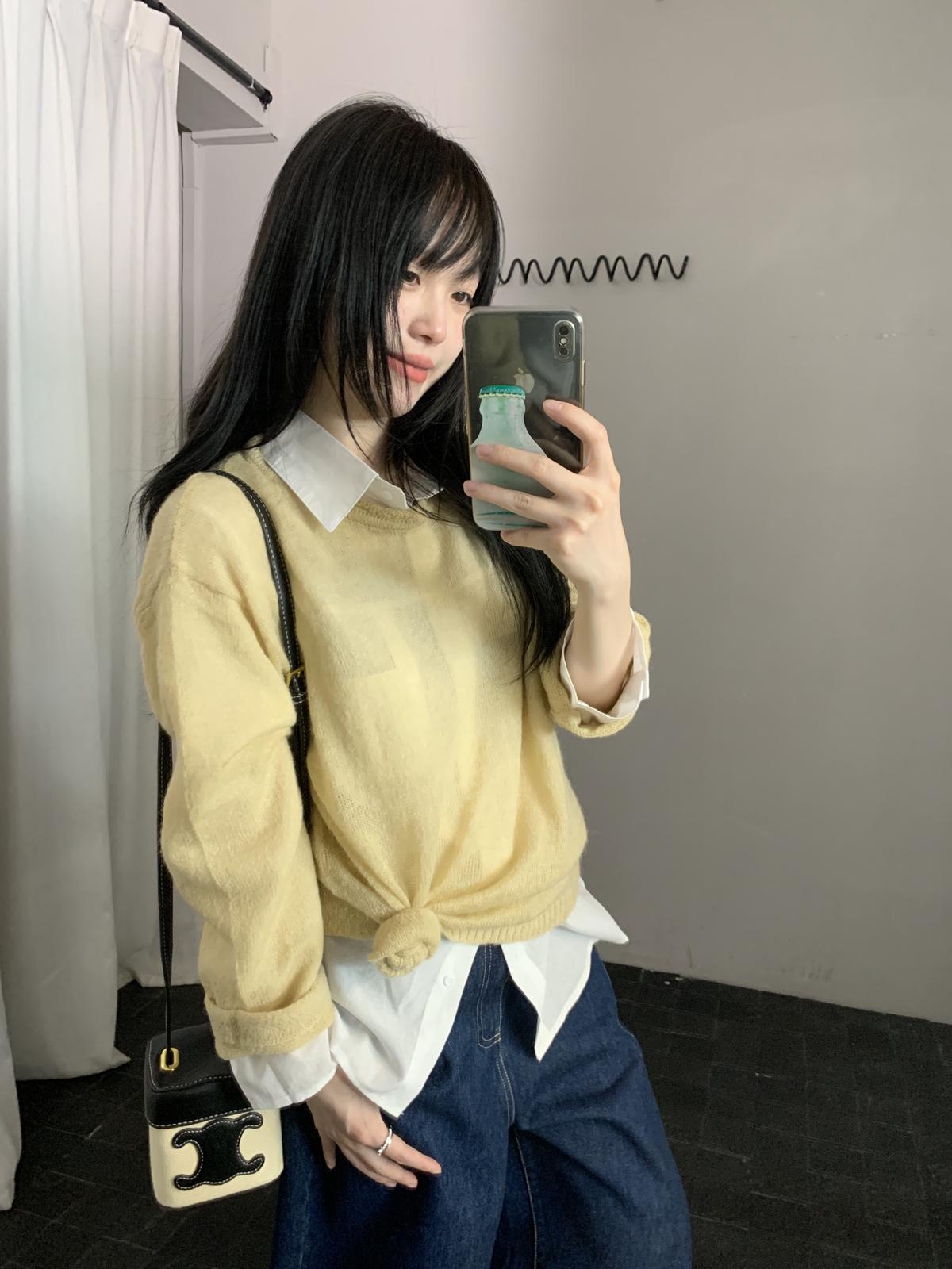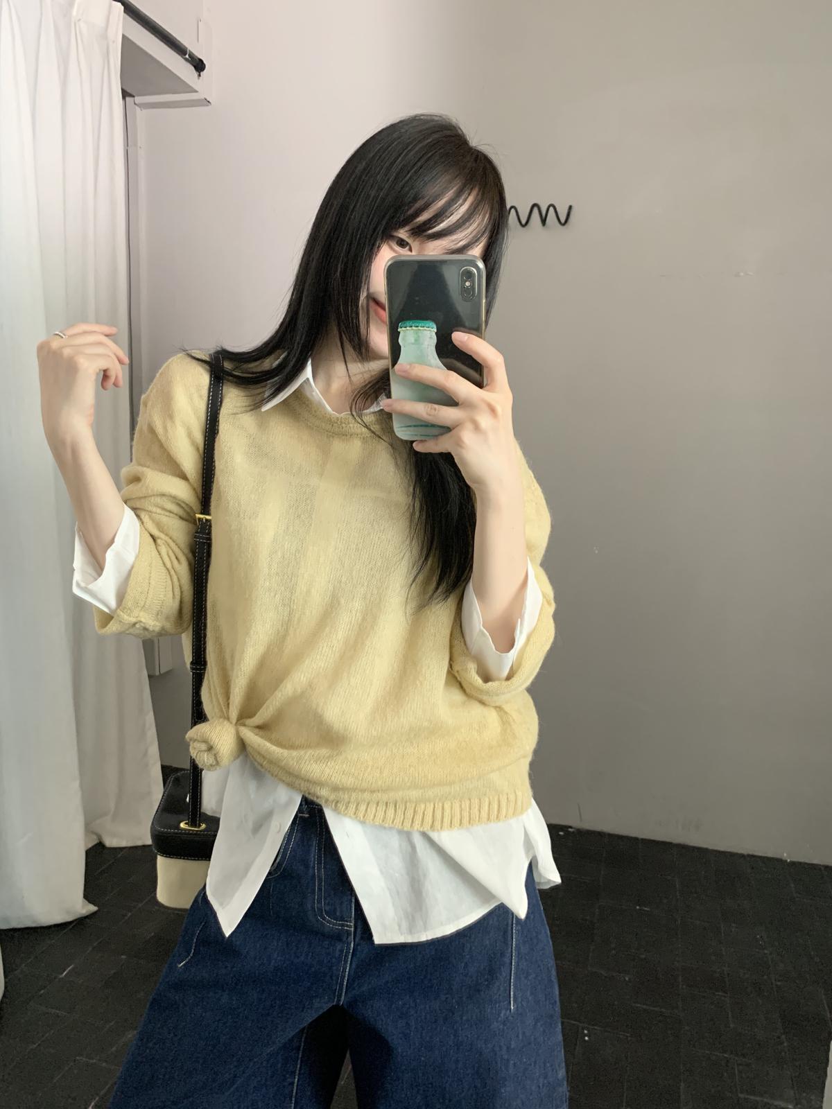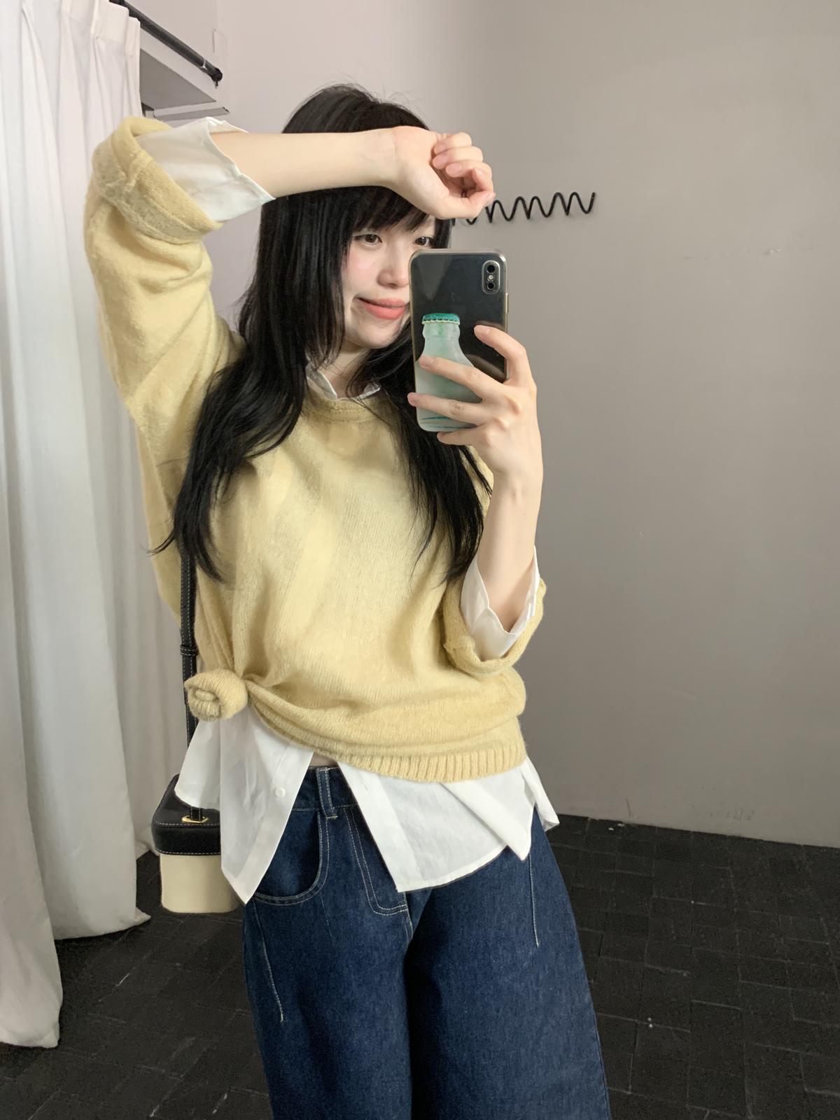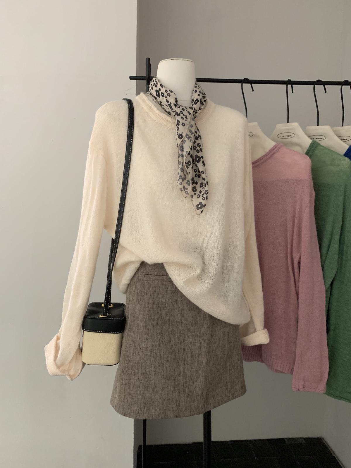 【C8664】簡約圓領慵懶寬鬆針織多色休閒上衣針織衫