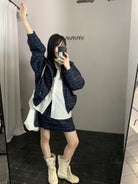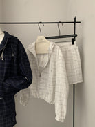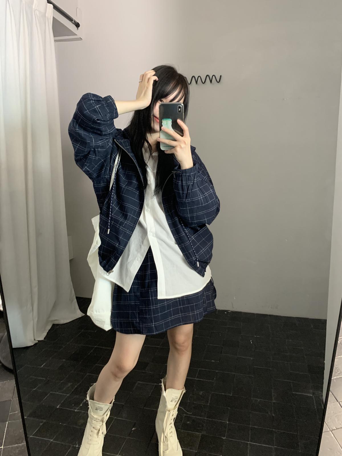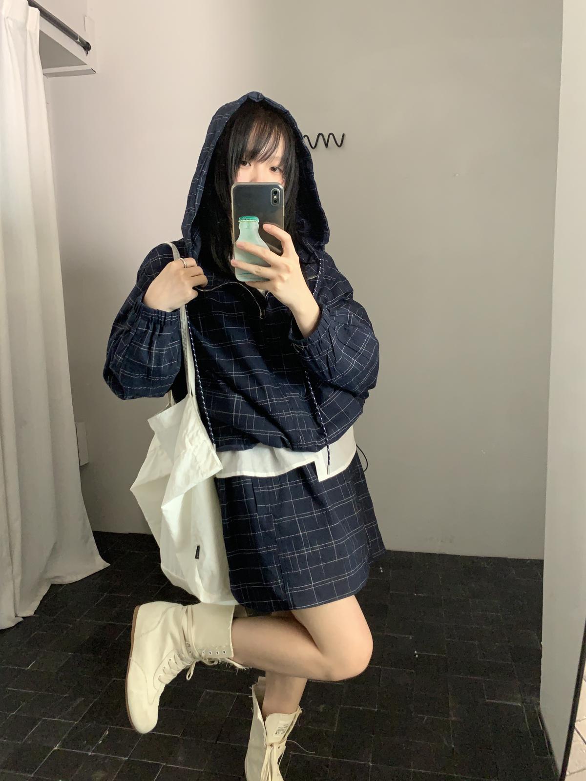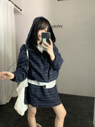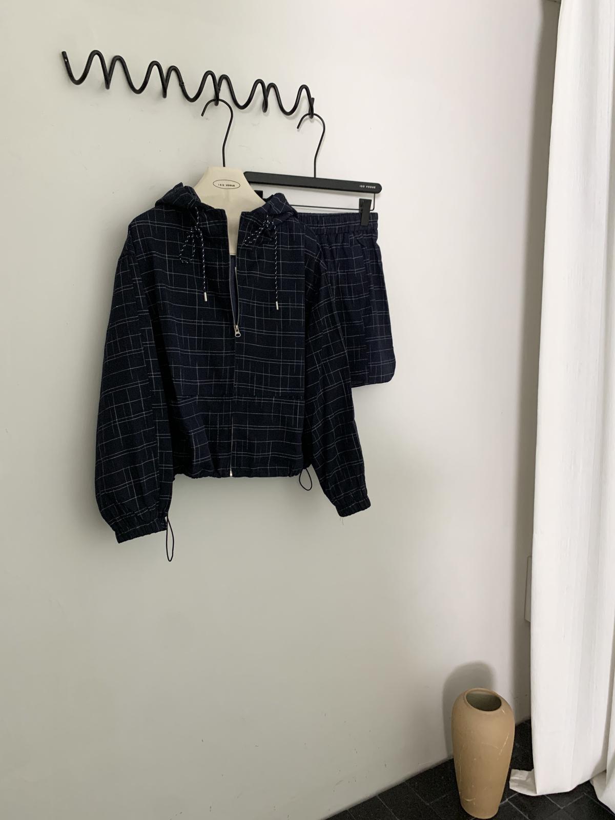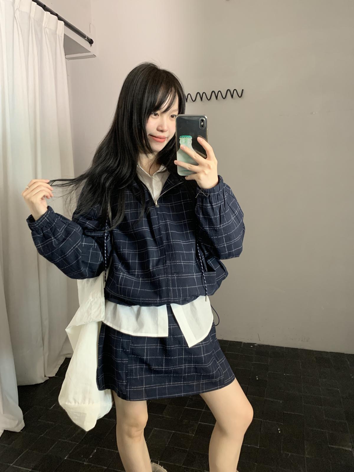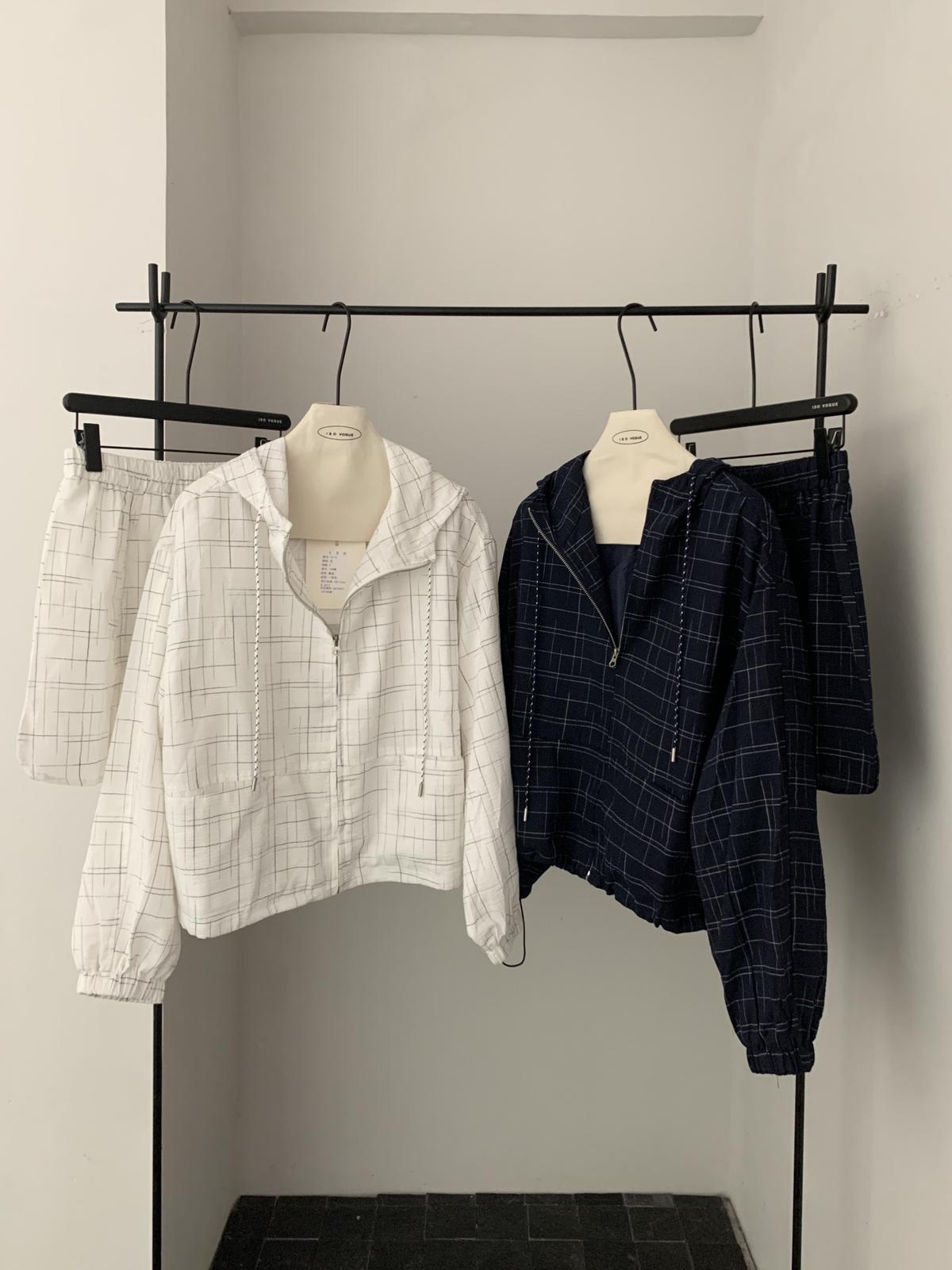 【C8665】簡約帶帽寬鬆條紋百搭半身裙+短外套套裝