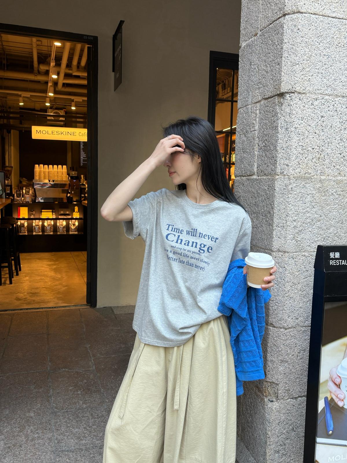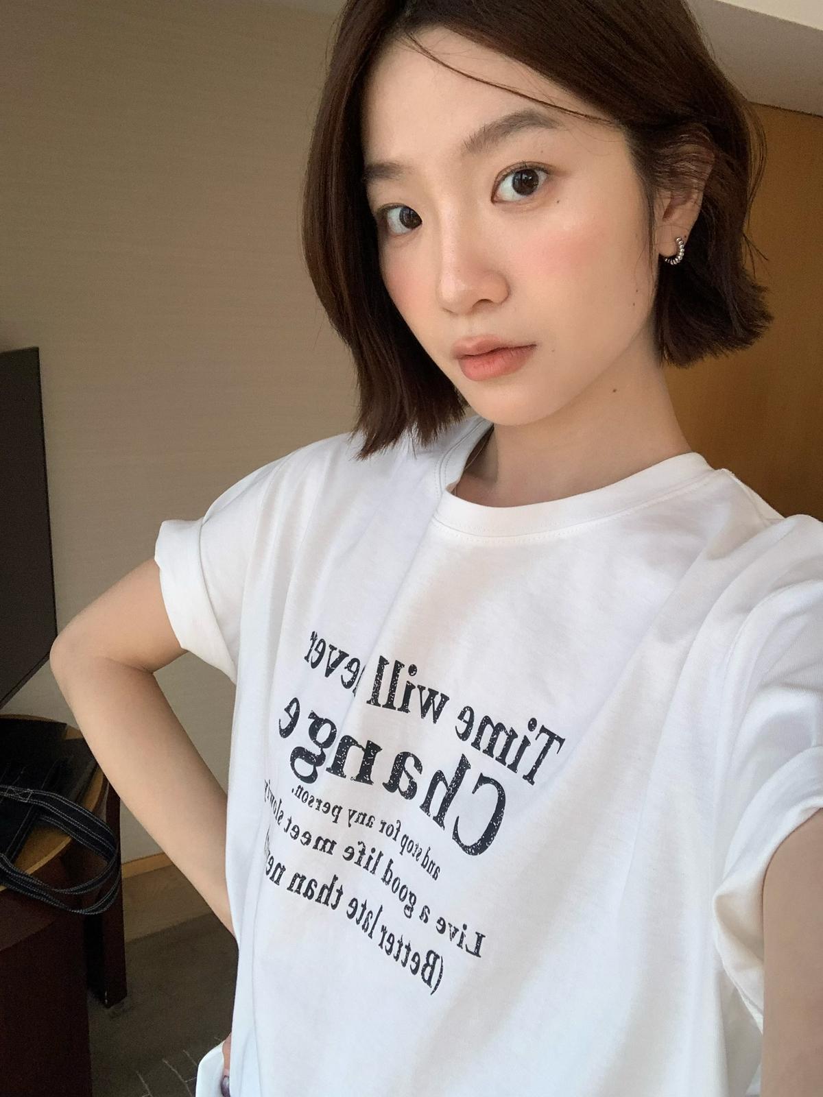 【C8672】簡約ins風字母印花圓領短袖T恤