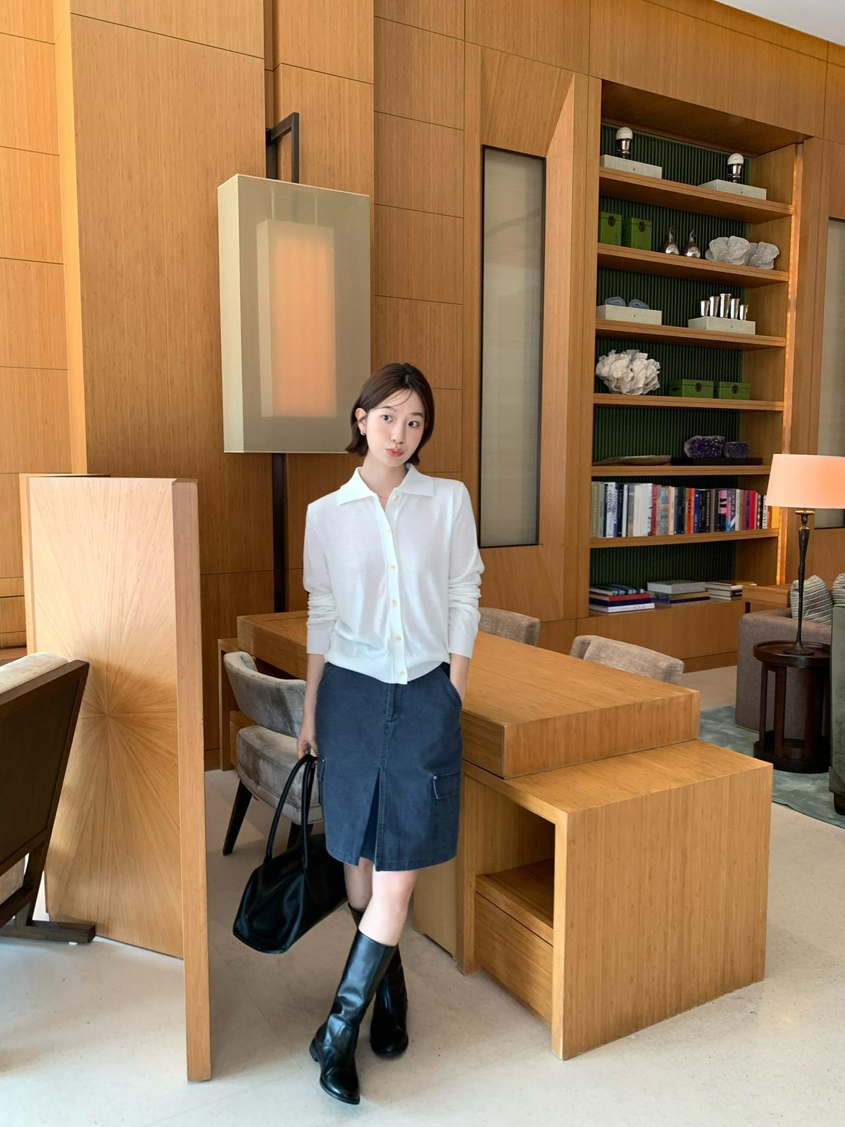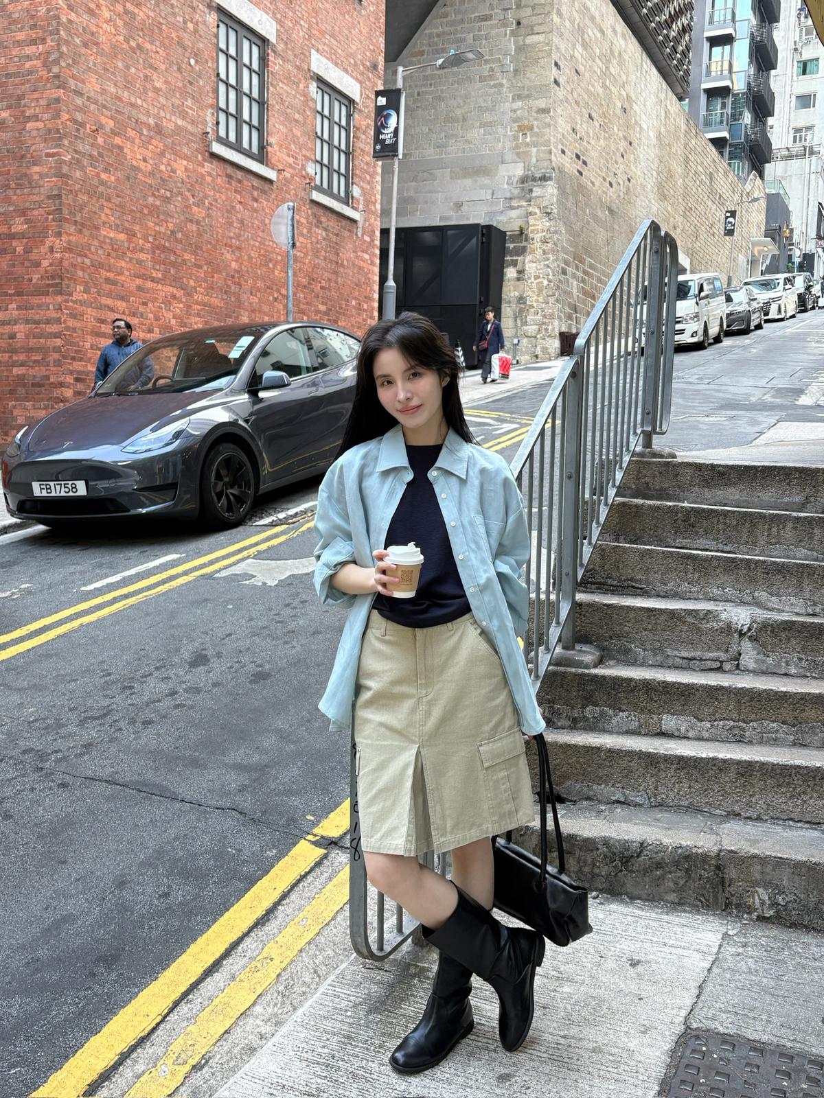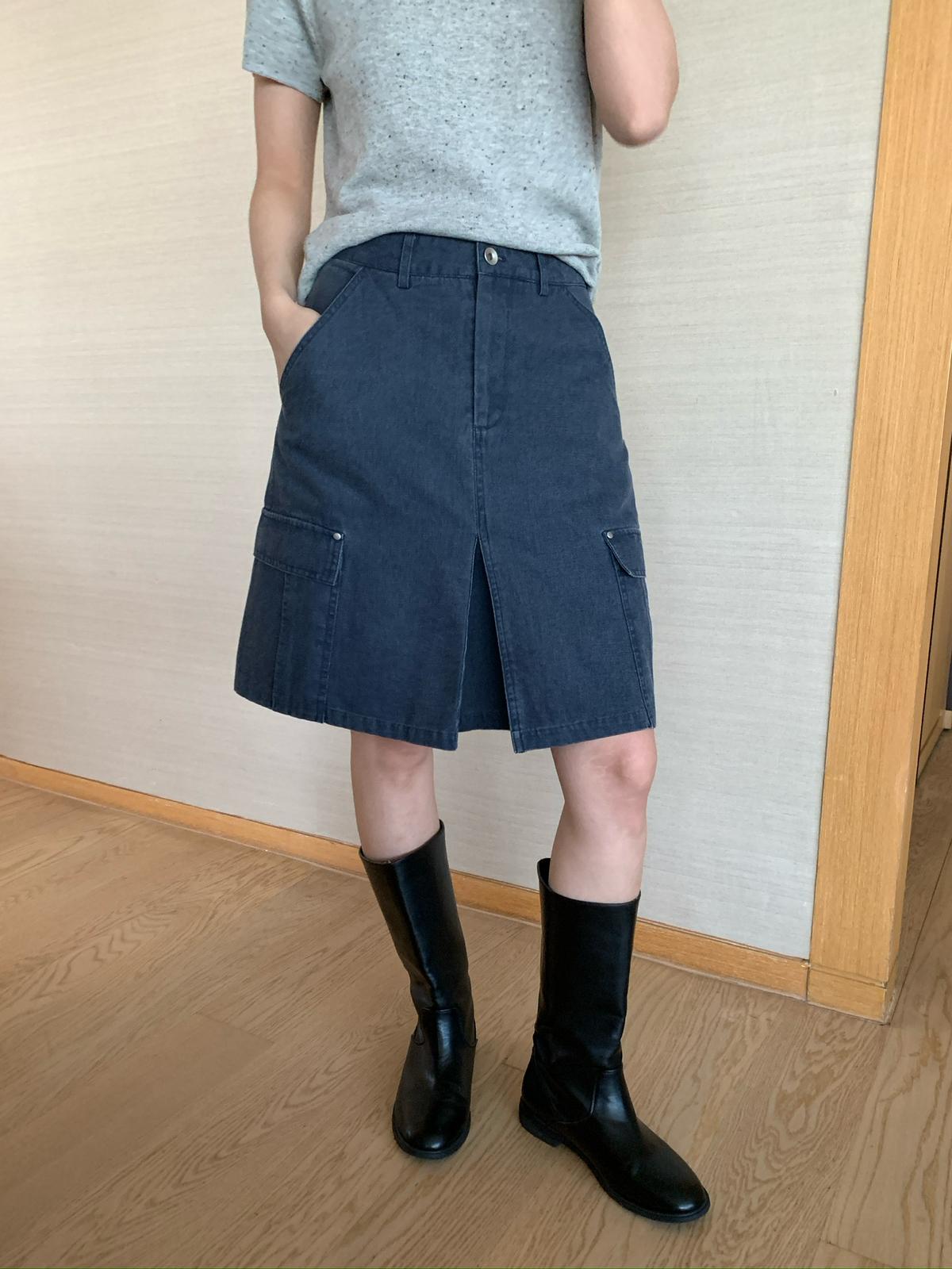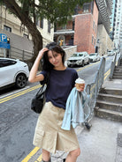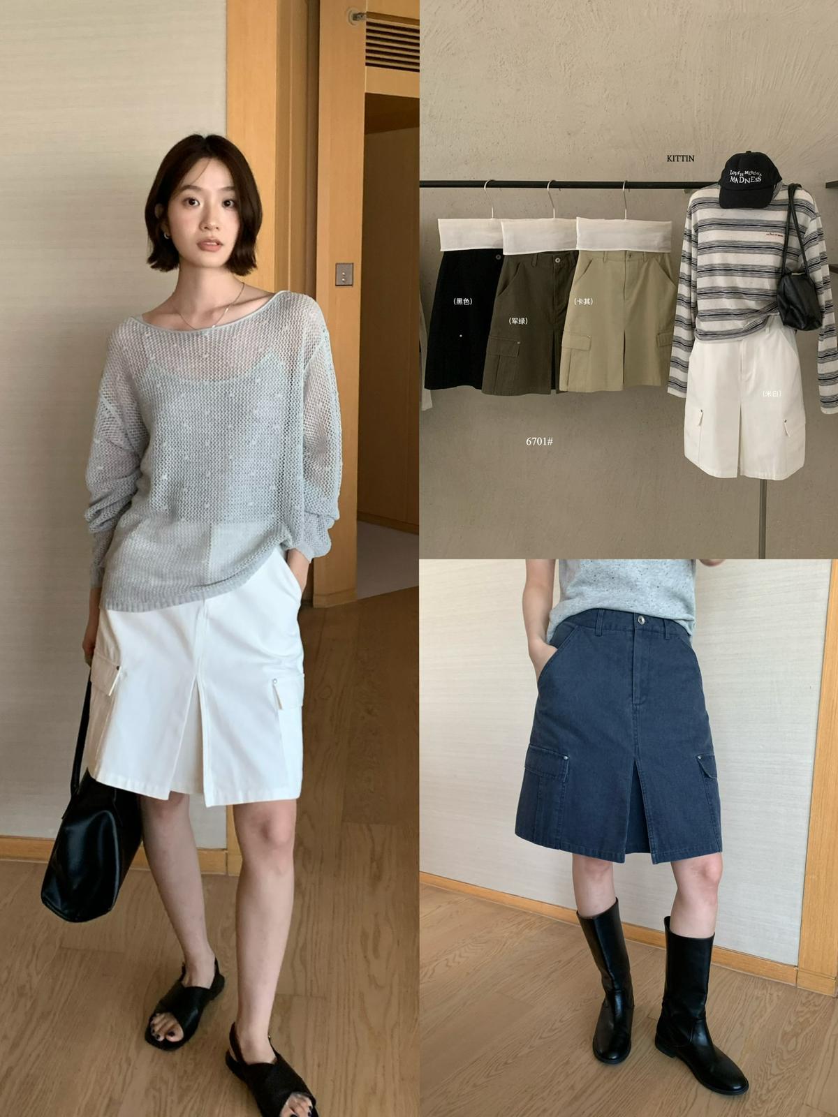 【C8676】韓女甜酷工裝肌理棉休閒半身裙