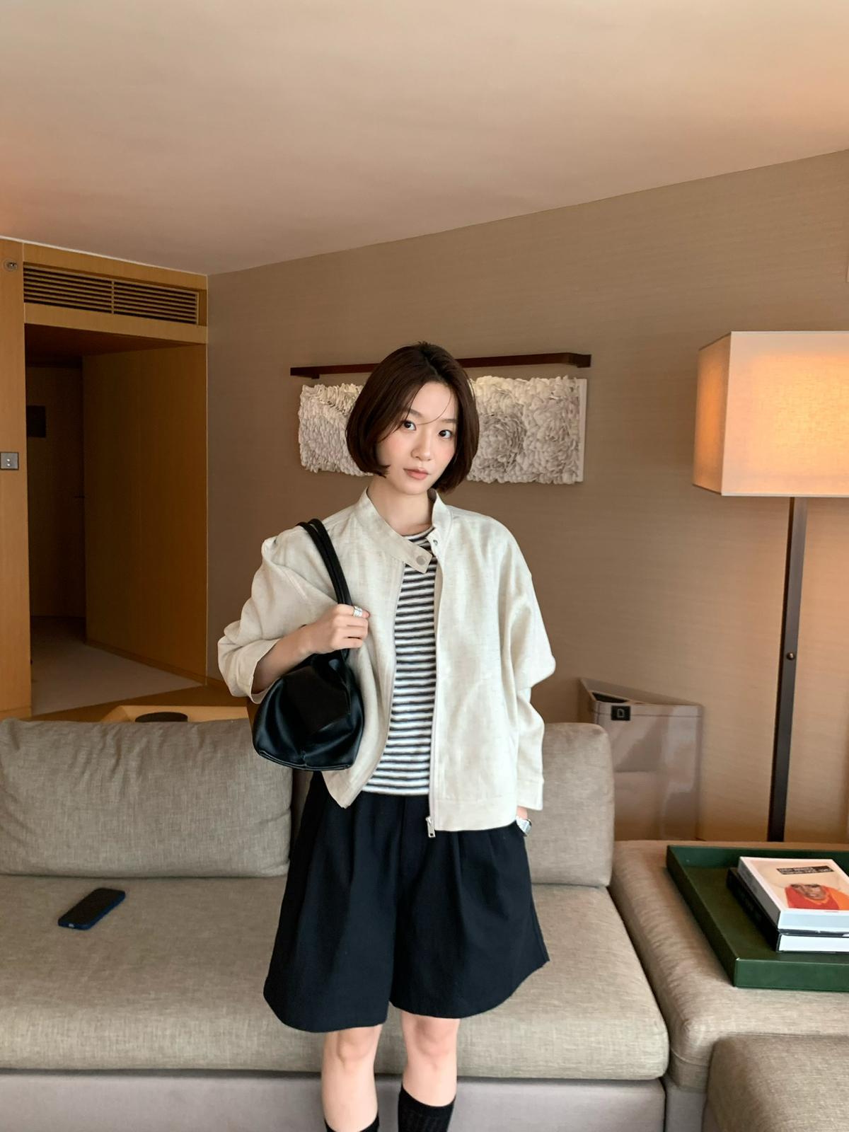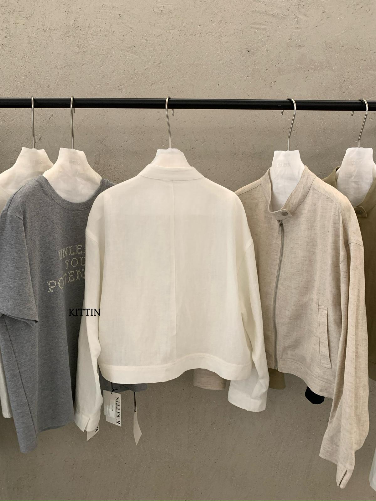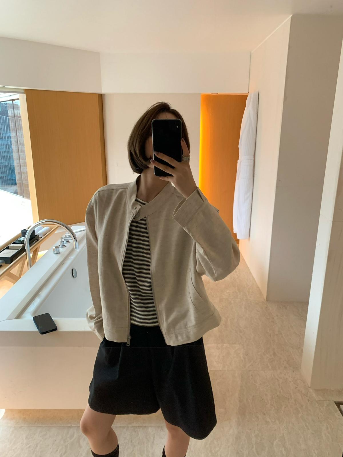 【C8677】高智老錢風萊賽爾亞麻高品質立領休閒短外套