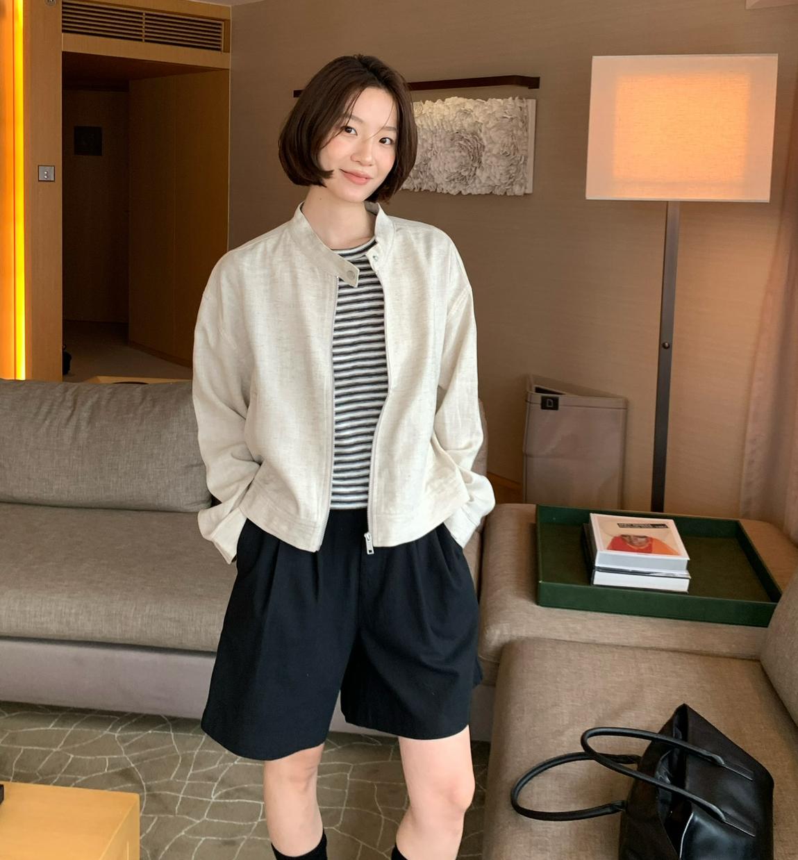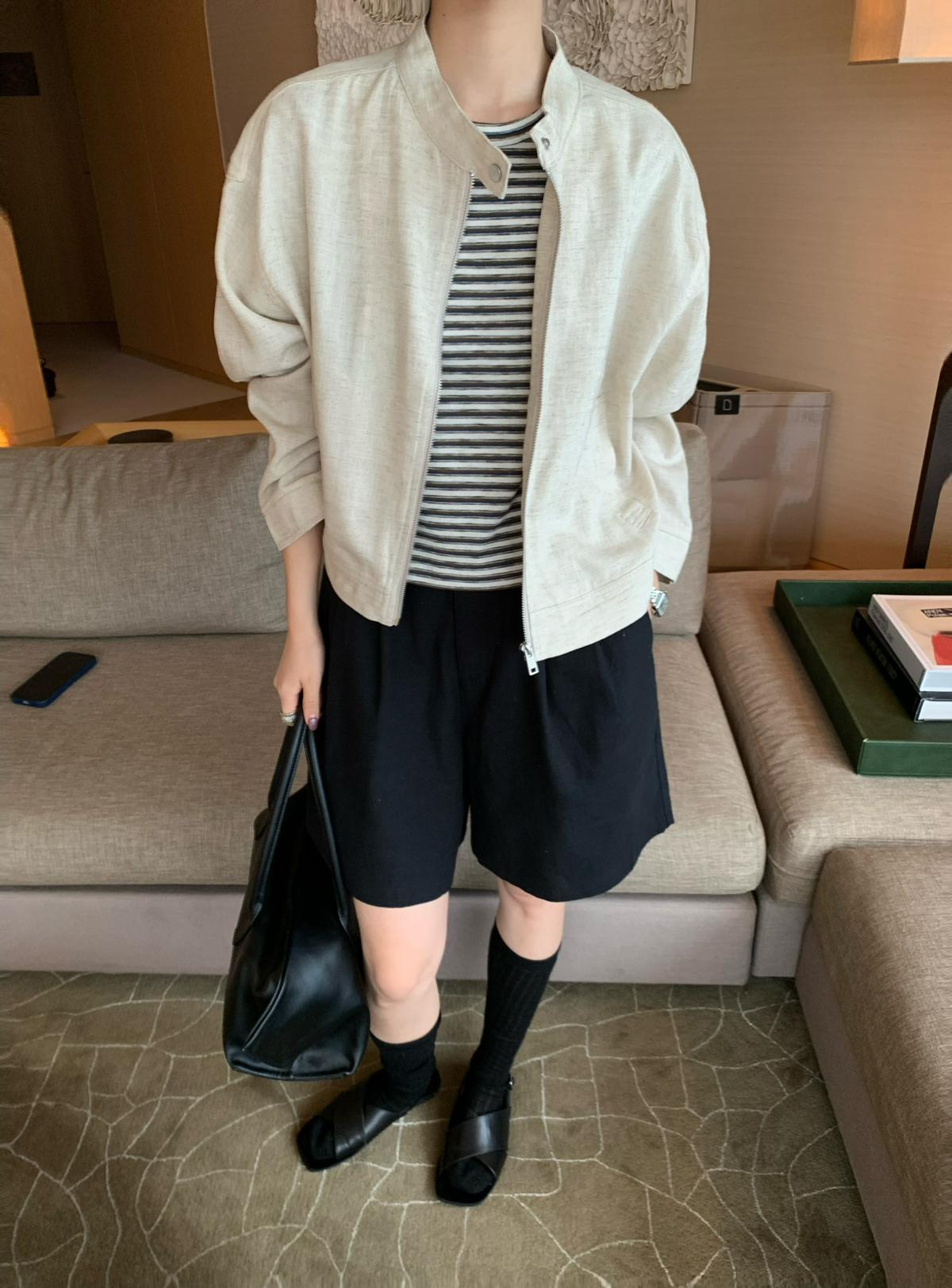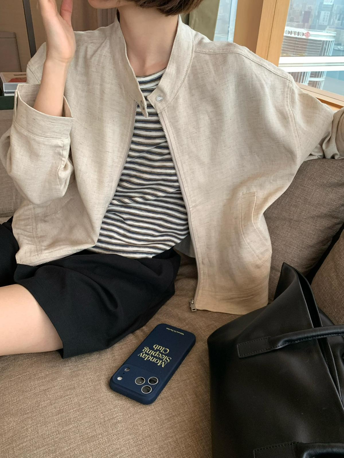 【C8677】高智老錢風萊賽爾亞麻高品質立領休閒短外套