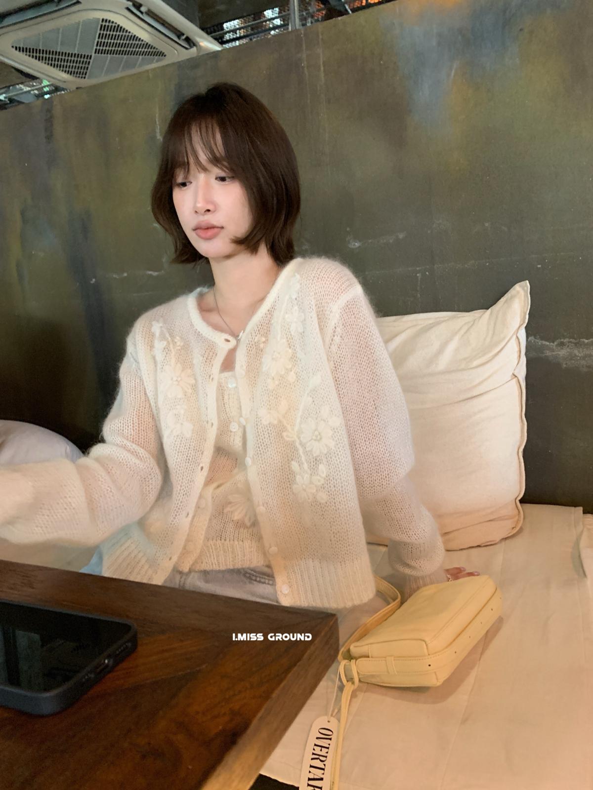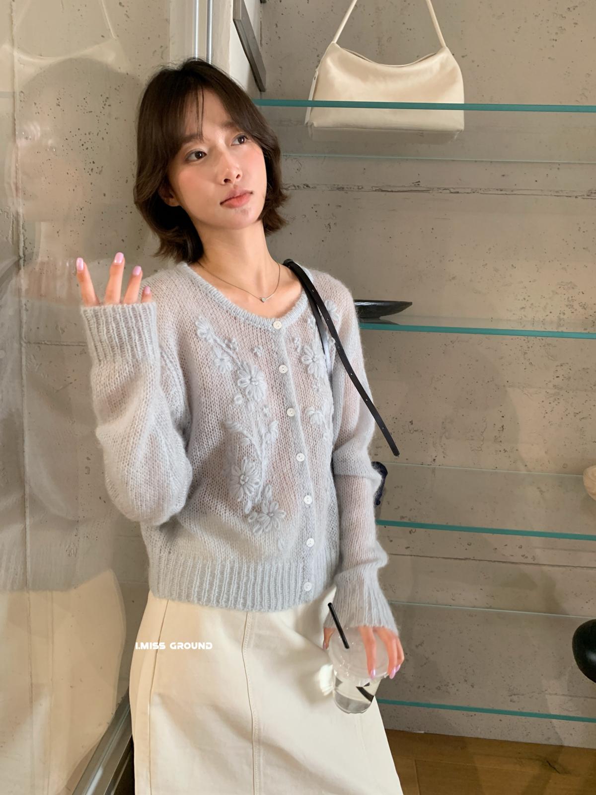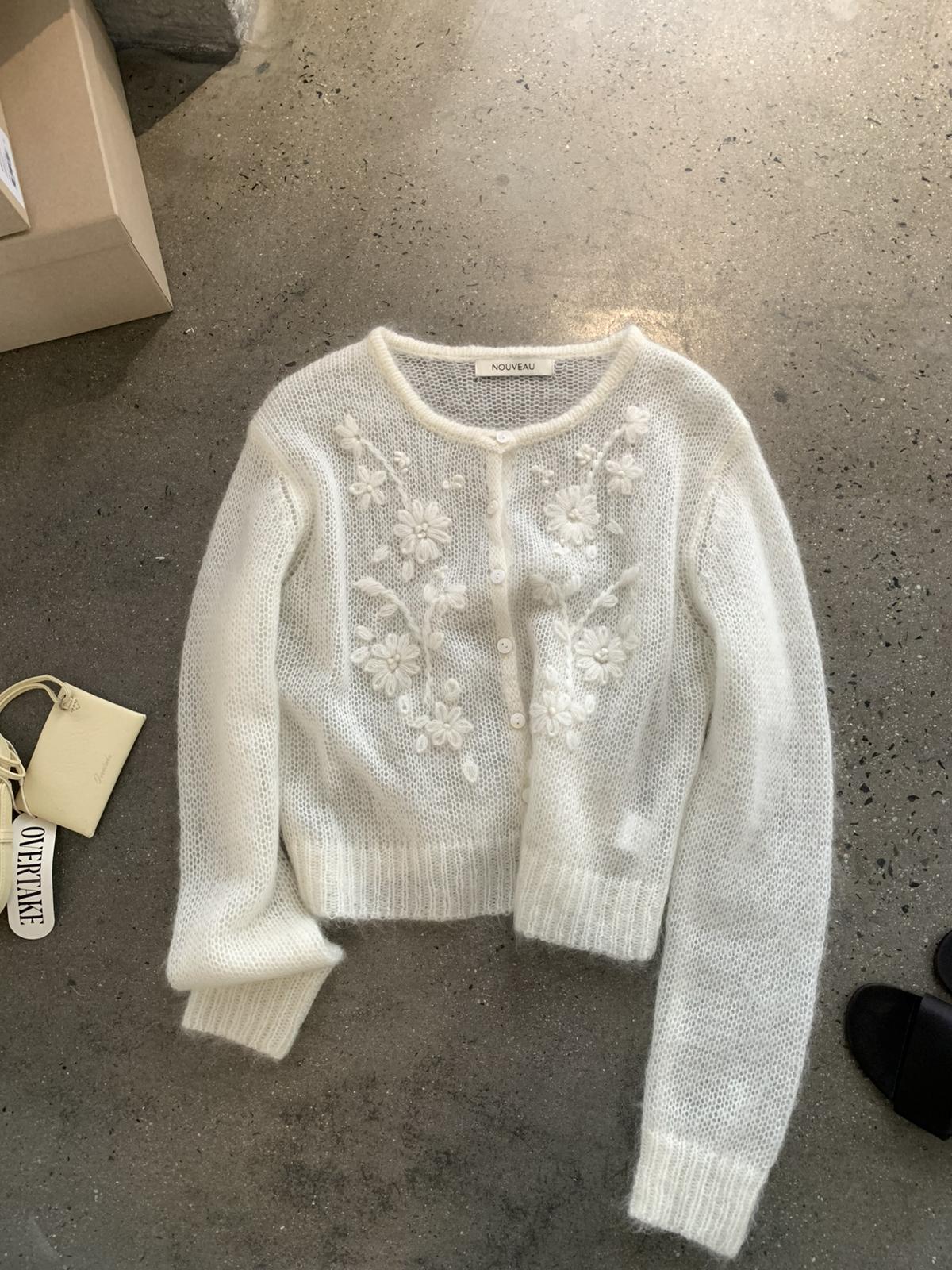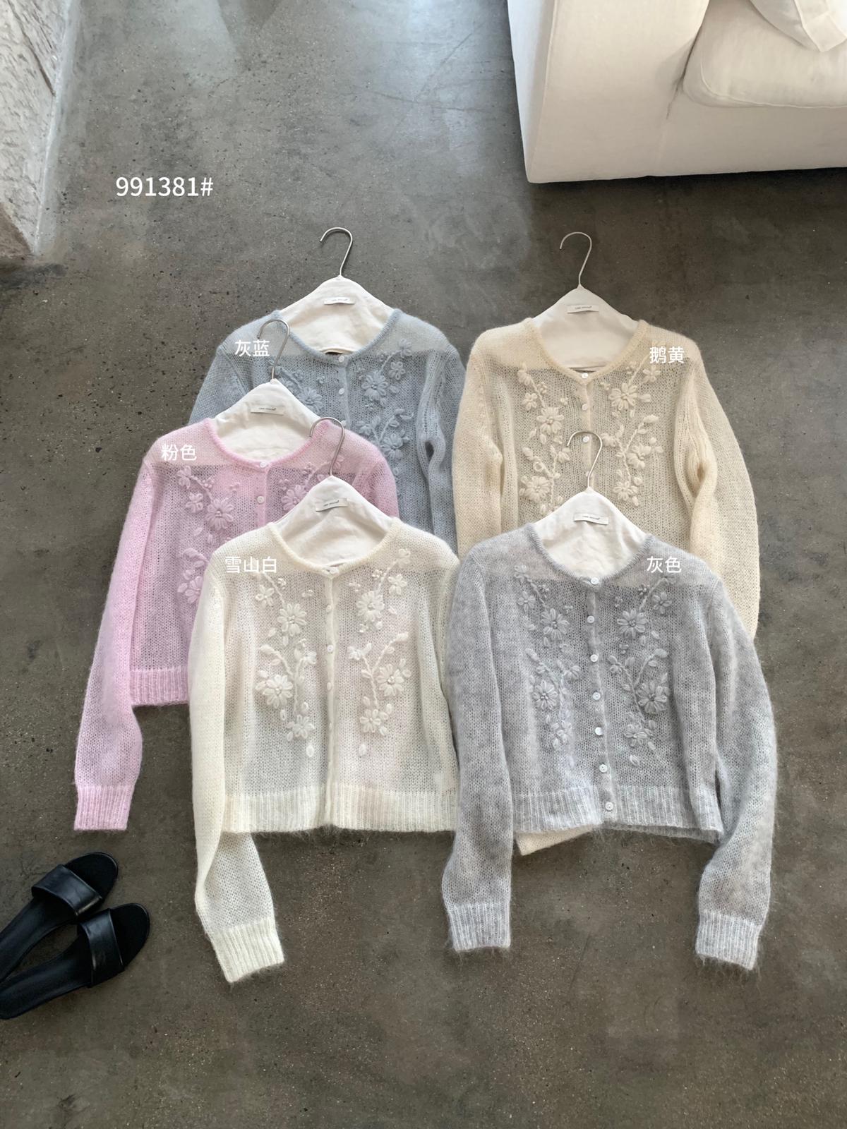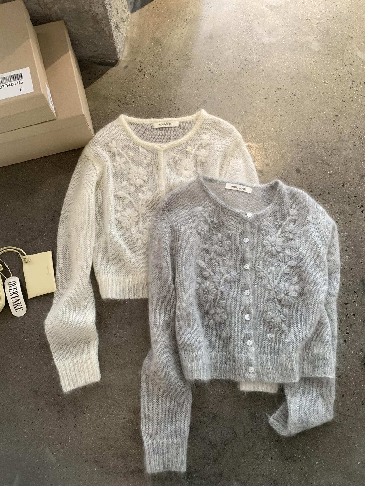 【C8695】絕美重工刺繡勾花馬海毛針織開衫(含30%羊毛)(不含背心)