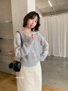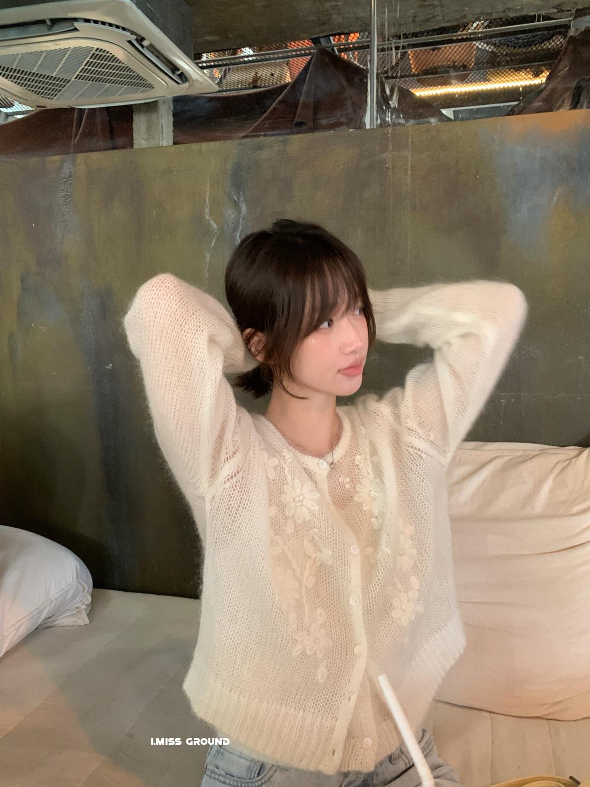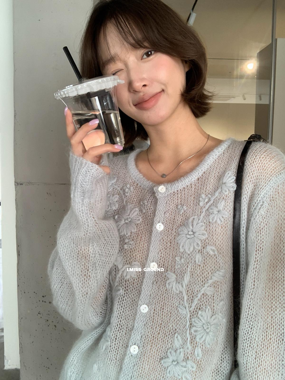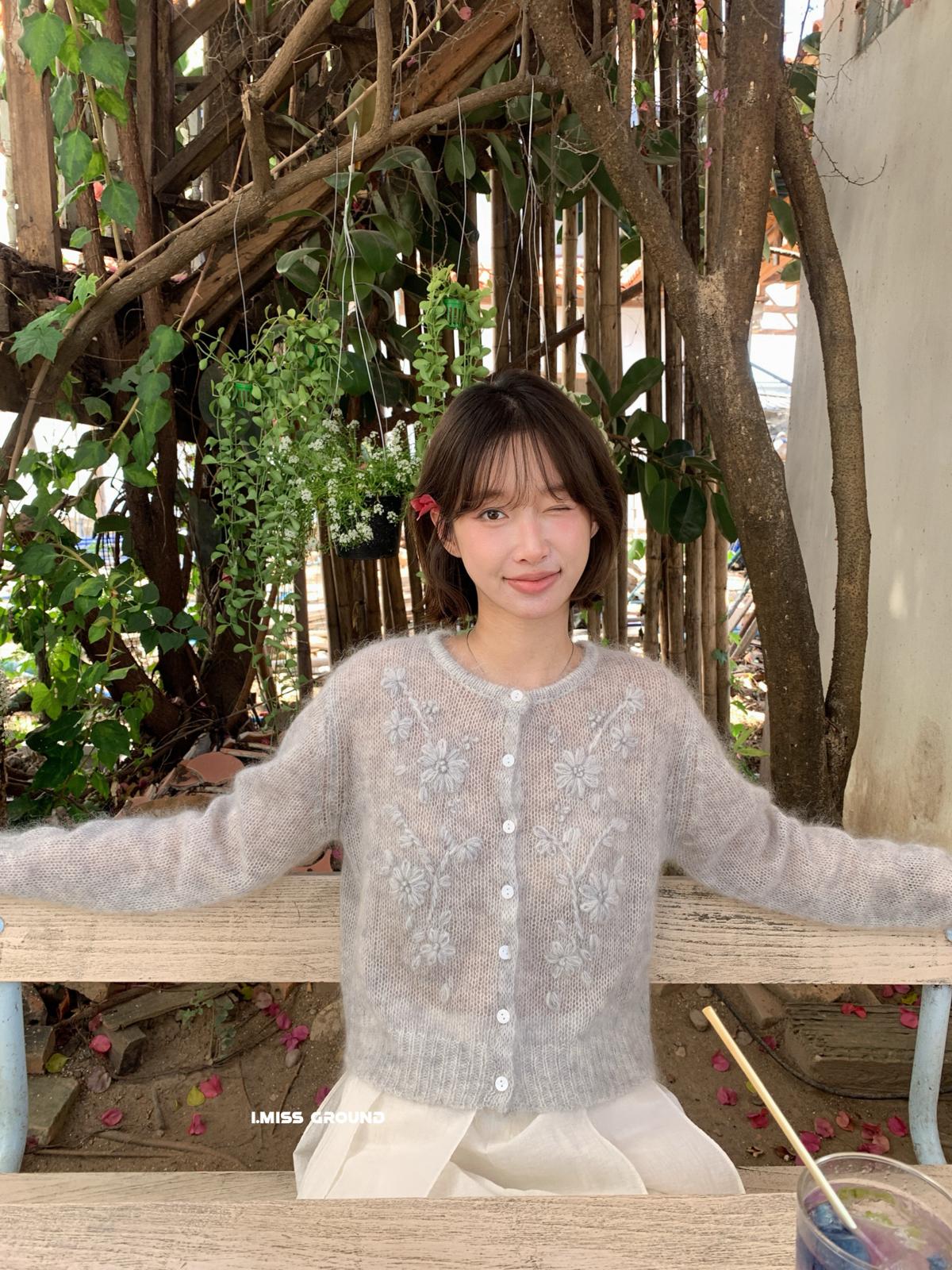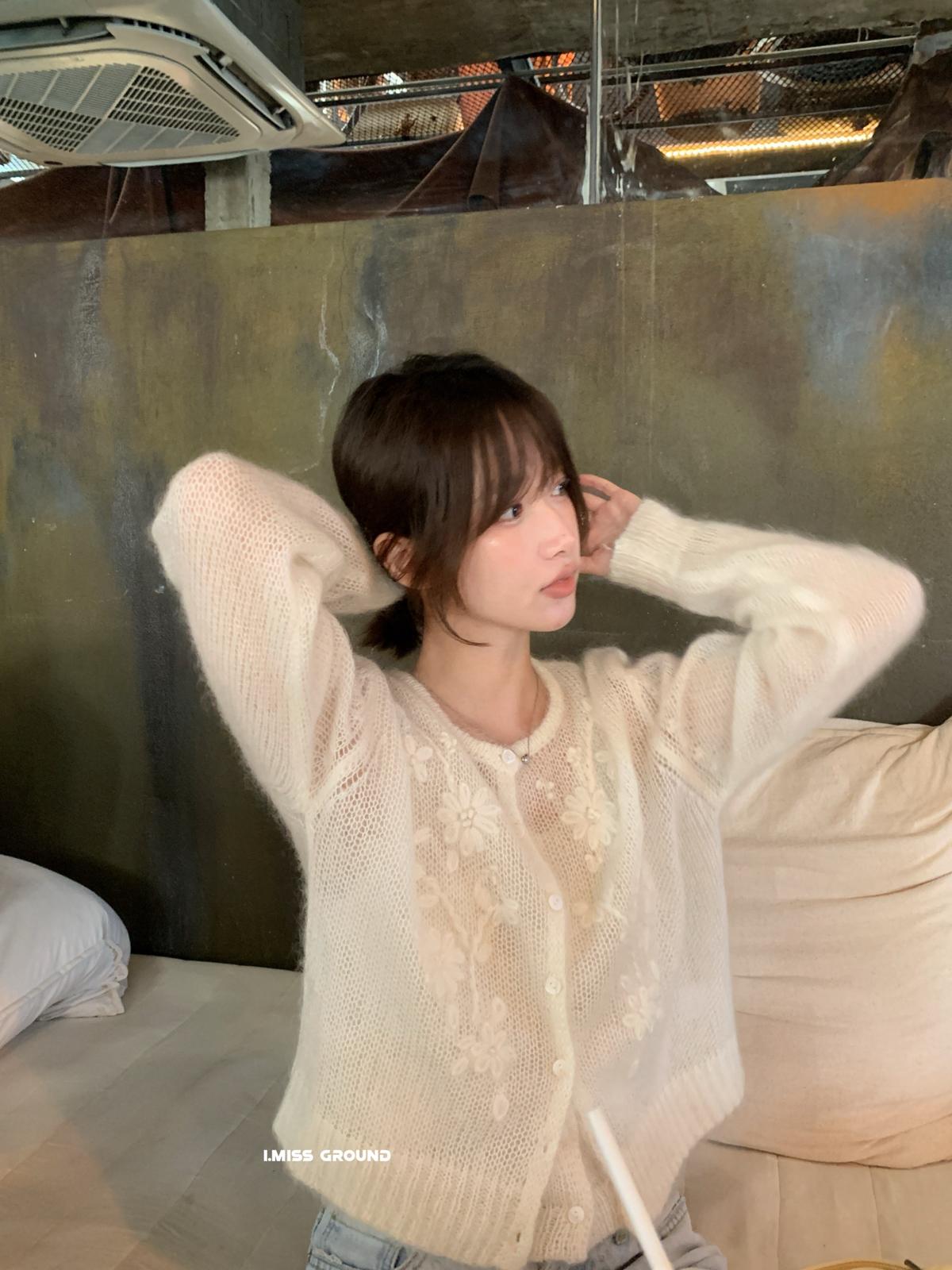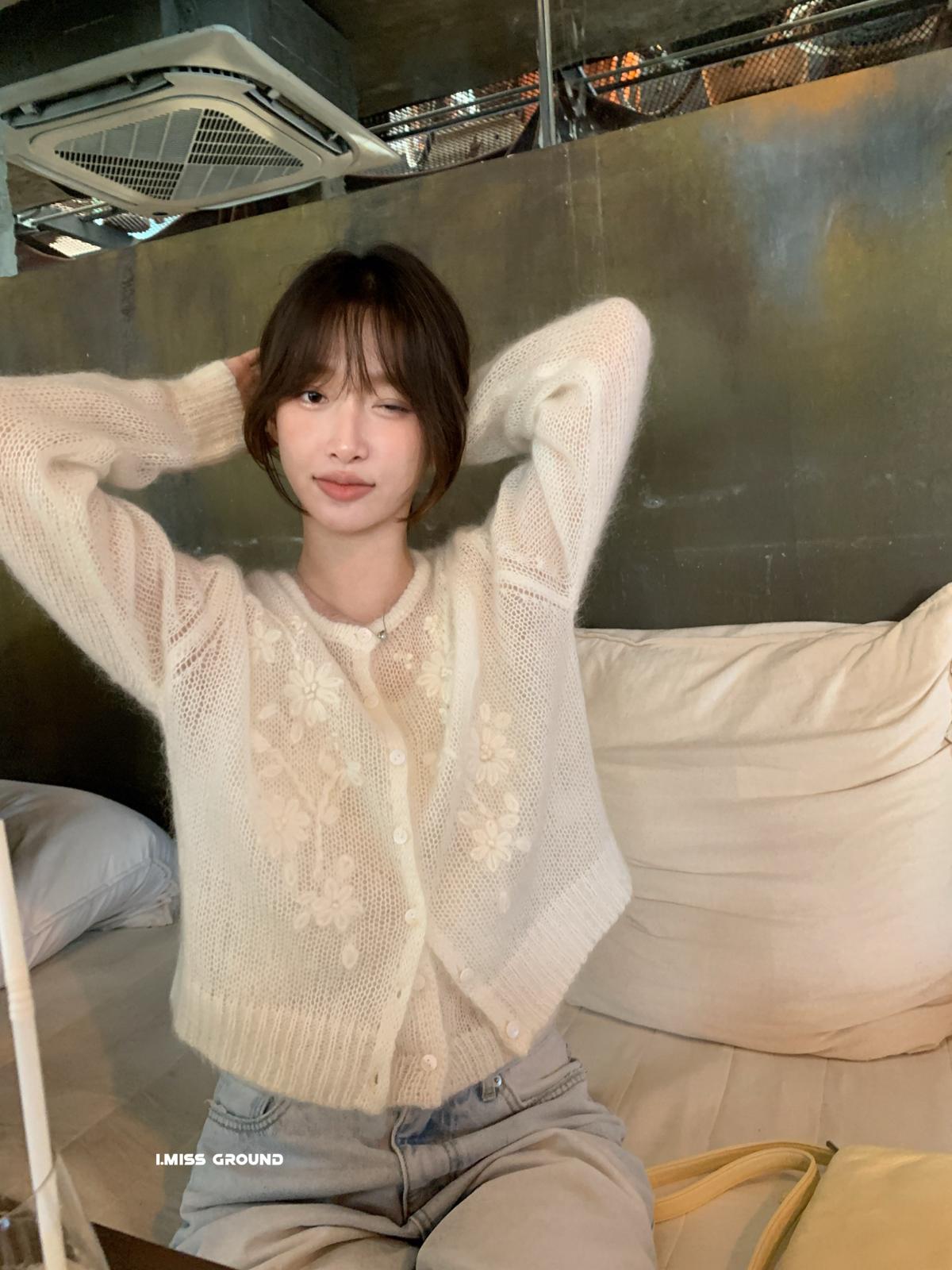 【C8695】絕美重工刺繡勾花馬海毛針織開衫(含30%羊毛)(不含背心)