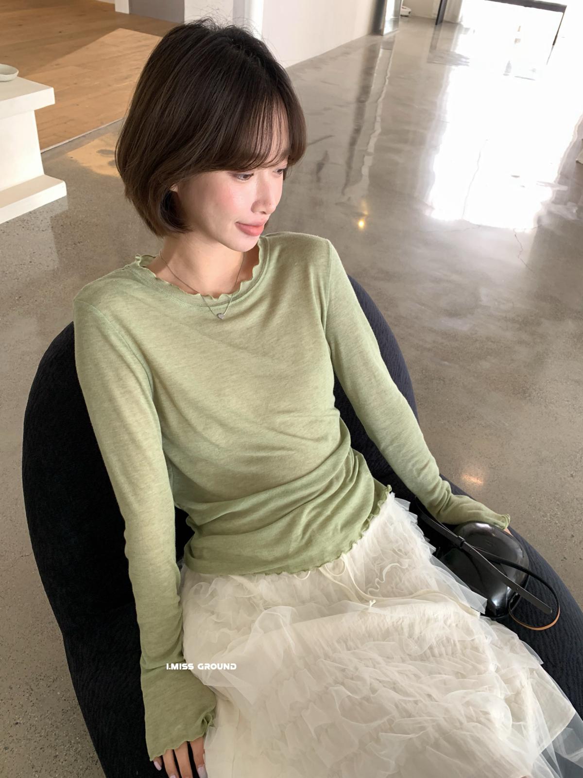 【C8696】爆款卷邊天絲麻長袖T恤