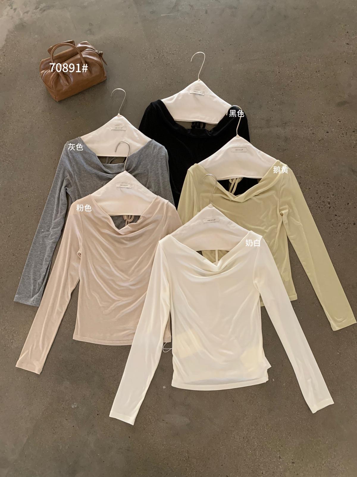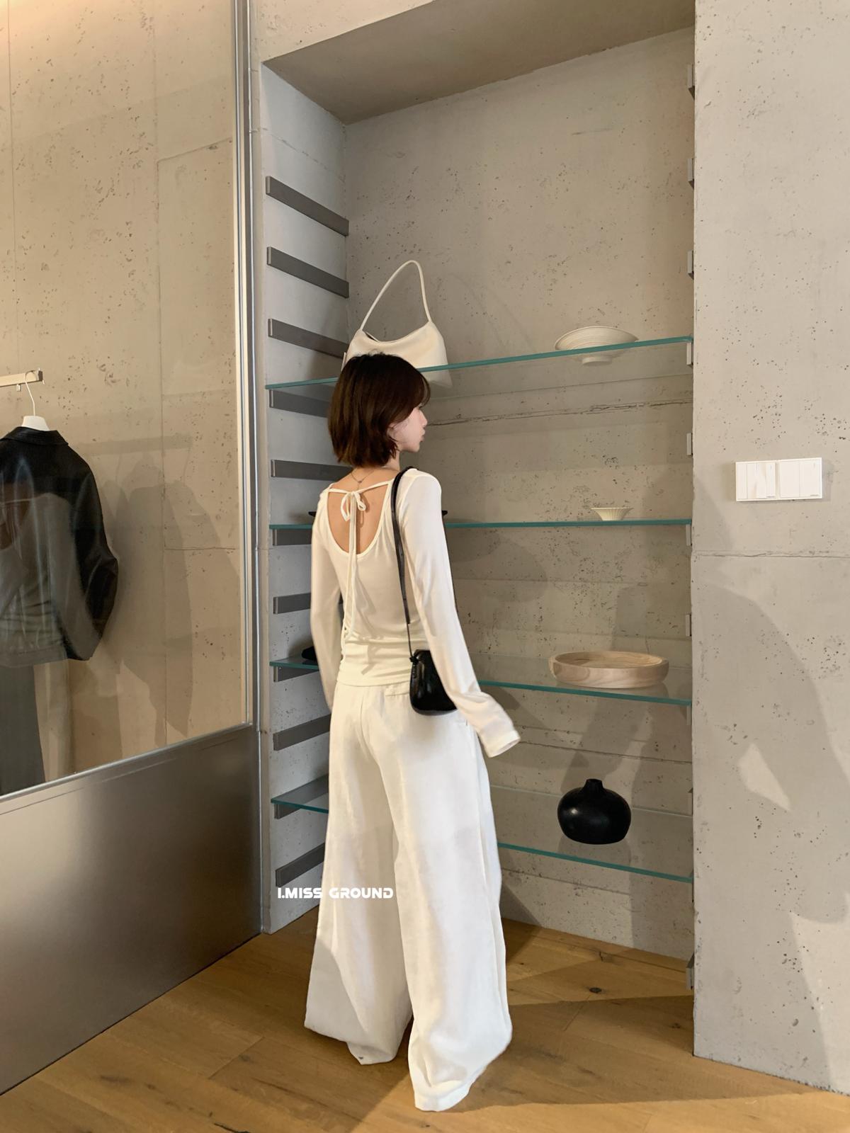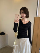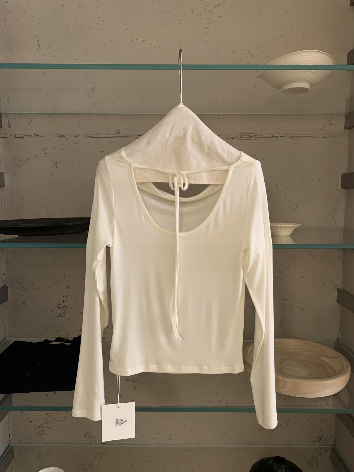 【C8697】顯瘦後綁帶蕩領長袖T恤