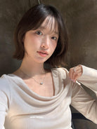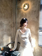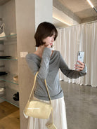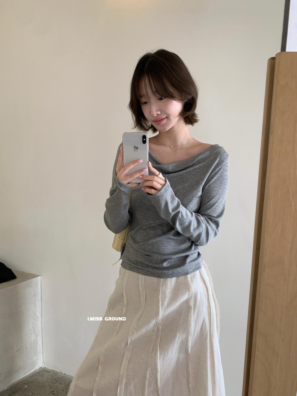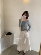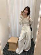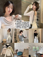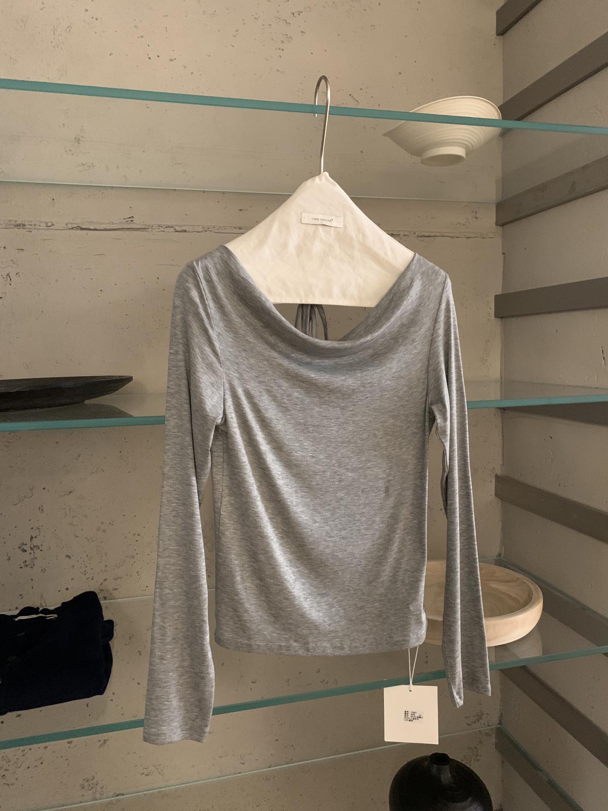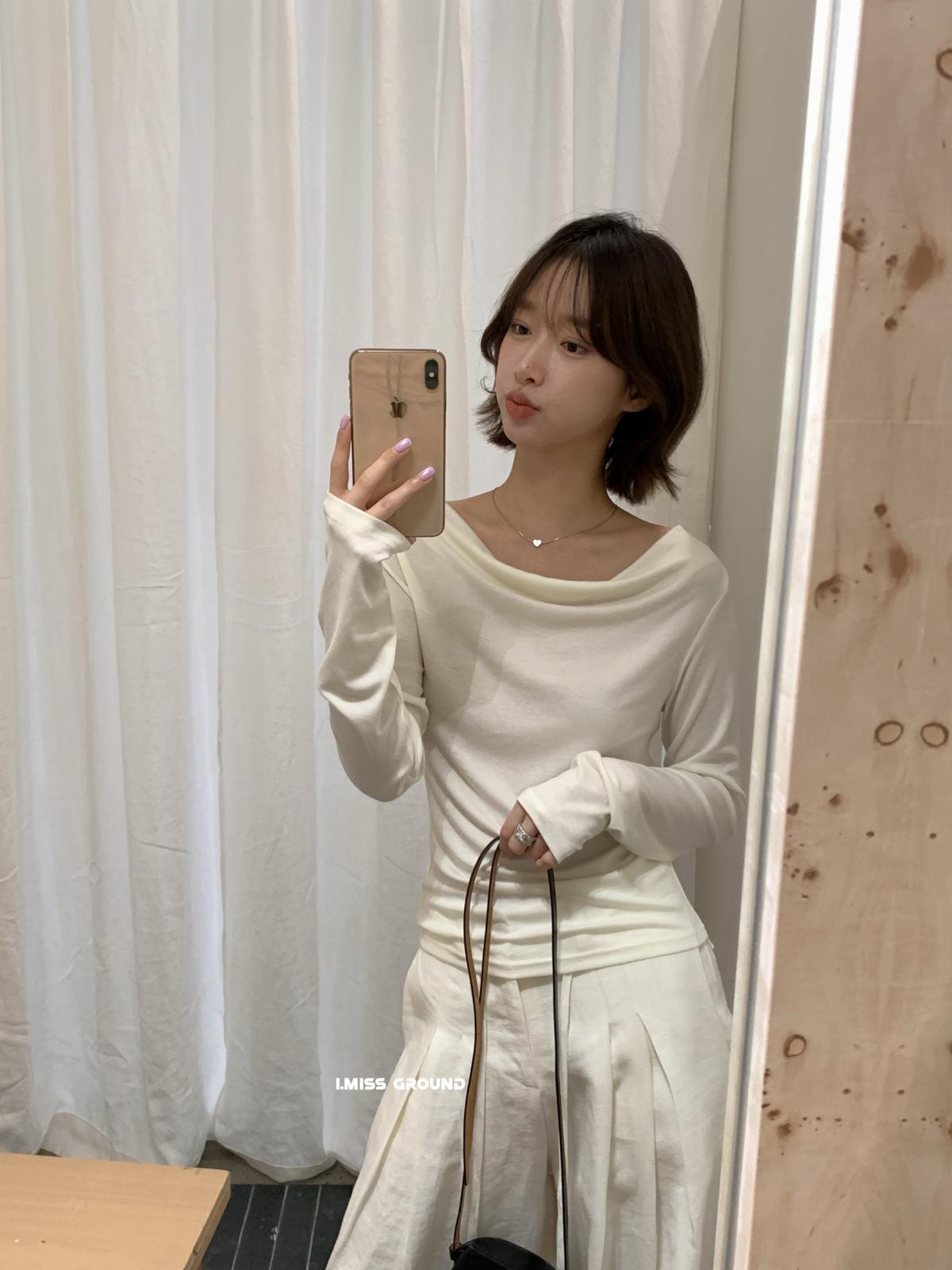 【C8697】顯瘦後綁帶蕩領長袖T恤