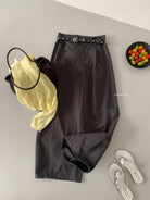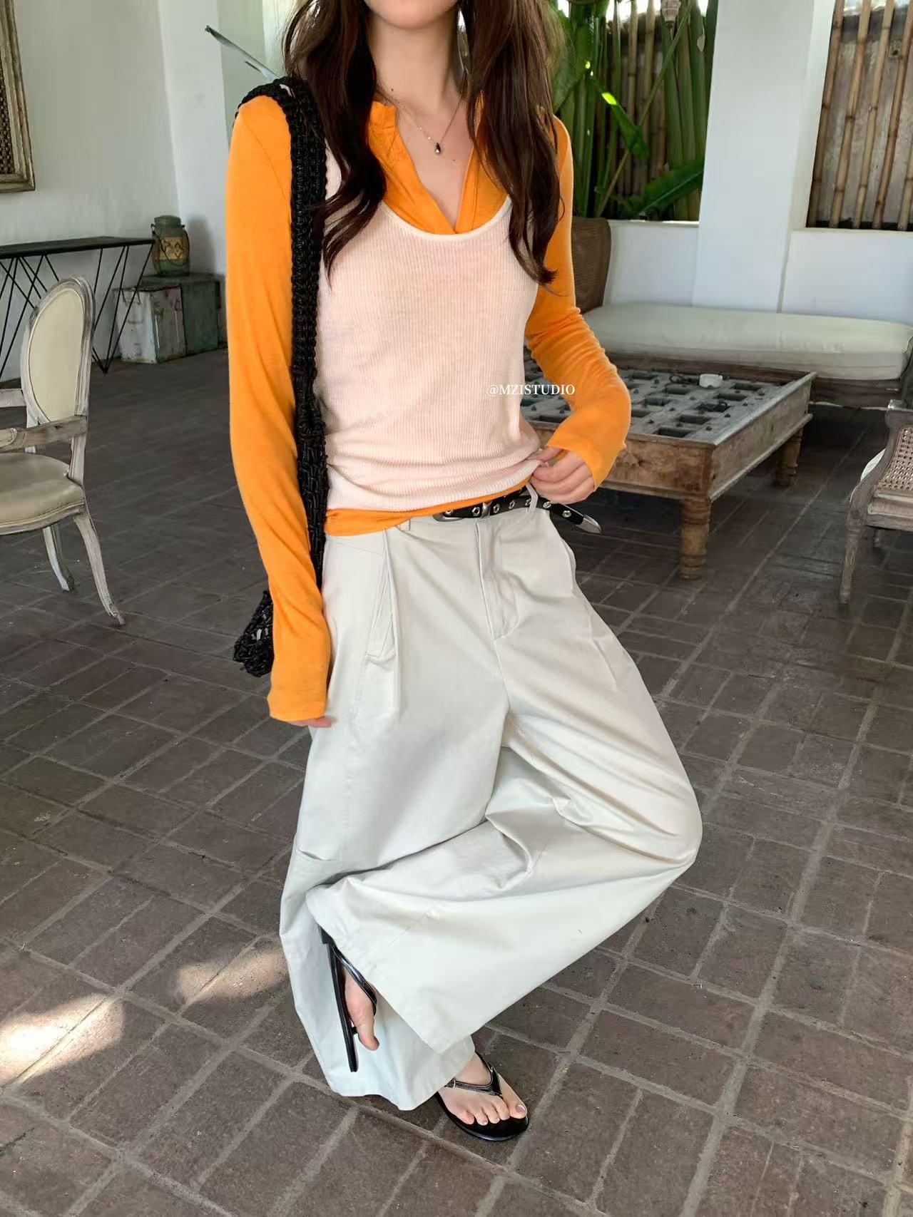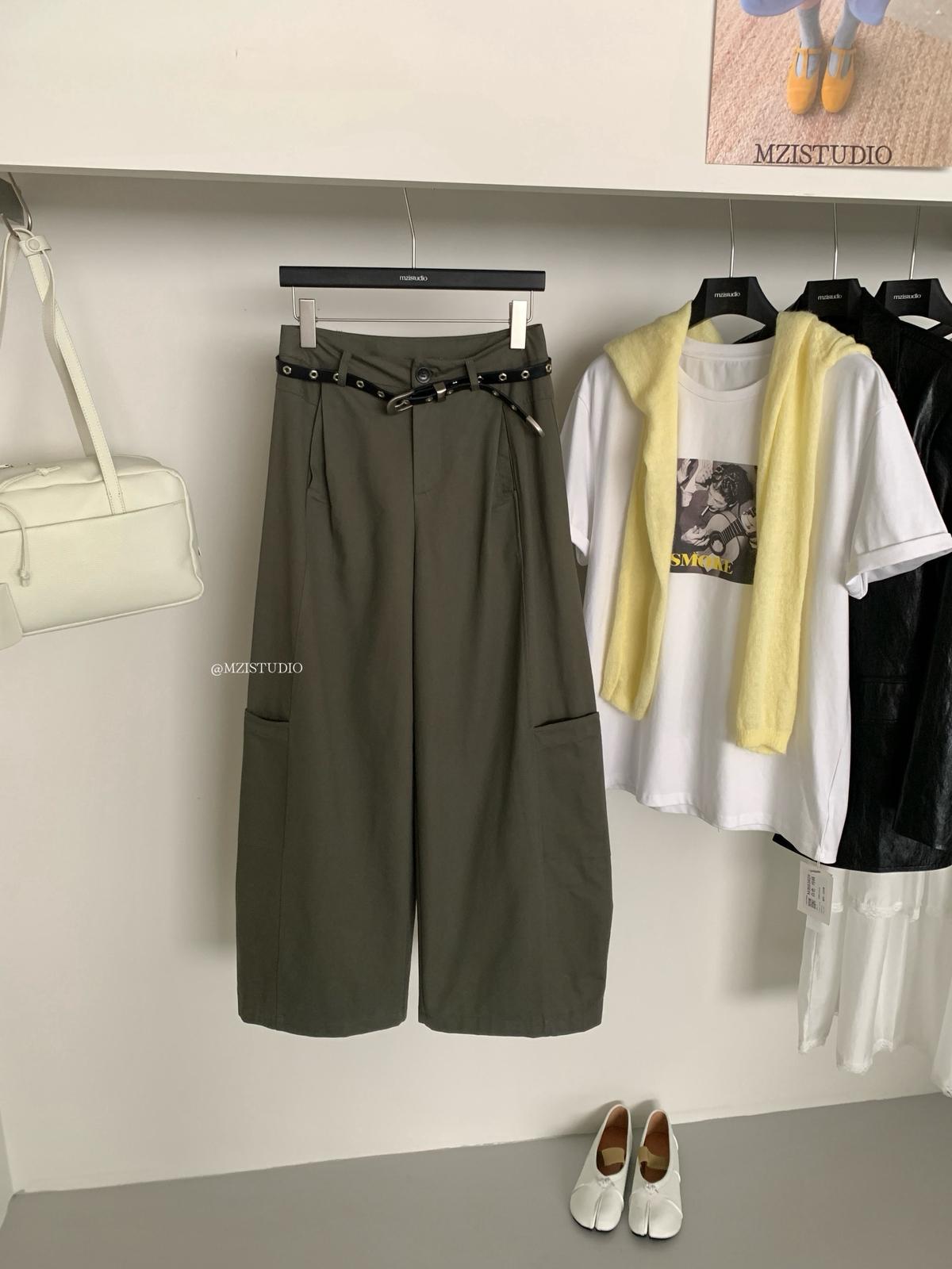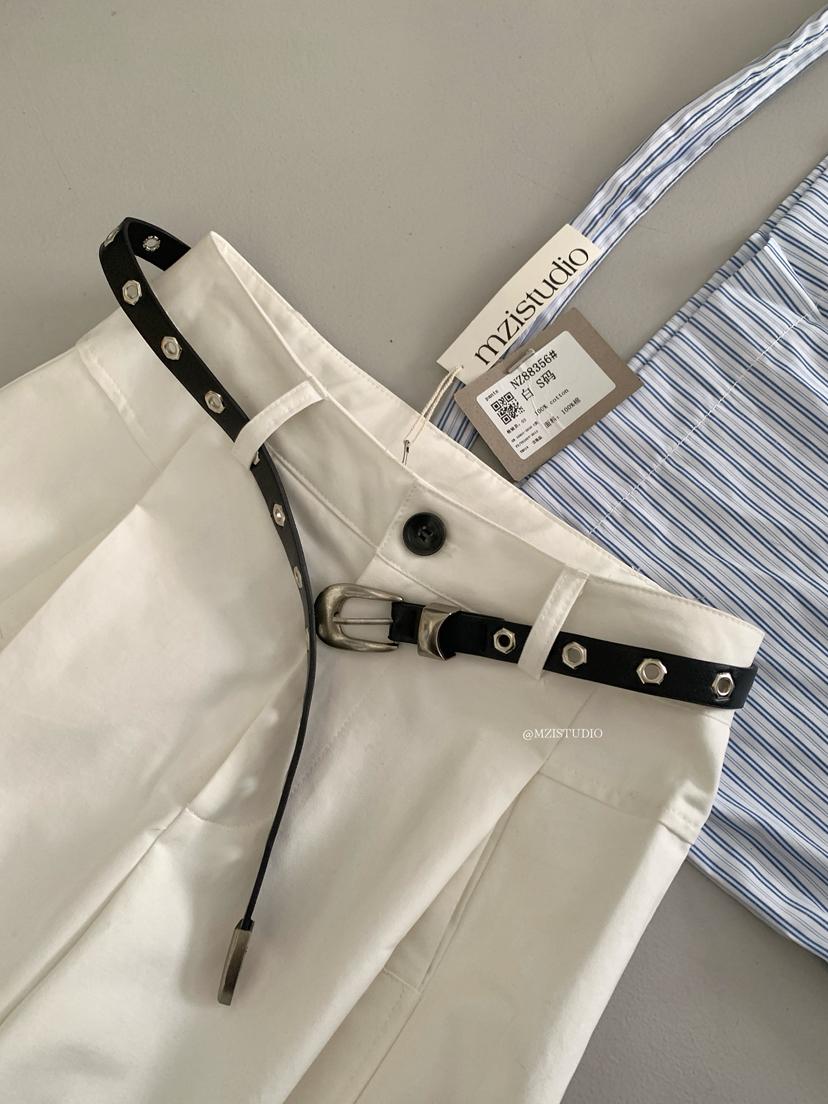 【C8700】穿出南韓歐尼網感春季復古壓褶版型正舒適百搭休閒褲(配皮帶)