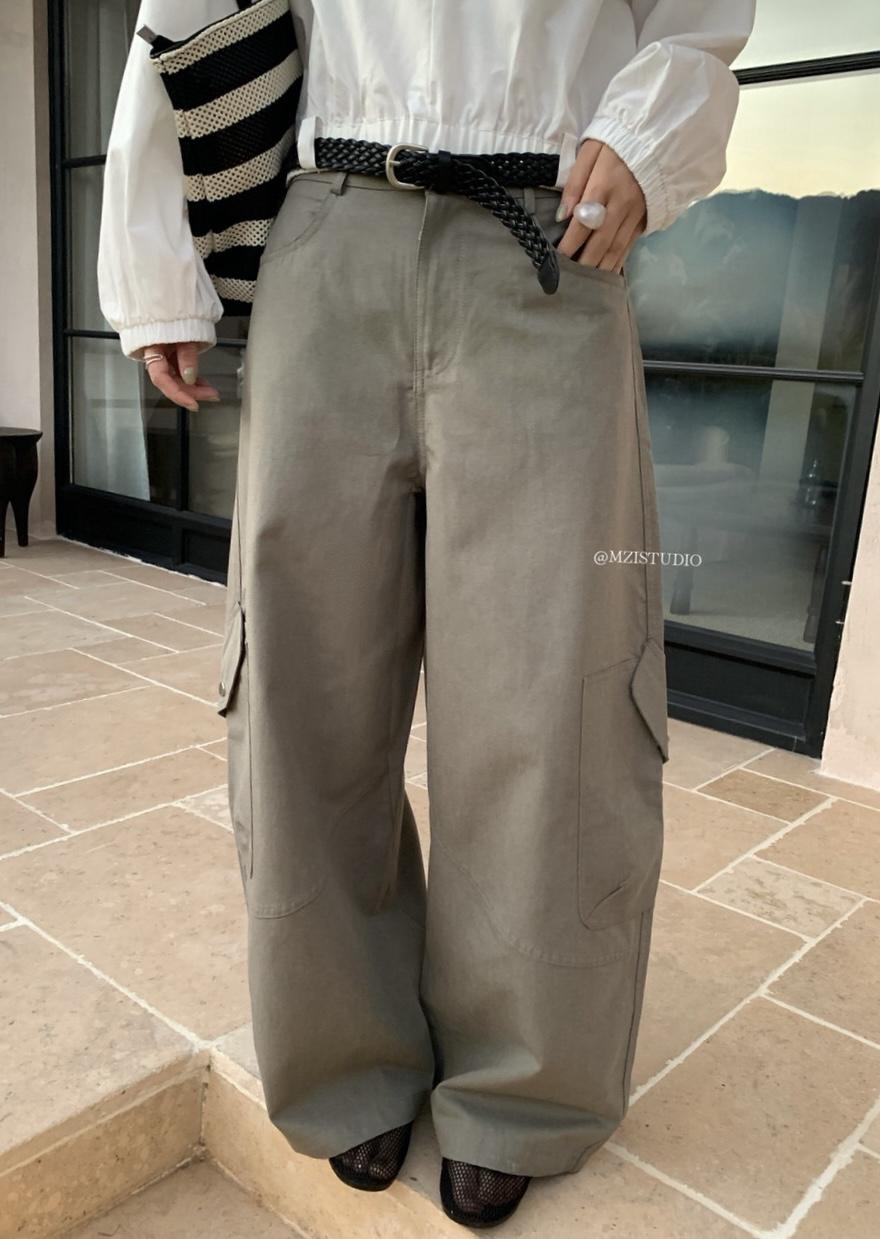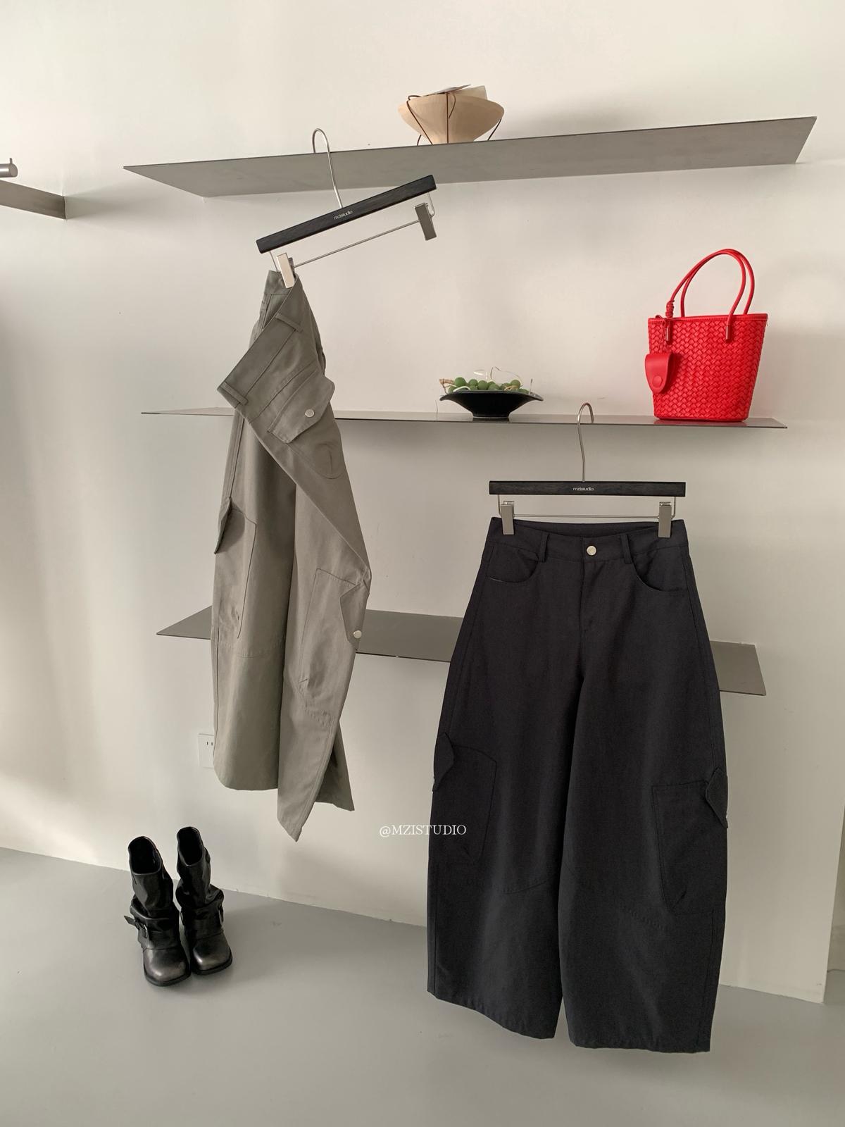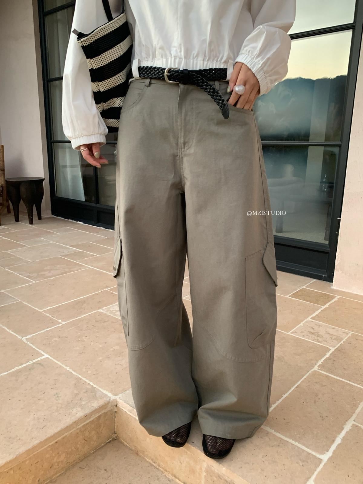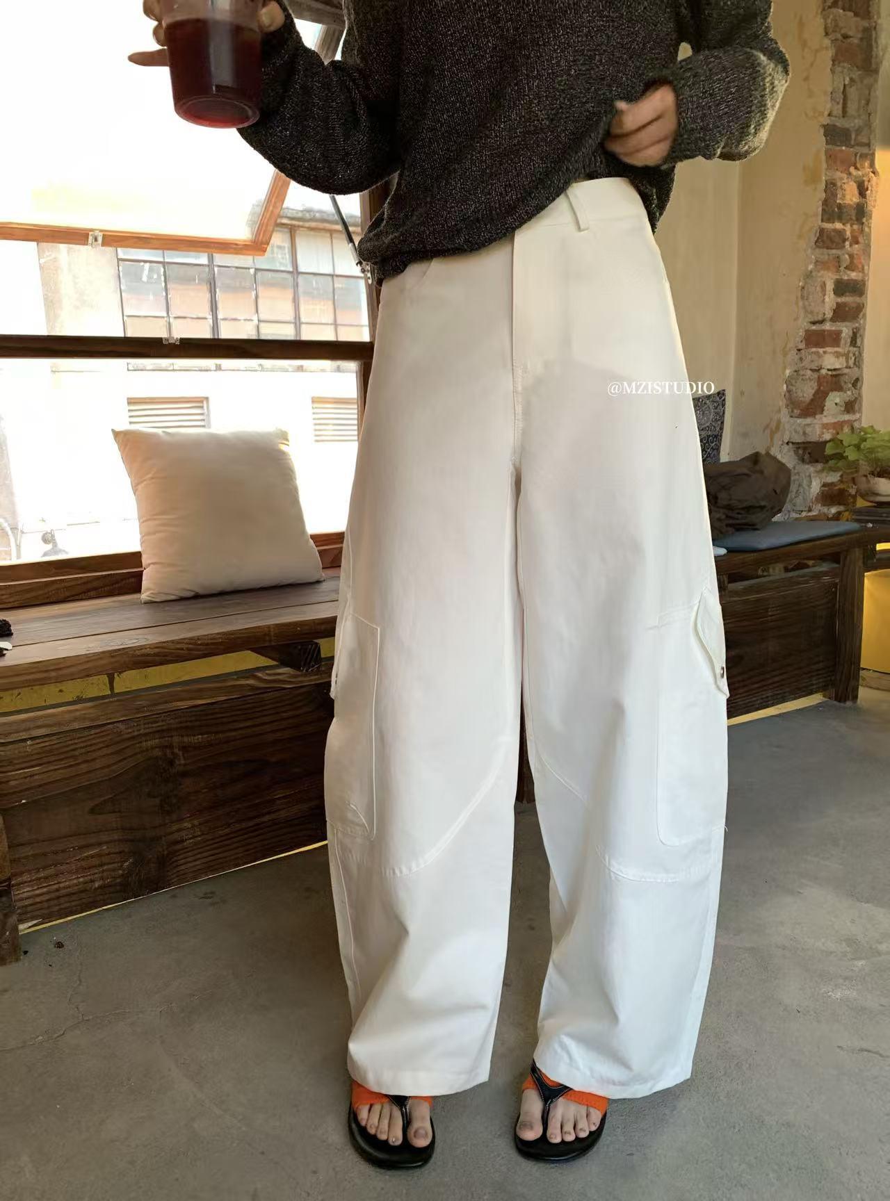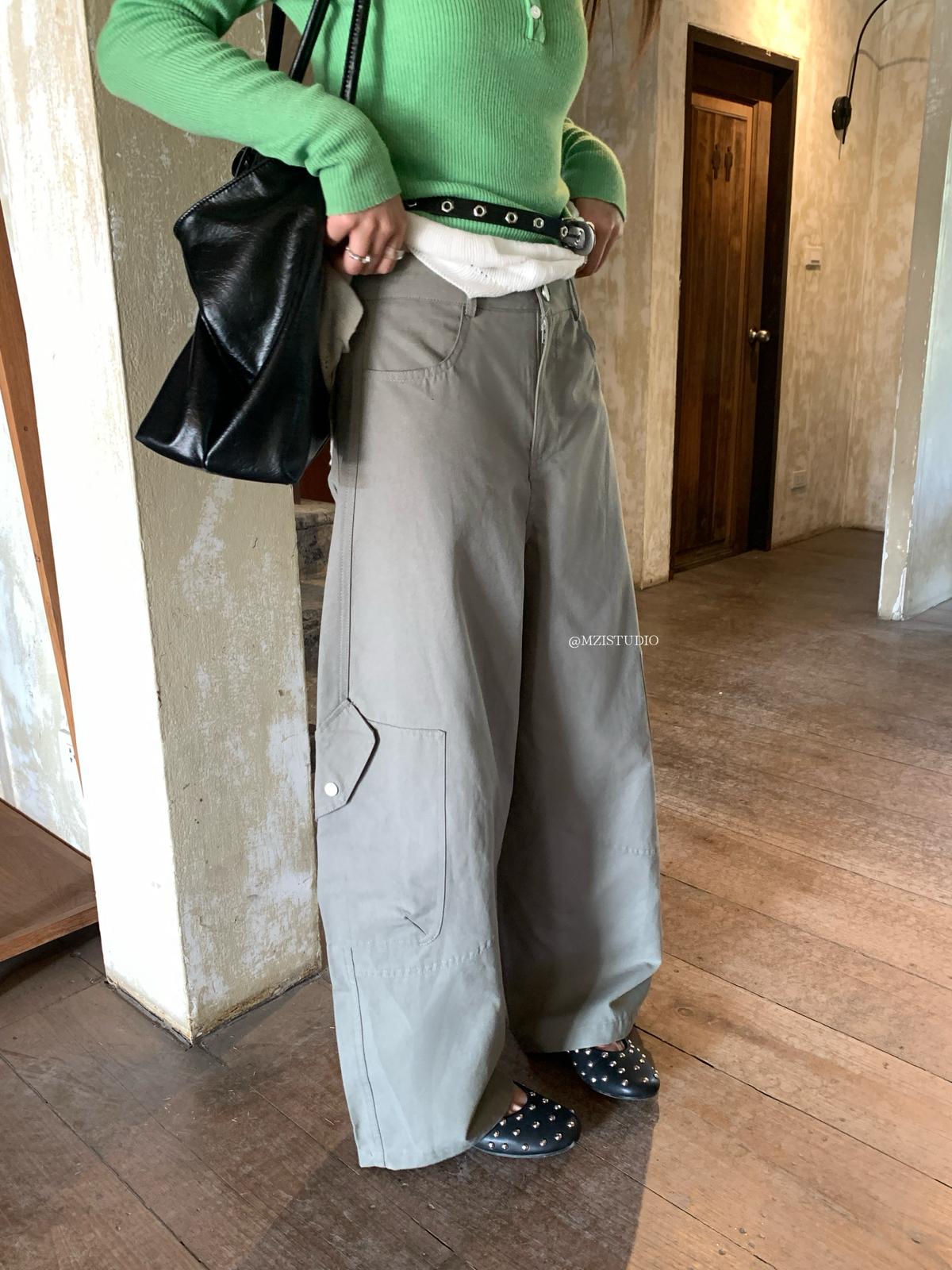 【C8701】懷舊城野春季休閒廓形高腰遮胯寬顯腿長雙側大口袋休閒褲