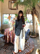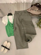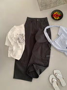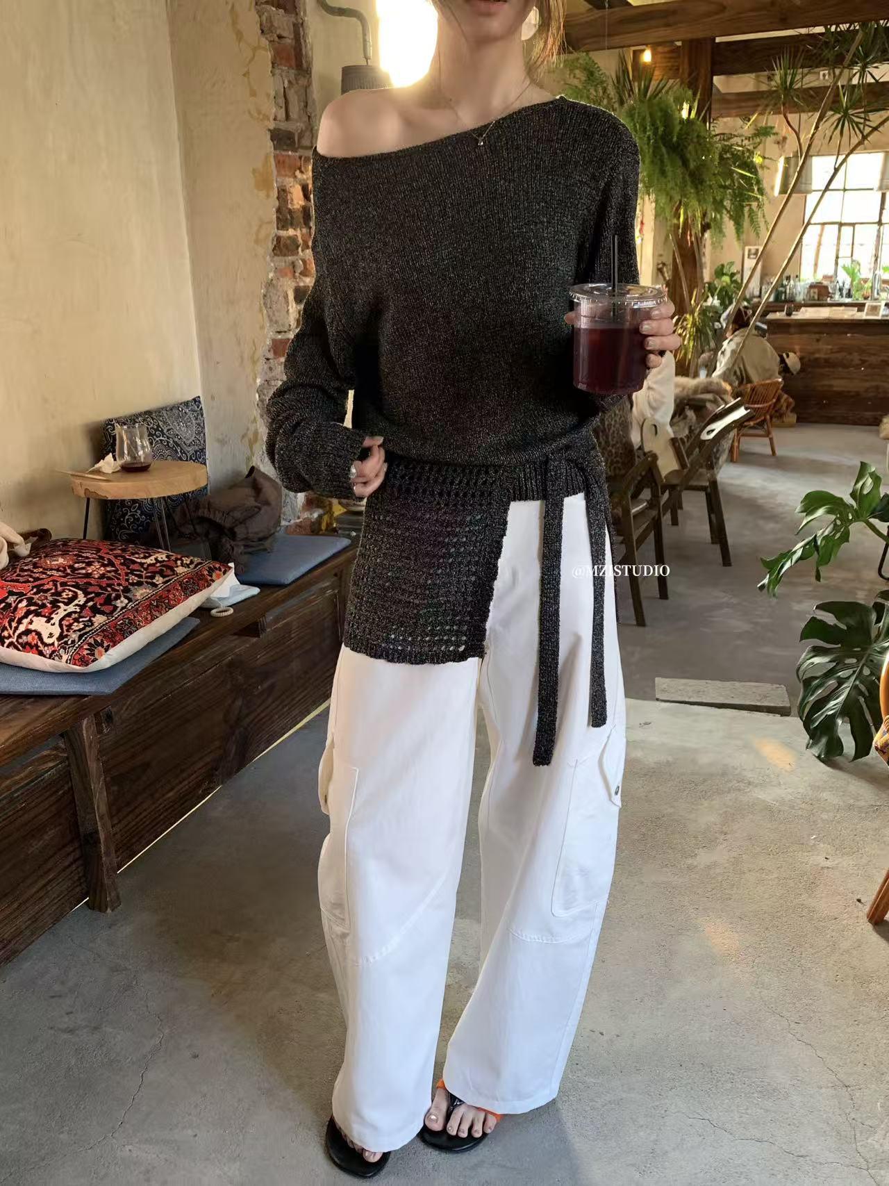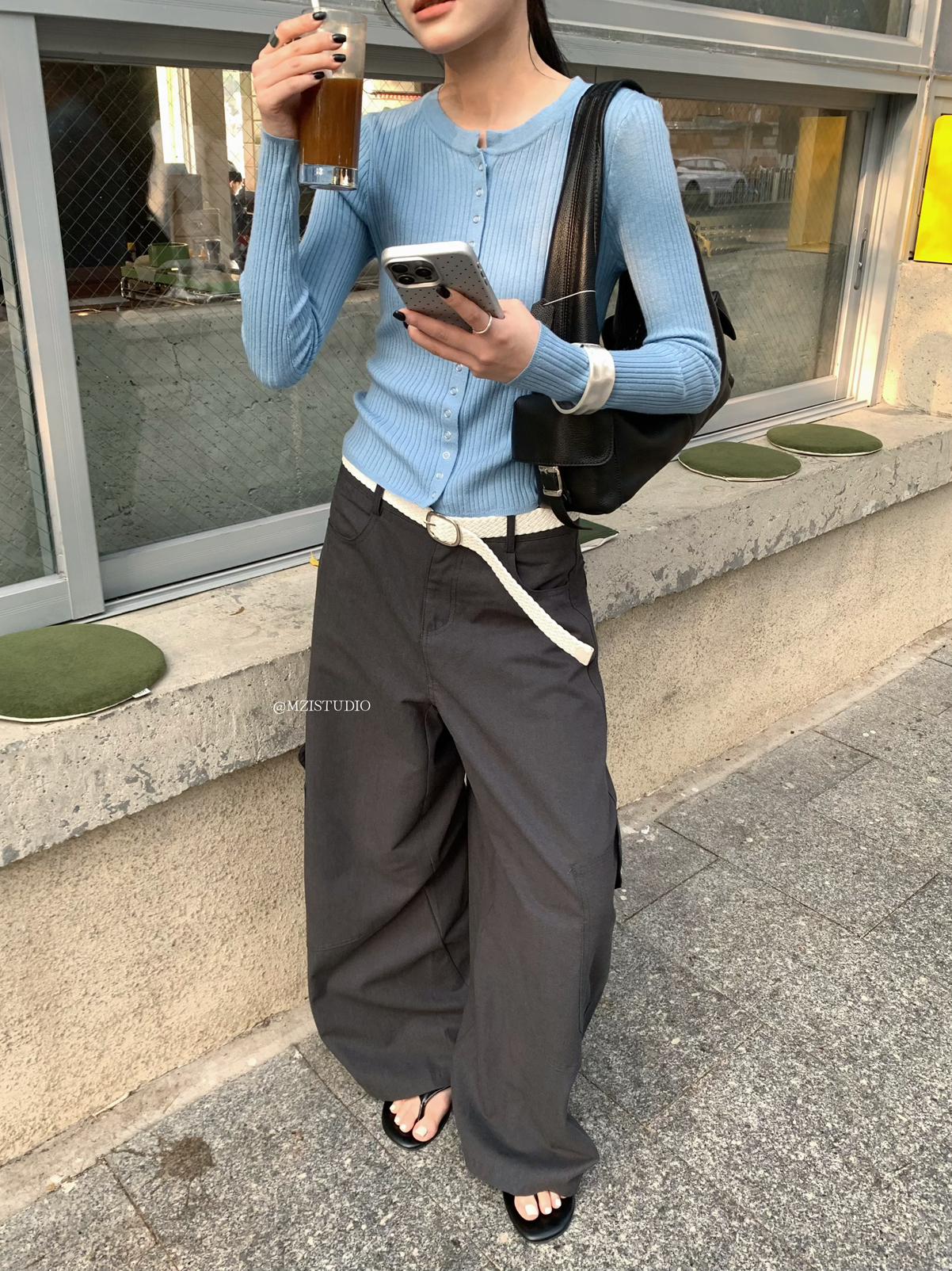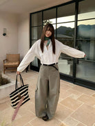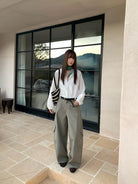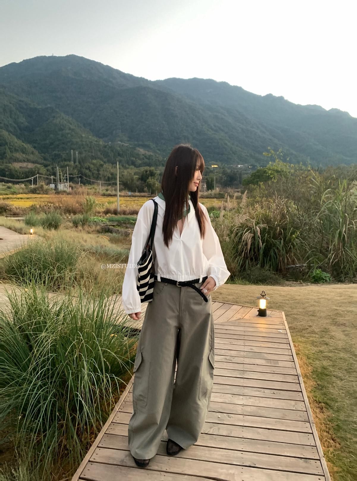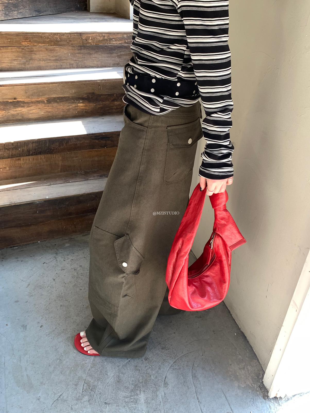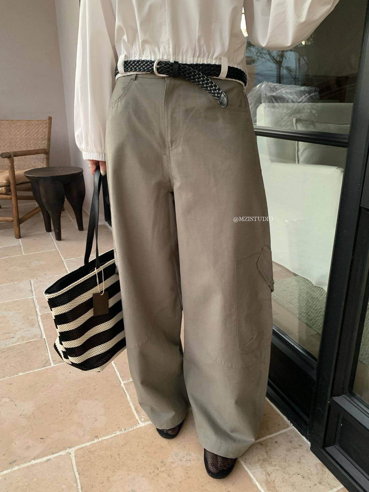 【C8701】懷舊城野春季休閒廓形高腰遮胯寬顯腿長雙側大口袋休閒褲