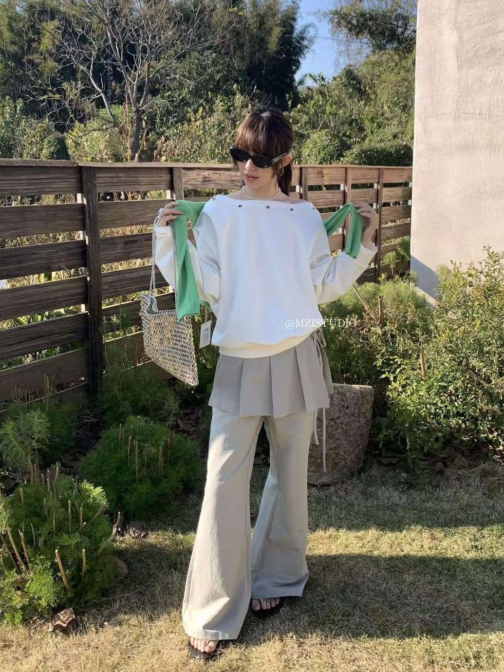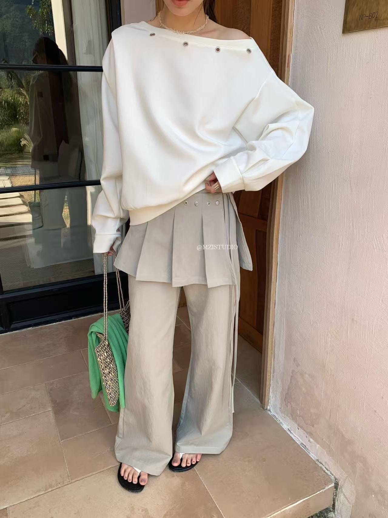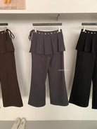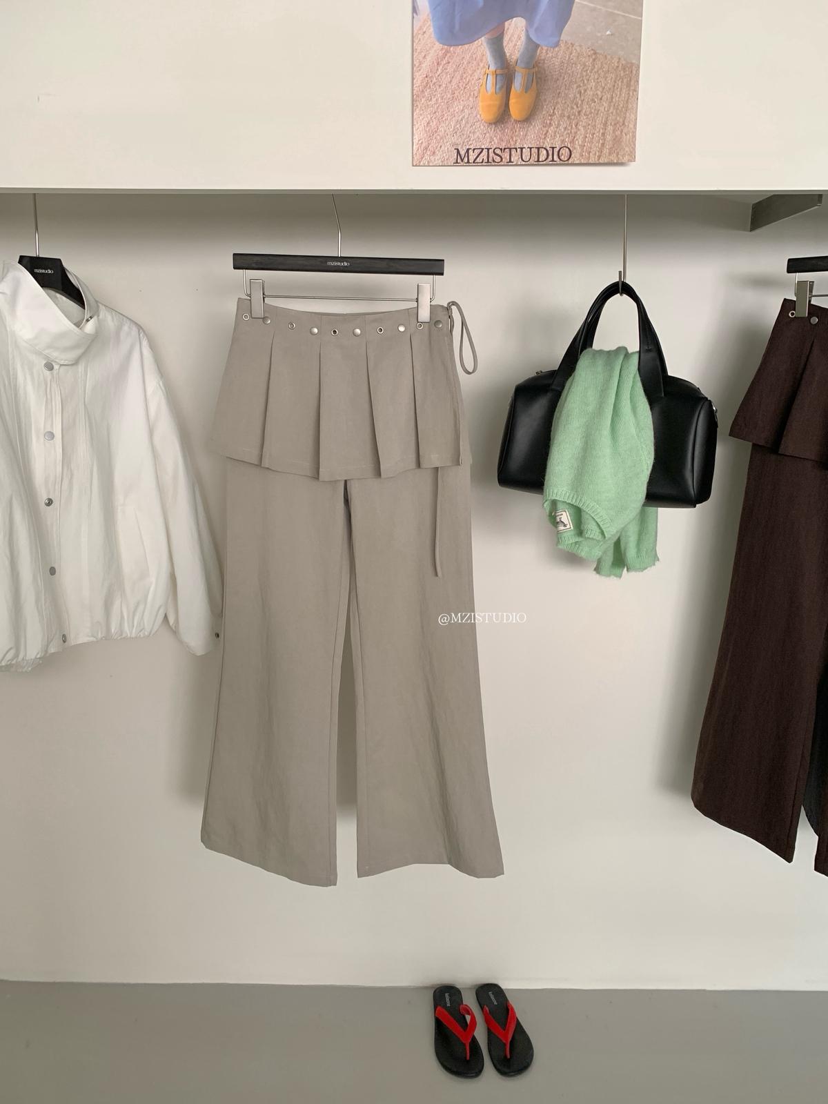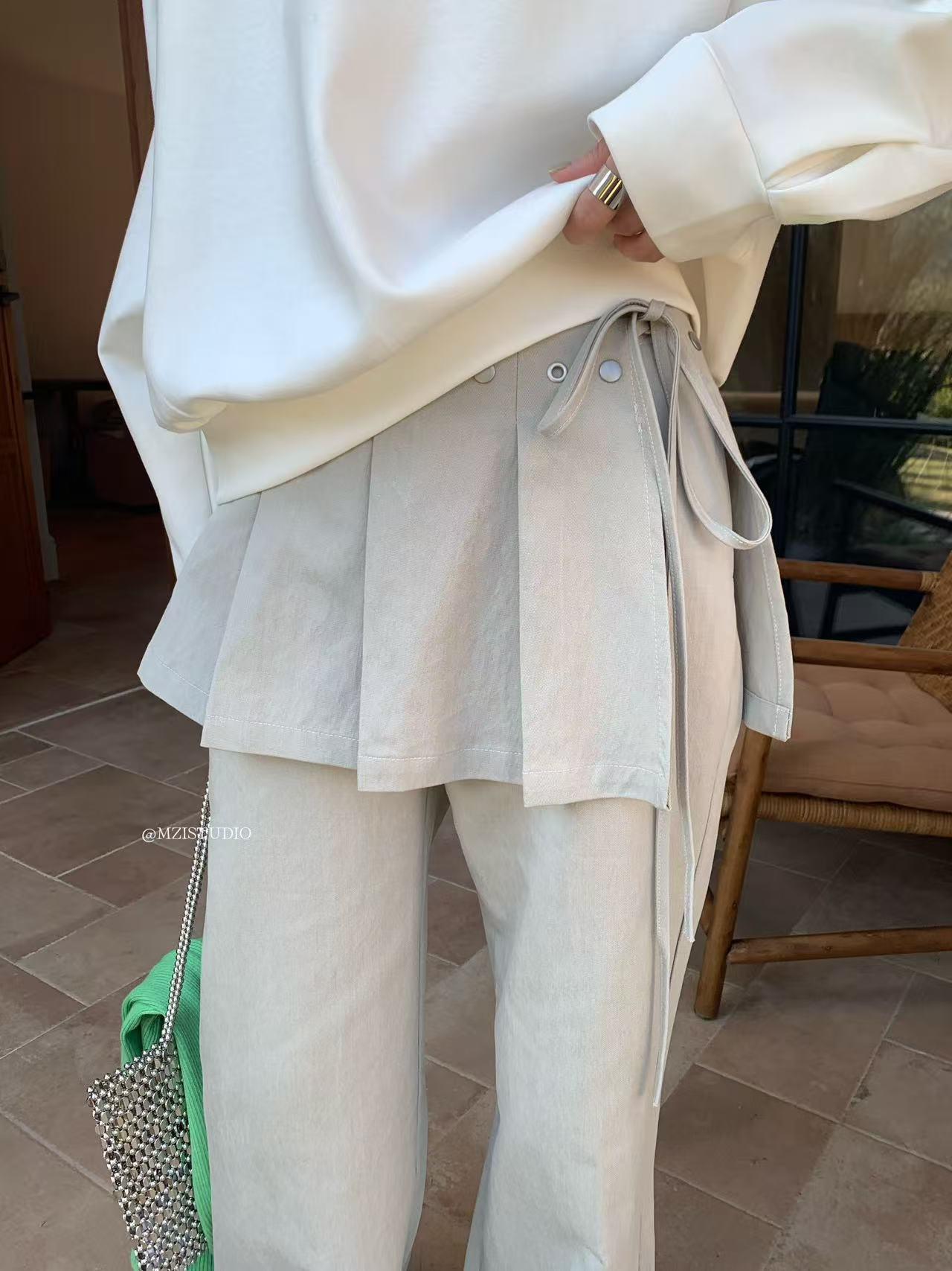 【C8702】質感與設計的表達韓系春季天絲百褶撞釘屁簾酷帥微喇休閒褲(配可拆卸屁簾)