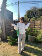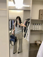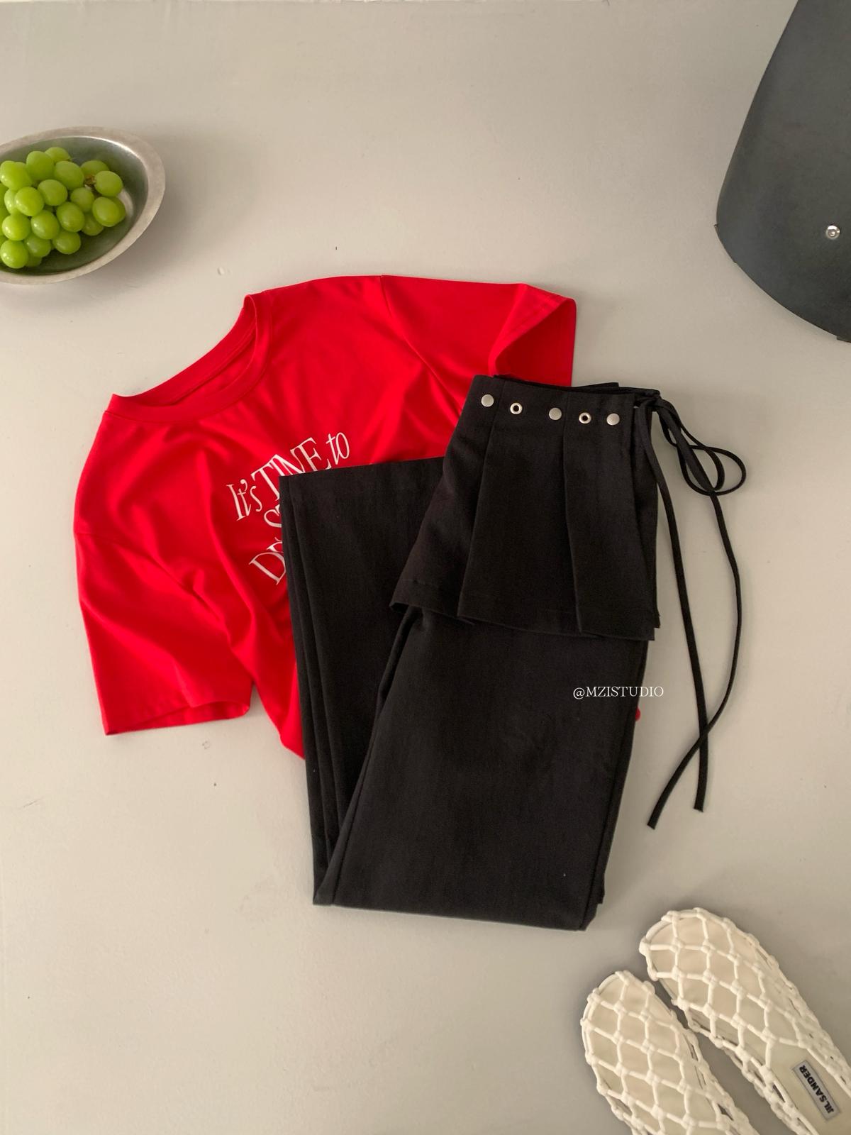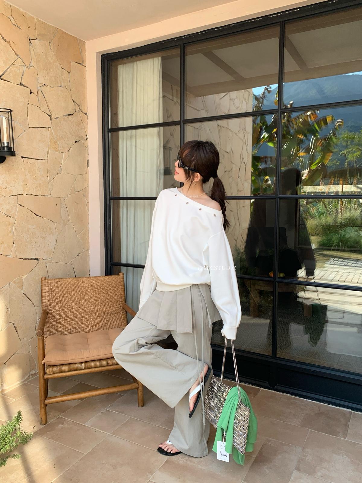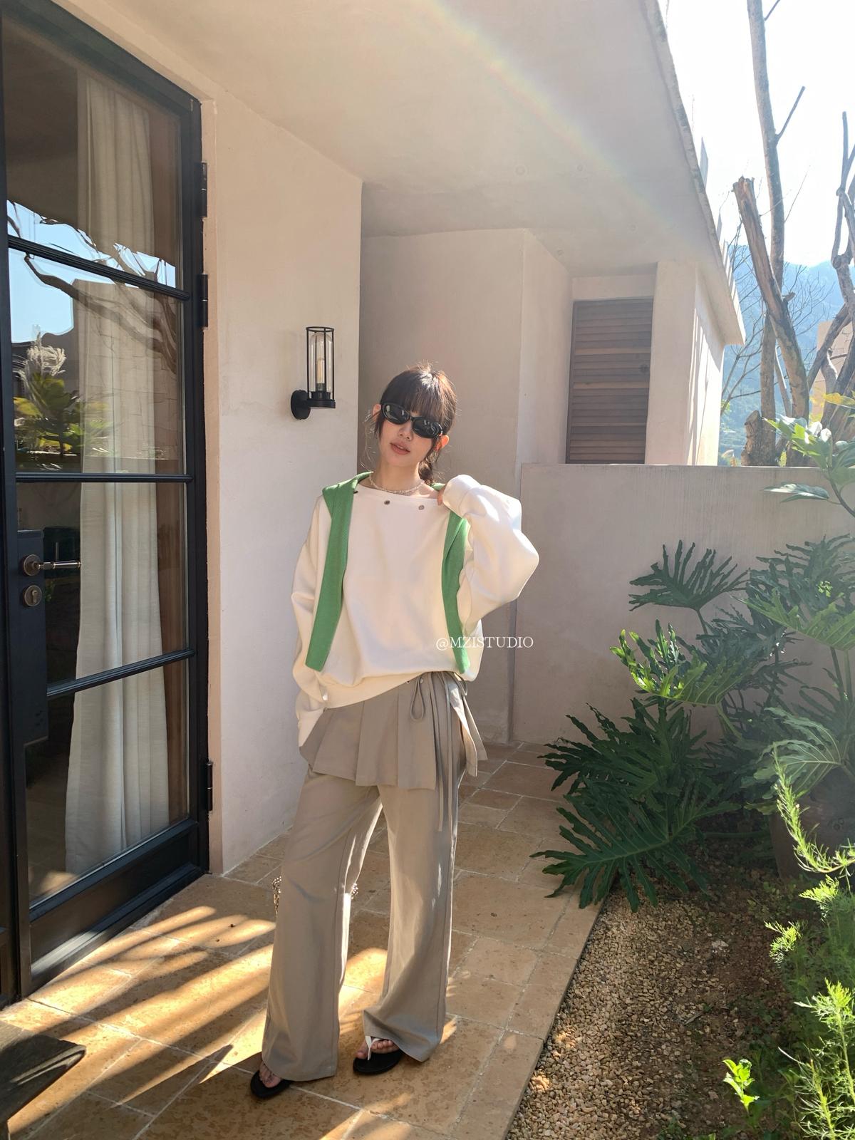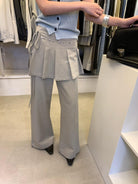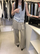 【C8702】質感與設計的表達韓系春季天絲百褶撞釘屁簾酷帥微喇休閒褲(配可拆卸屁簾)