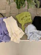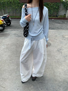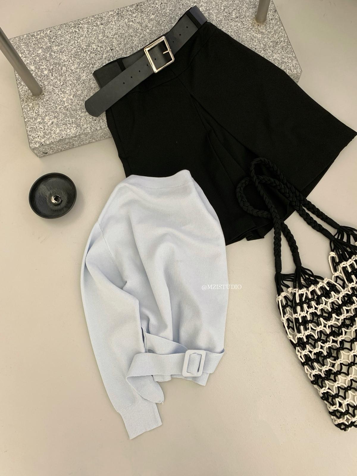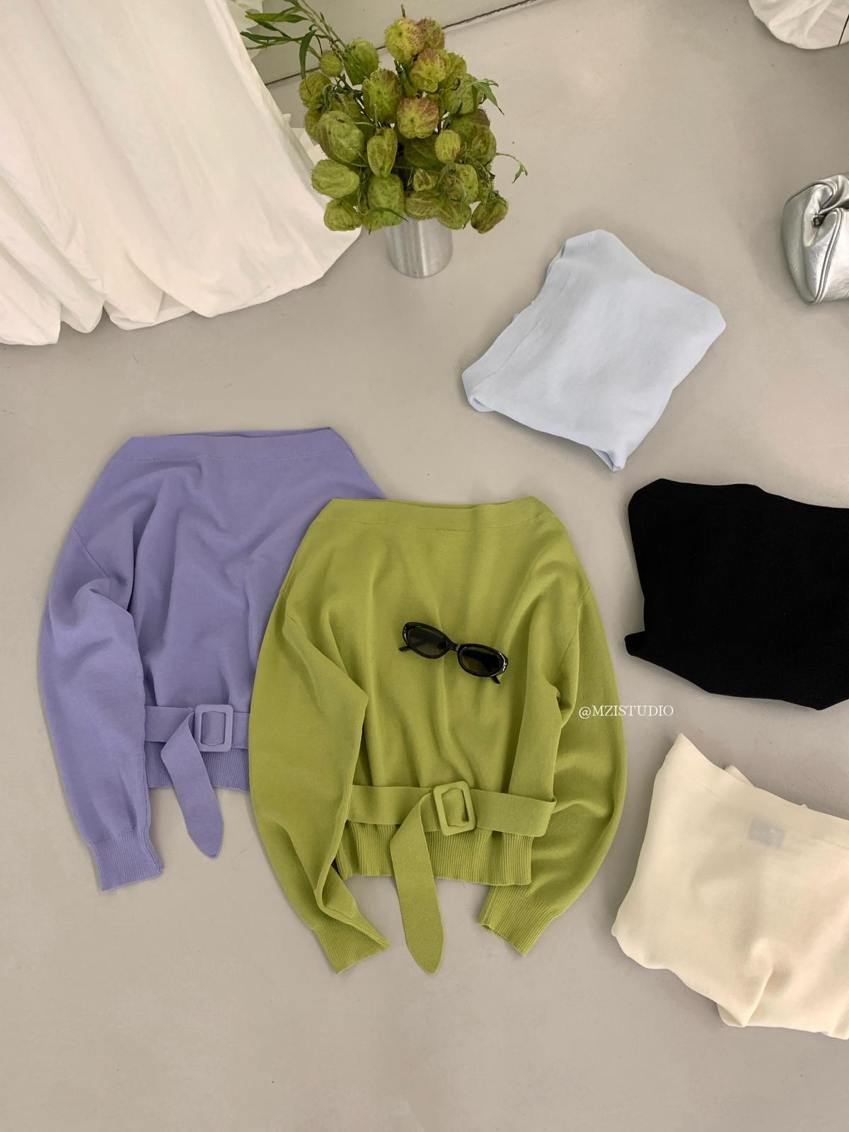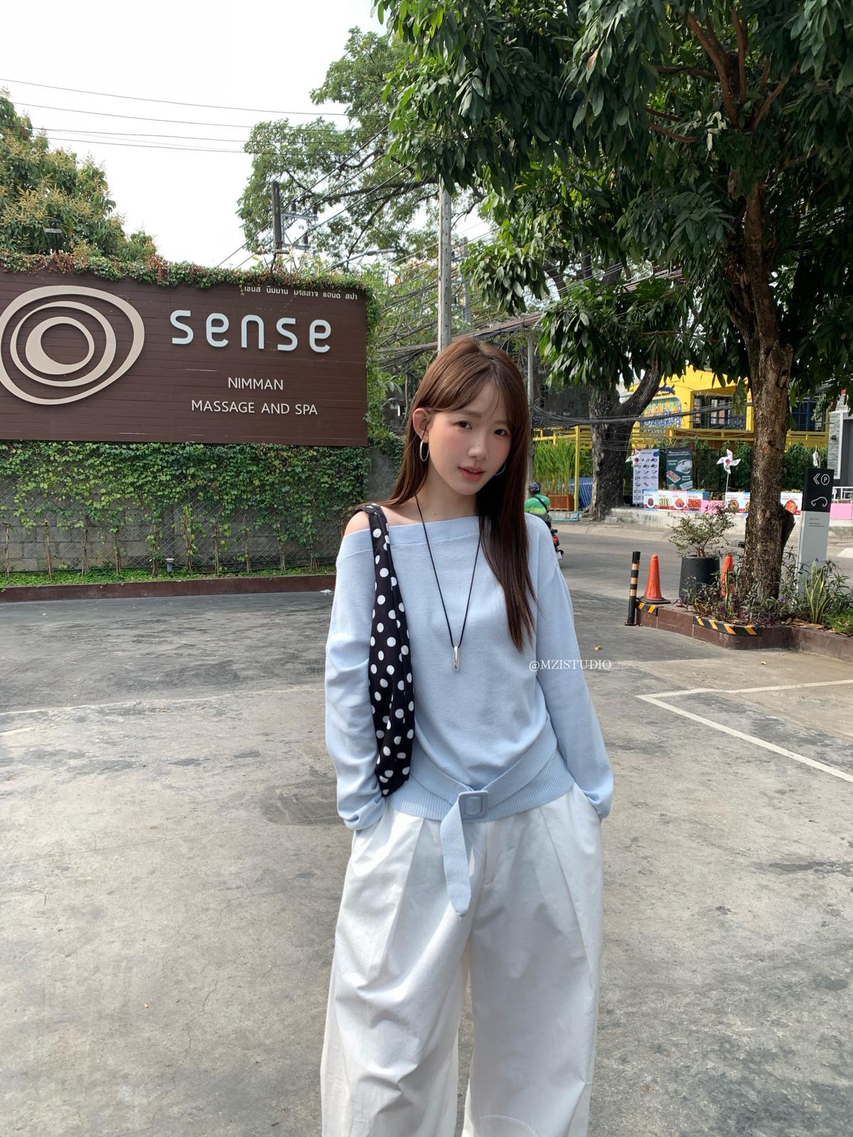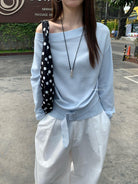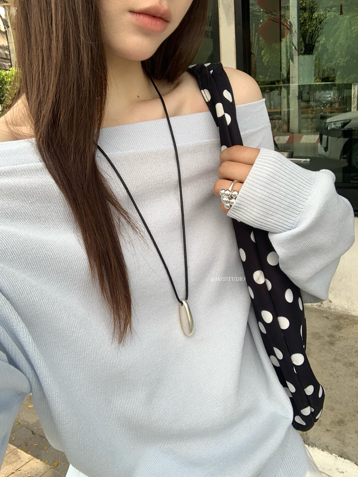 【C8704】編織的柔軟韓版春季萊賽爾細膩質感收腰一字肩小心機穿搭針織衫(配腰帶)