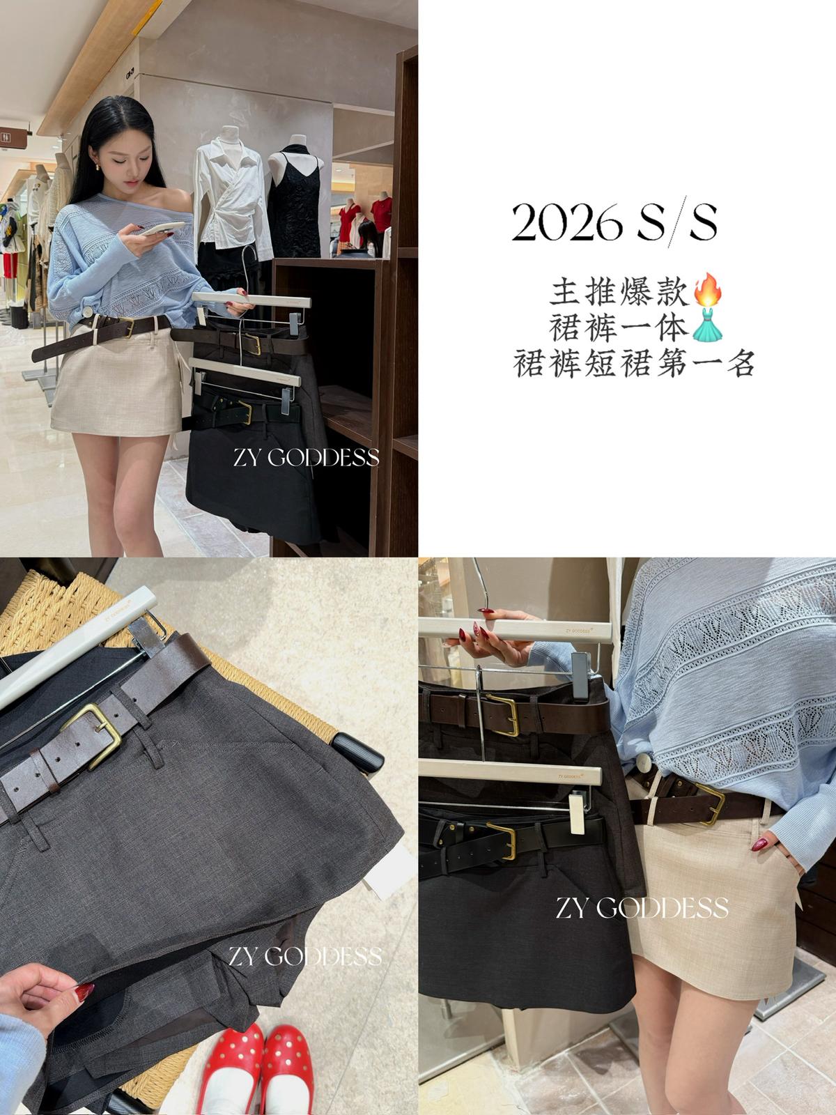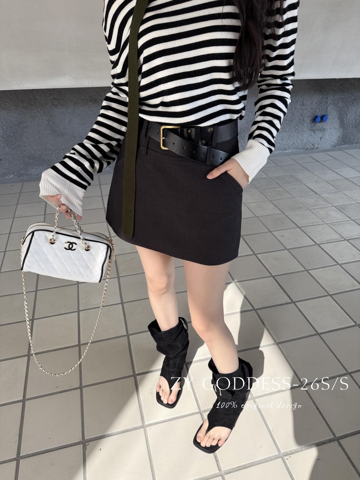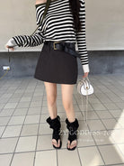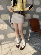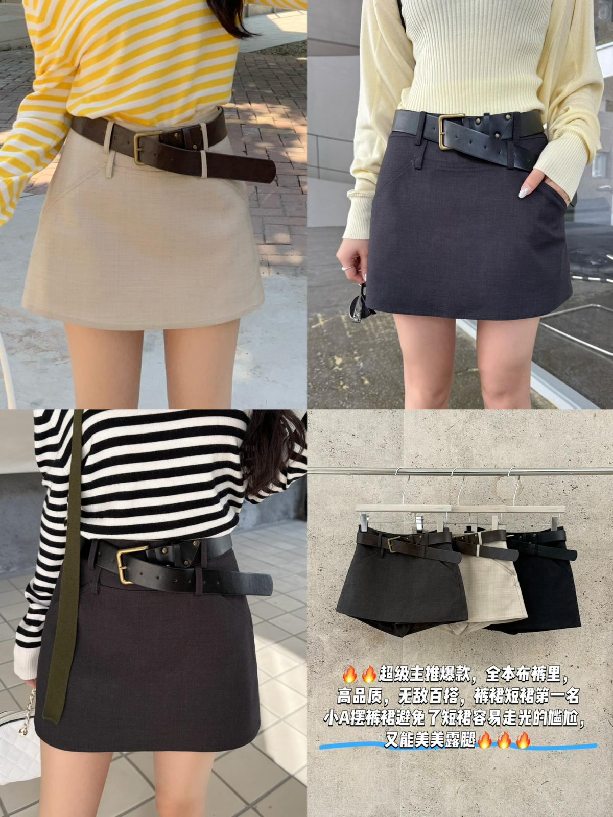 【C8711】韓版簡約高品質裙褲假兩件半身裙(配腰帶)