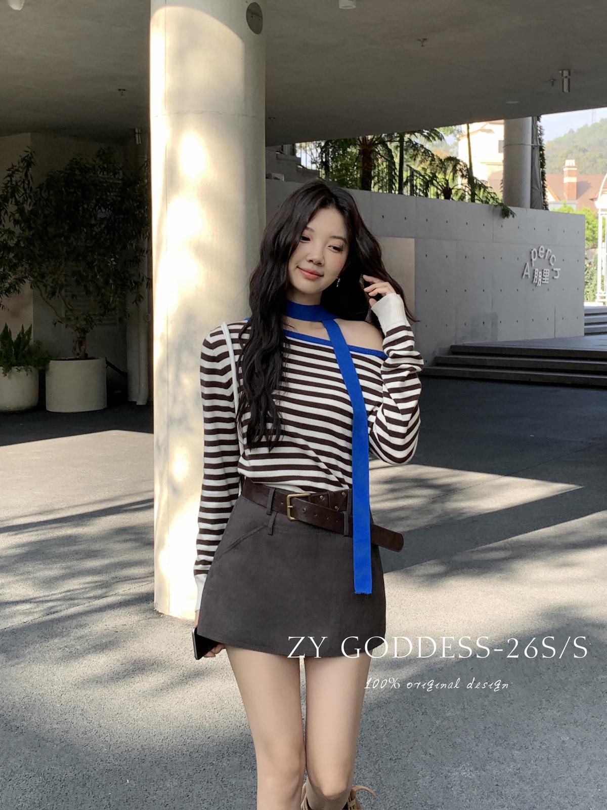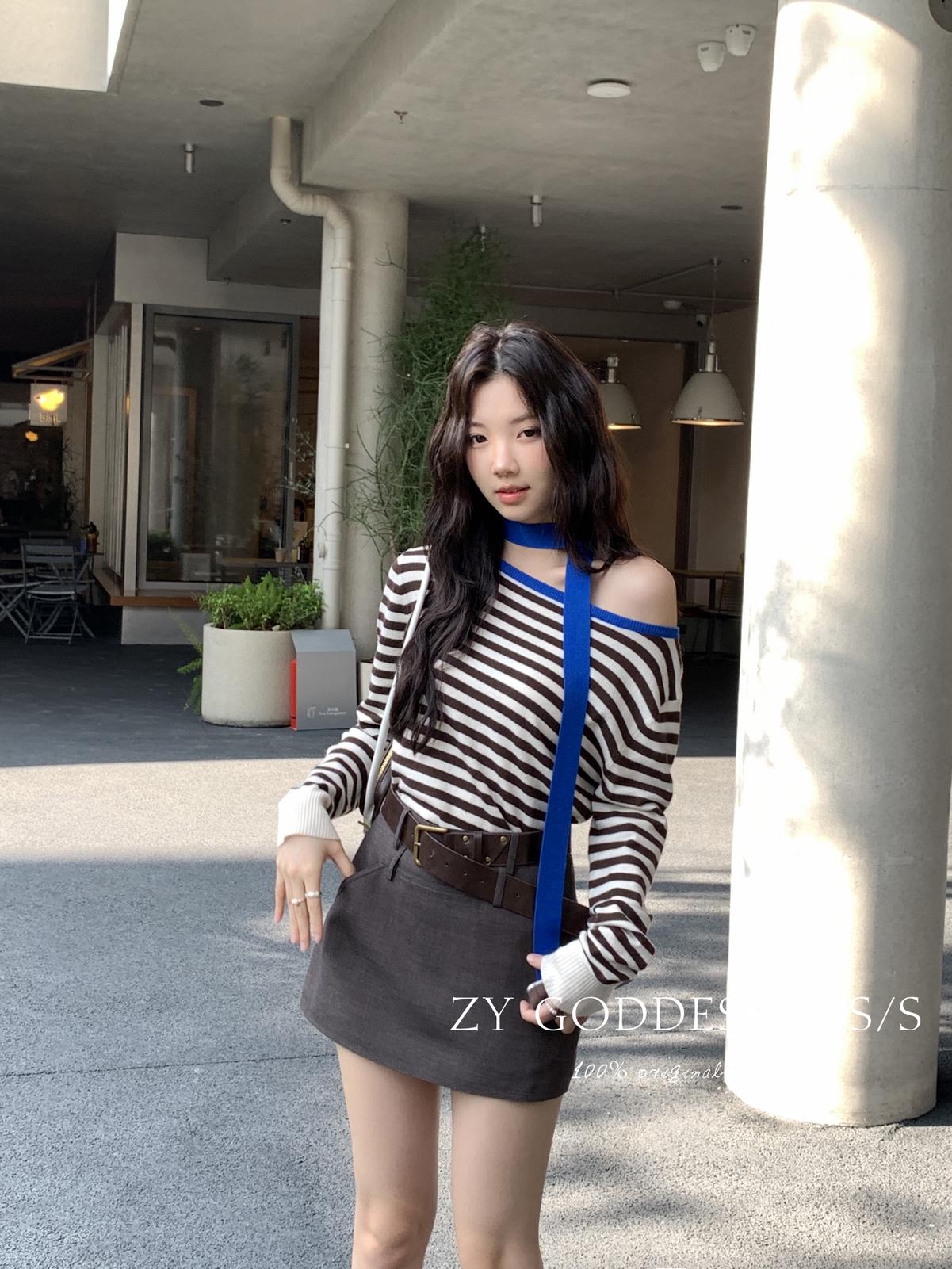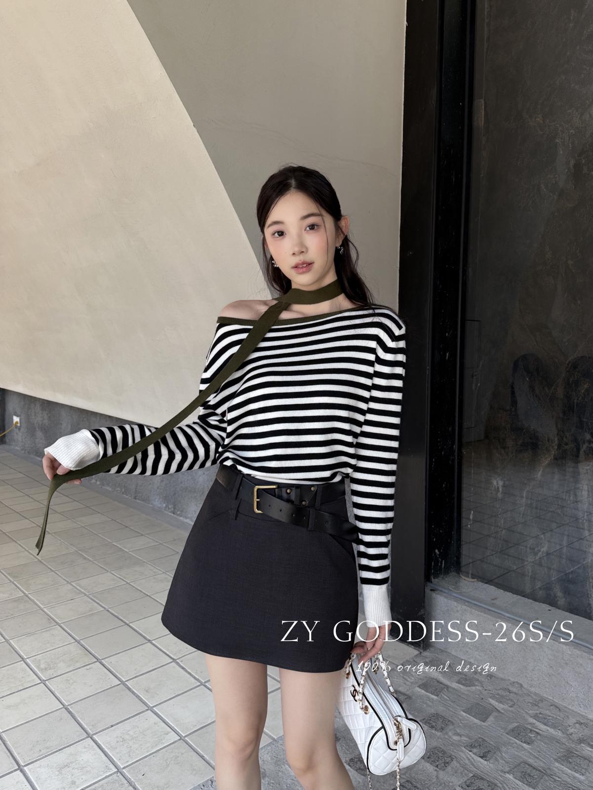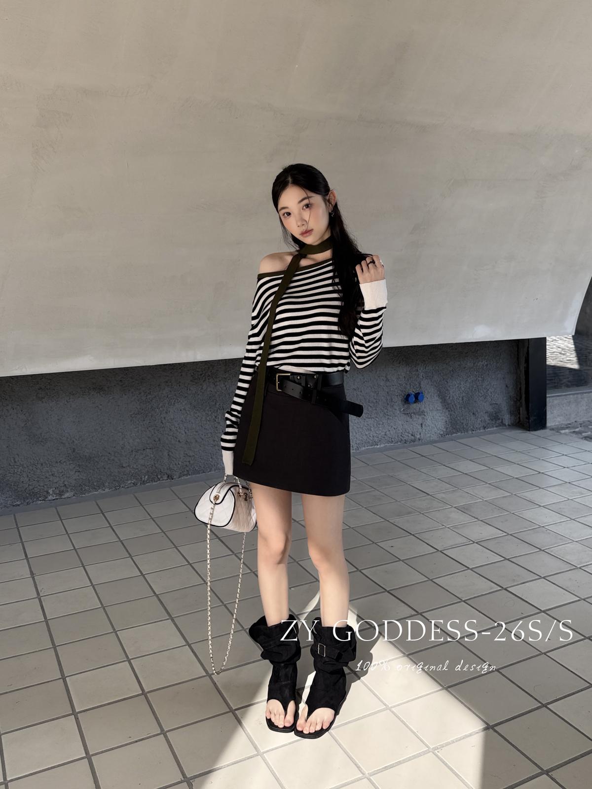【C8711】韓版簡約高品質裙褲假兩件半身裙(配腰帶)