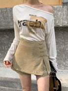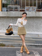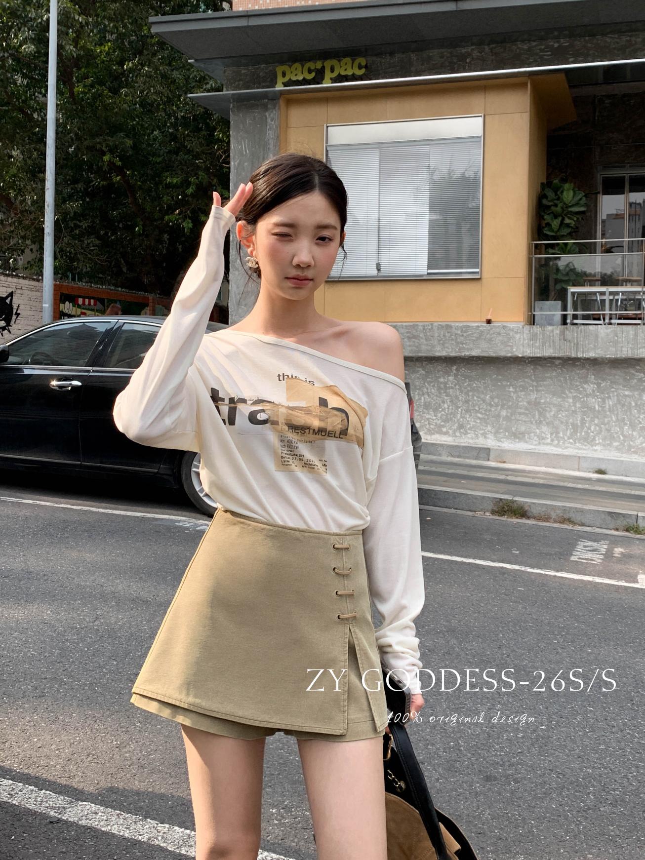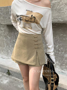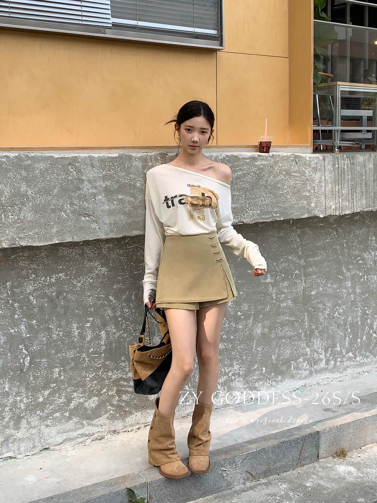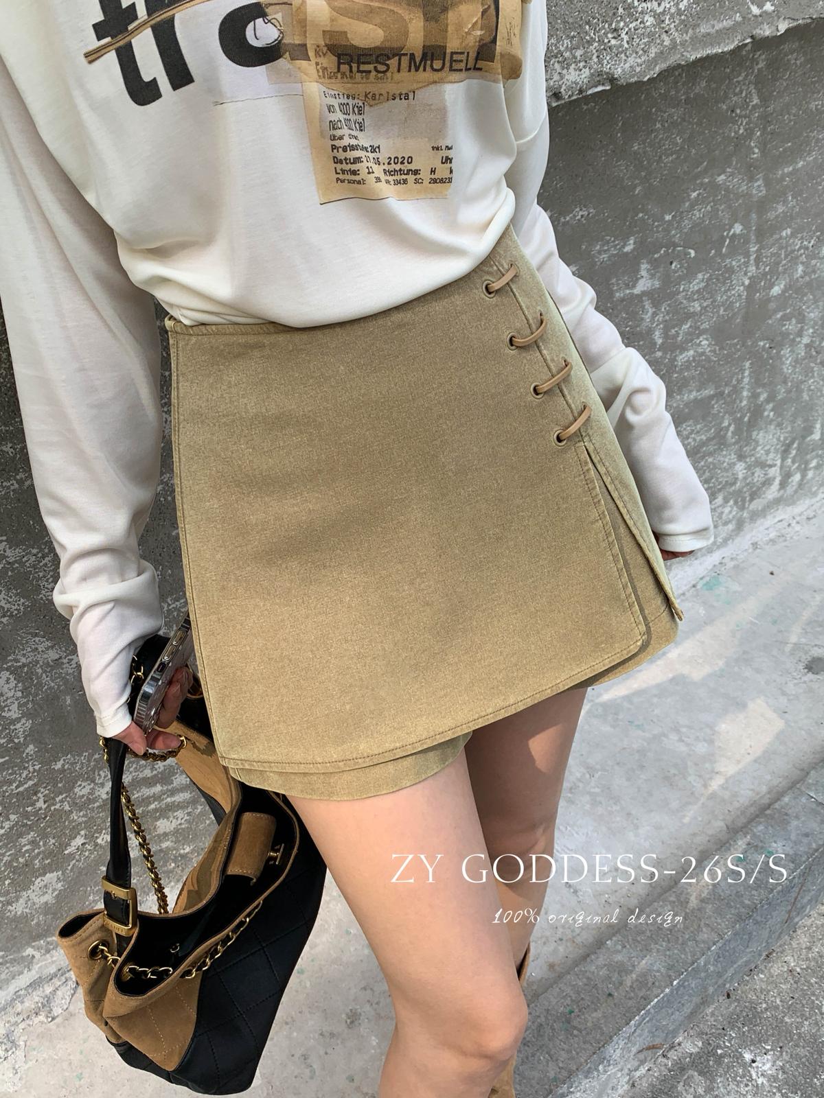 【C8712】特色定製工藝皮褲!網紅辣妹高腰顯腿長腿細假兩件裙褲