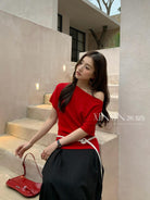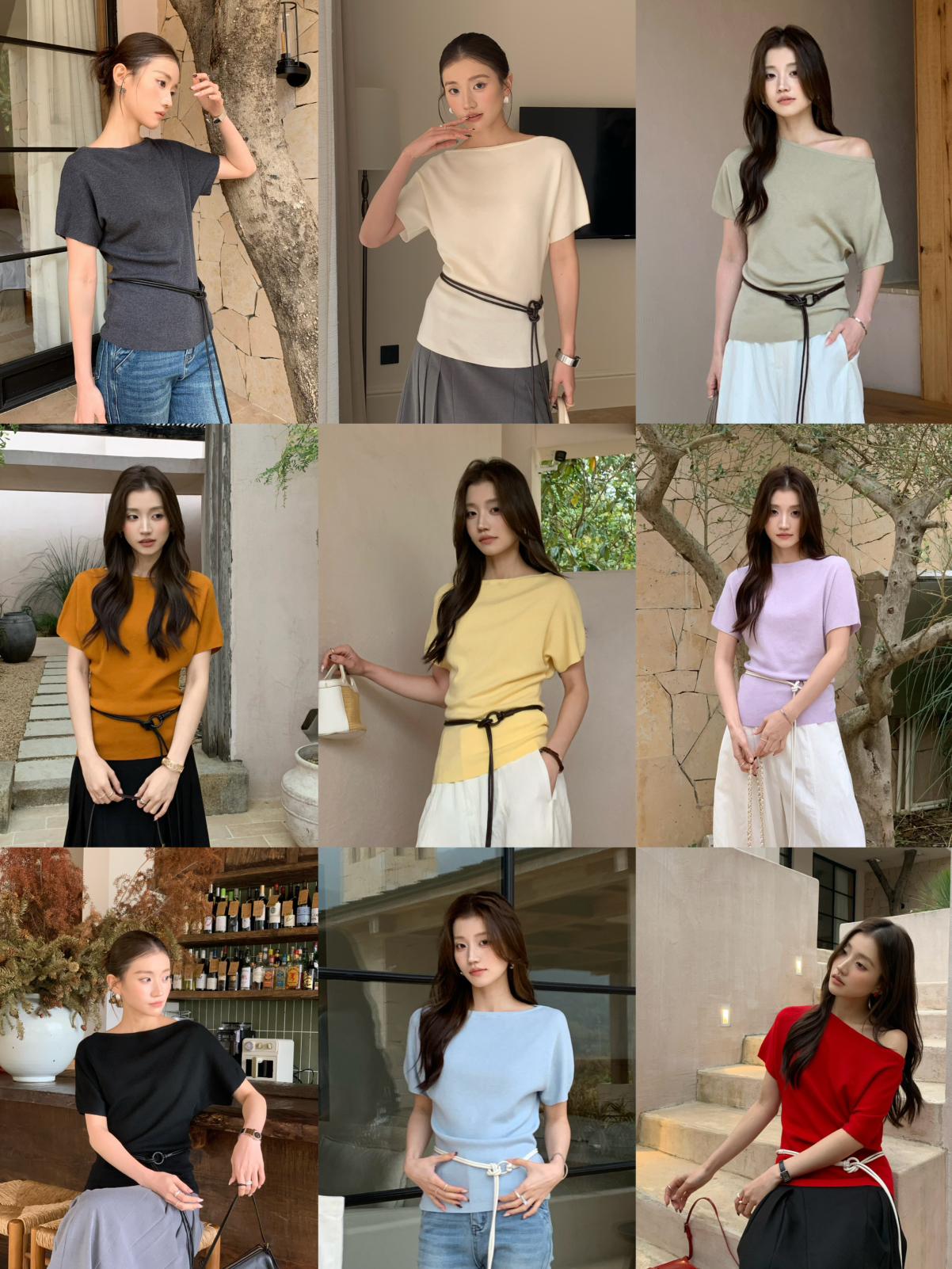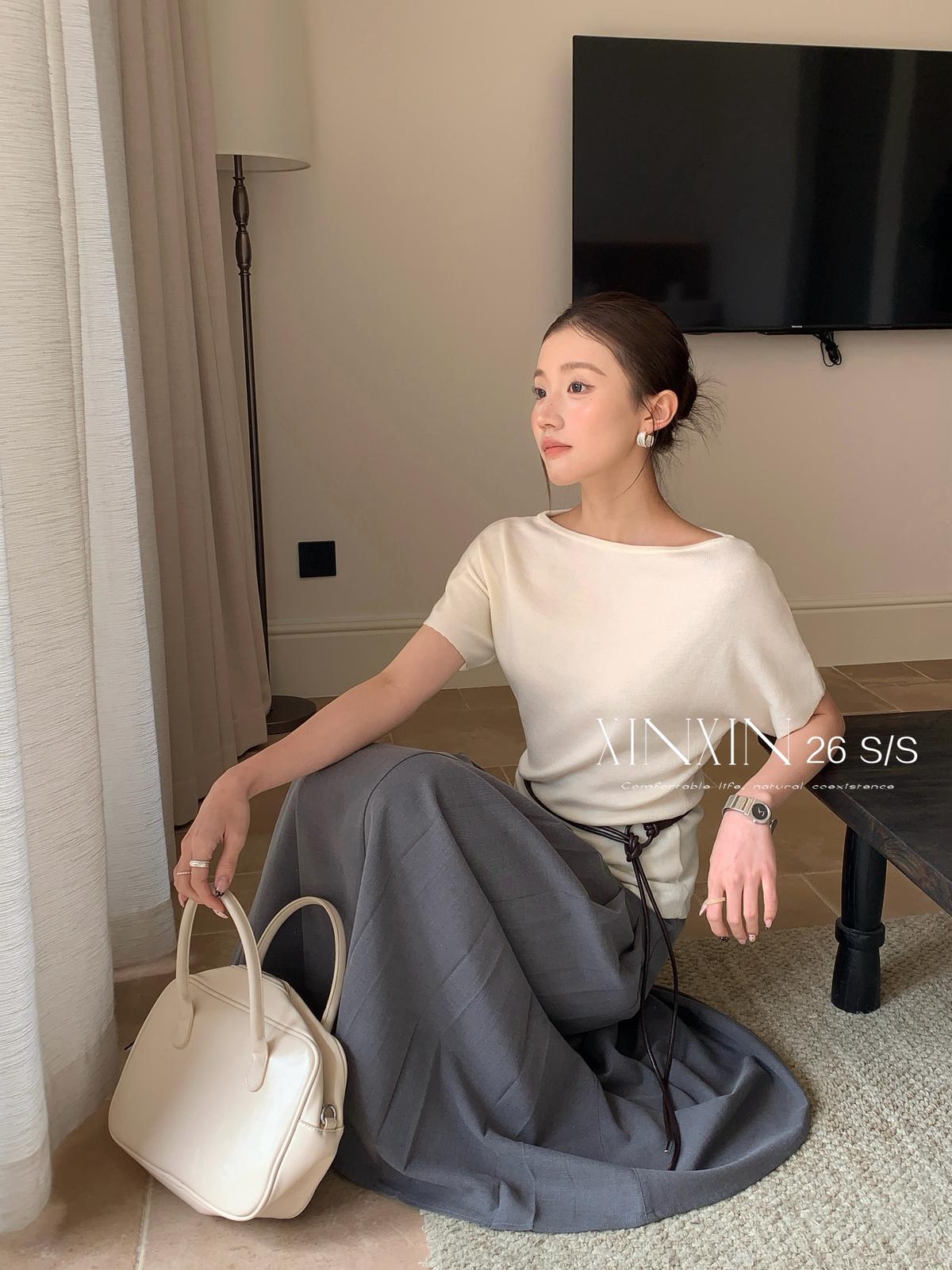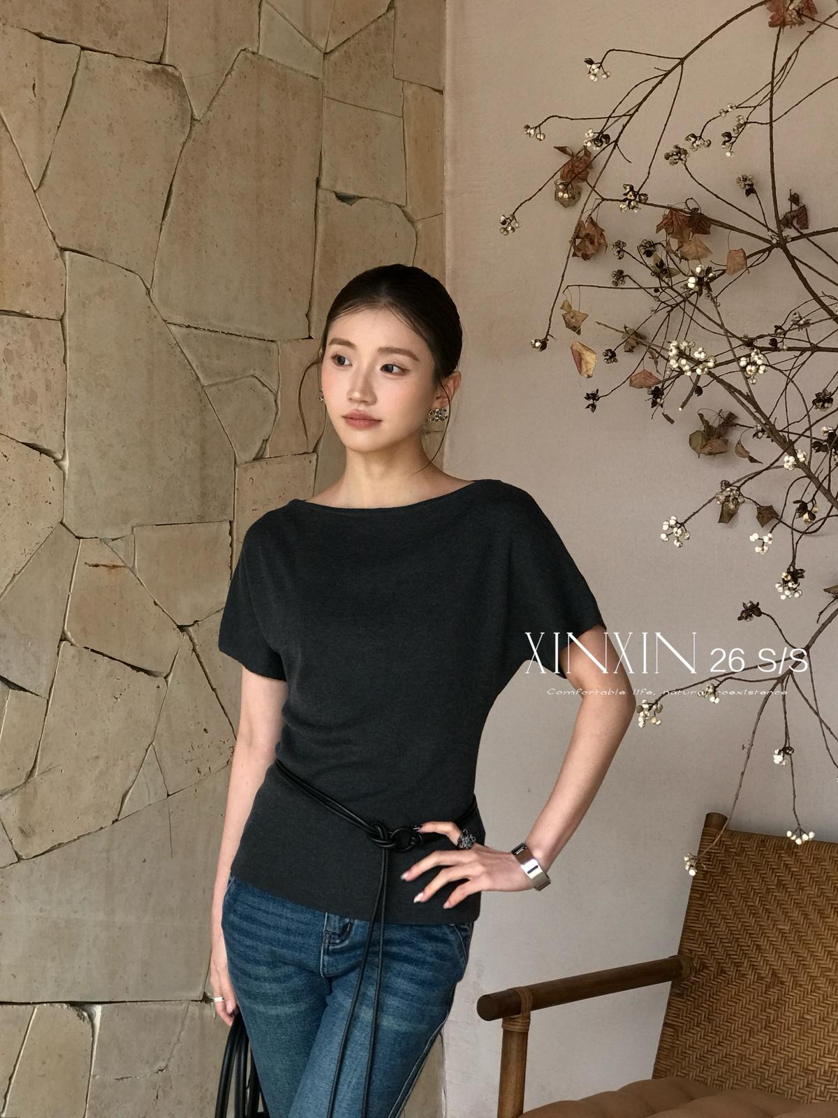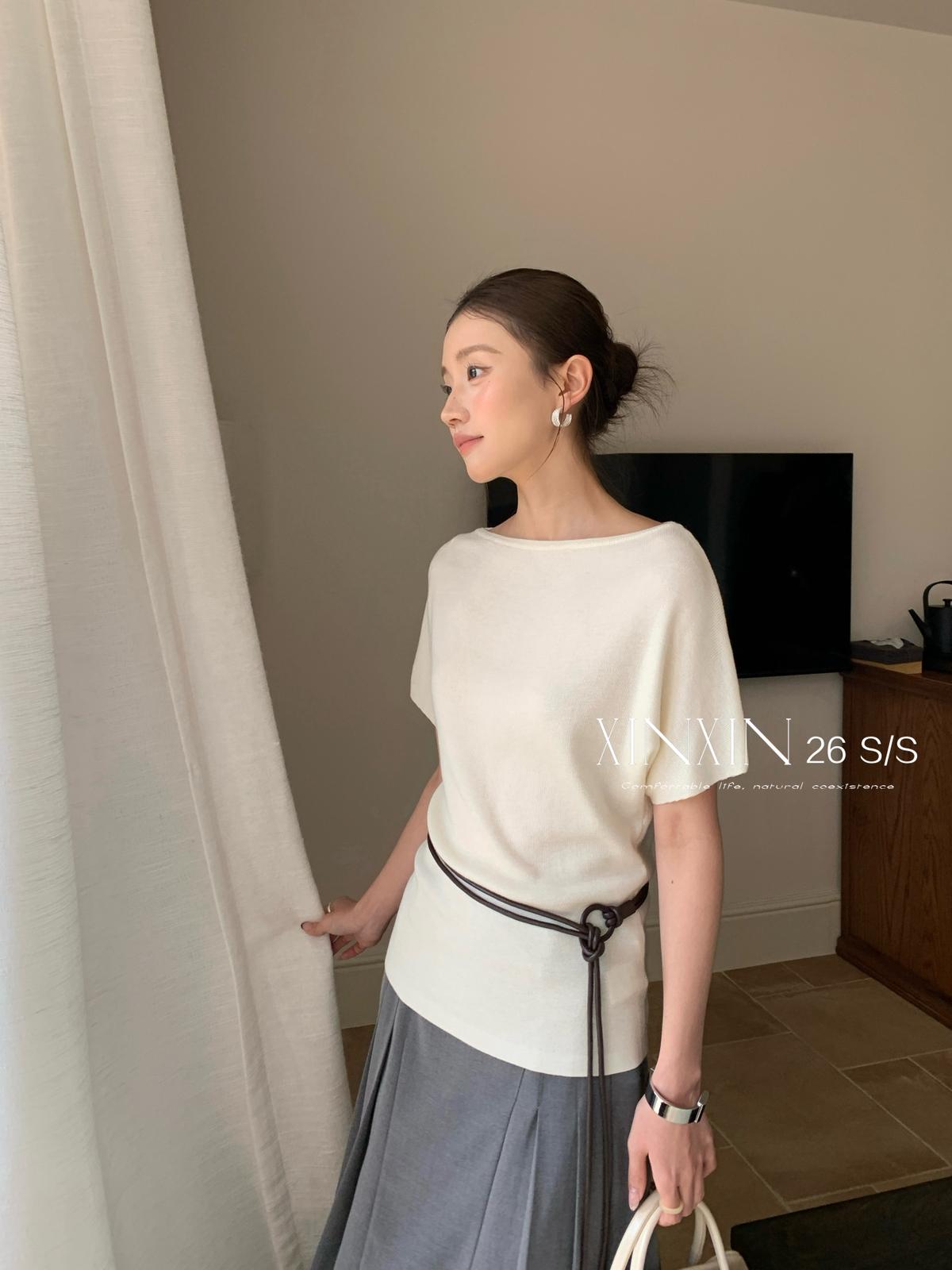 【C8713】人手五件!春夏調色盤氣質韓版寬鬆蝙蝠袖針織衫(配腰繩)