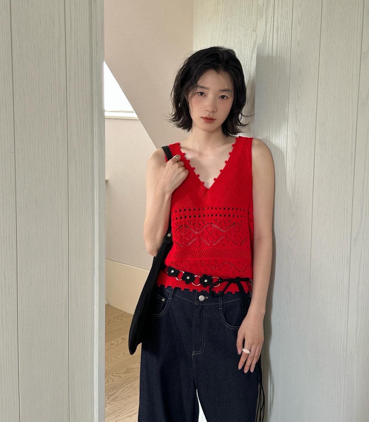 3. 【C8735】韓版高級感鏤空針織鉤花疊穿時尚背心